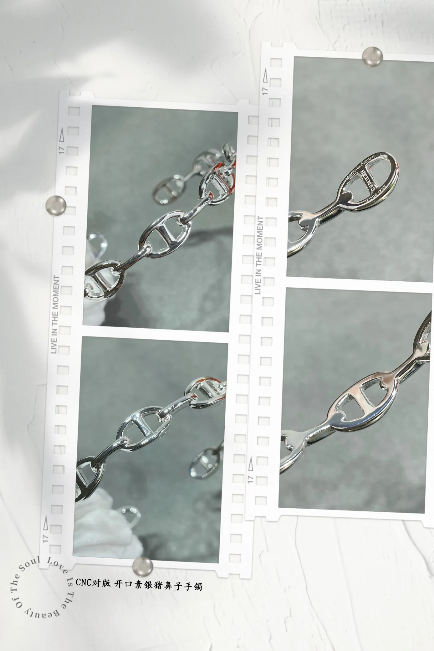 Hermèsのシルバー豚の鼻ブレスレットFarandoleは、925素銀で作られた高級感あふれるアクセサリーです。調整可能なオープンタイプなので、どんな腕にもフィットします。クラシックでありながらクールなデザインは、ファッション界で大きな影響力を持ち、インスタグラムでも話題です。ネックレスや他のブレスレット、時計と組み合わせることで、様々なスタイルを楽しめます。最高品質のアイテムをお探しの方には、スーパーコピー優良サイトでの選択肢もおすすめです。