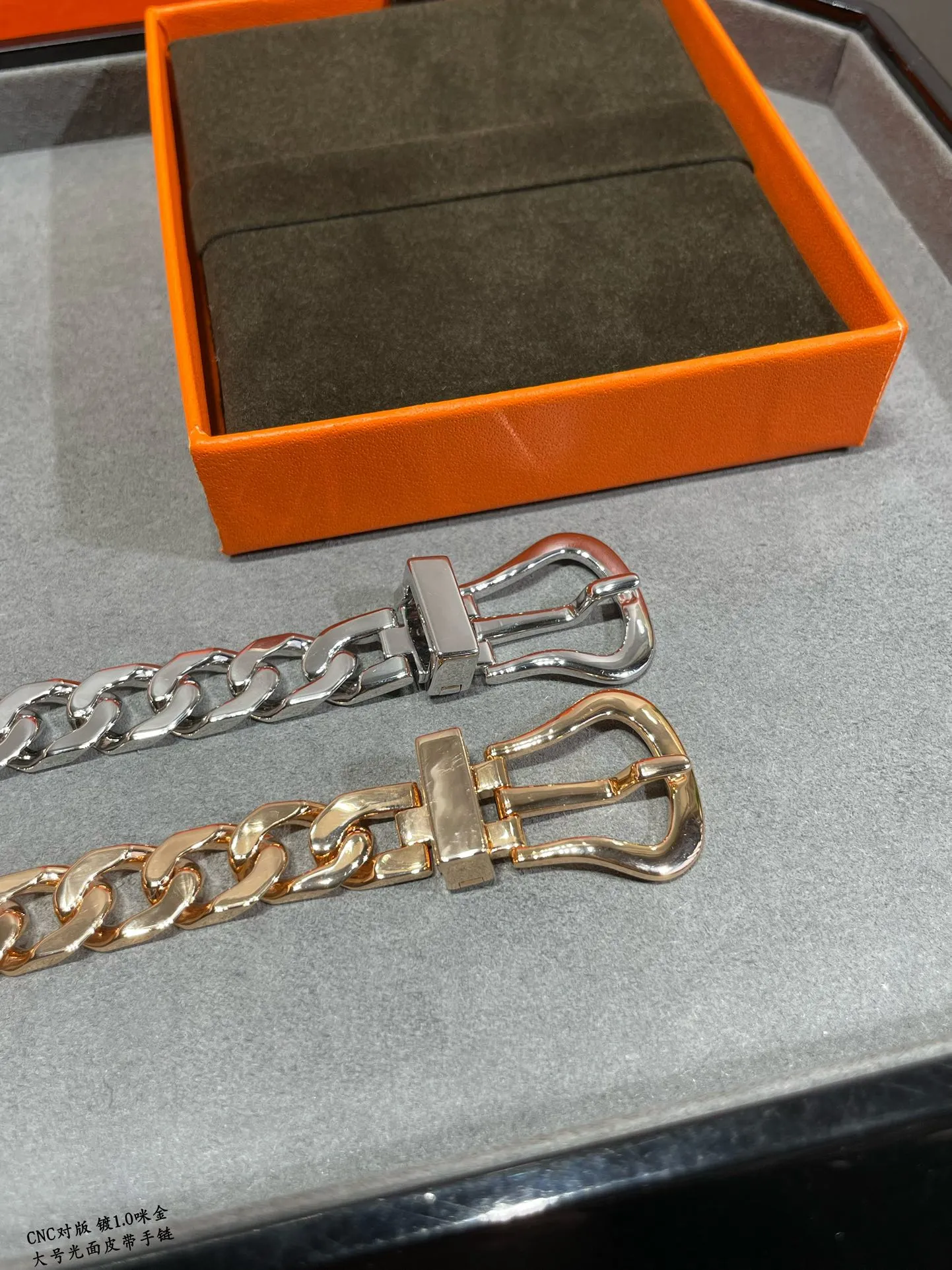 ヘルメスの高級感あふれるV金大号光面皮带手链です。ゴールドとシルバーの2色から選べ、17cm、18cm、19cmのサイズがございます。高品質なK金質感と精巧なデザインが特徴で、多くのセレブやインフルエンサーに愛用されています。職人技が光る逸品で、手に付けるとその魅力が引き立ちます。類似品に注意しながら、信頼できる スーパーコピー優良サイト での購入をおすすめします。