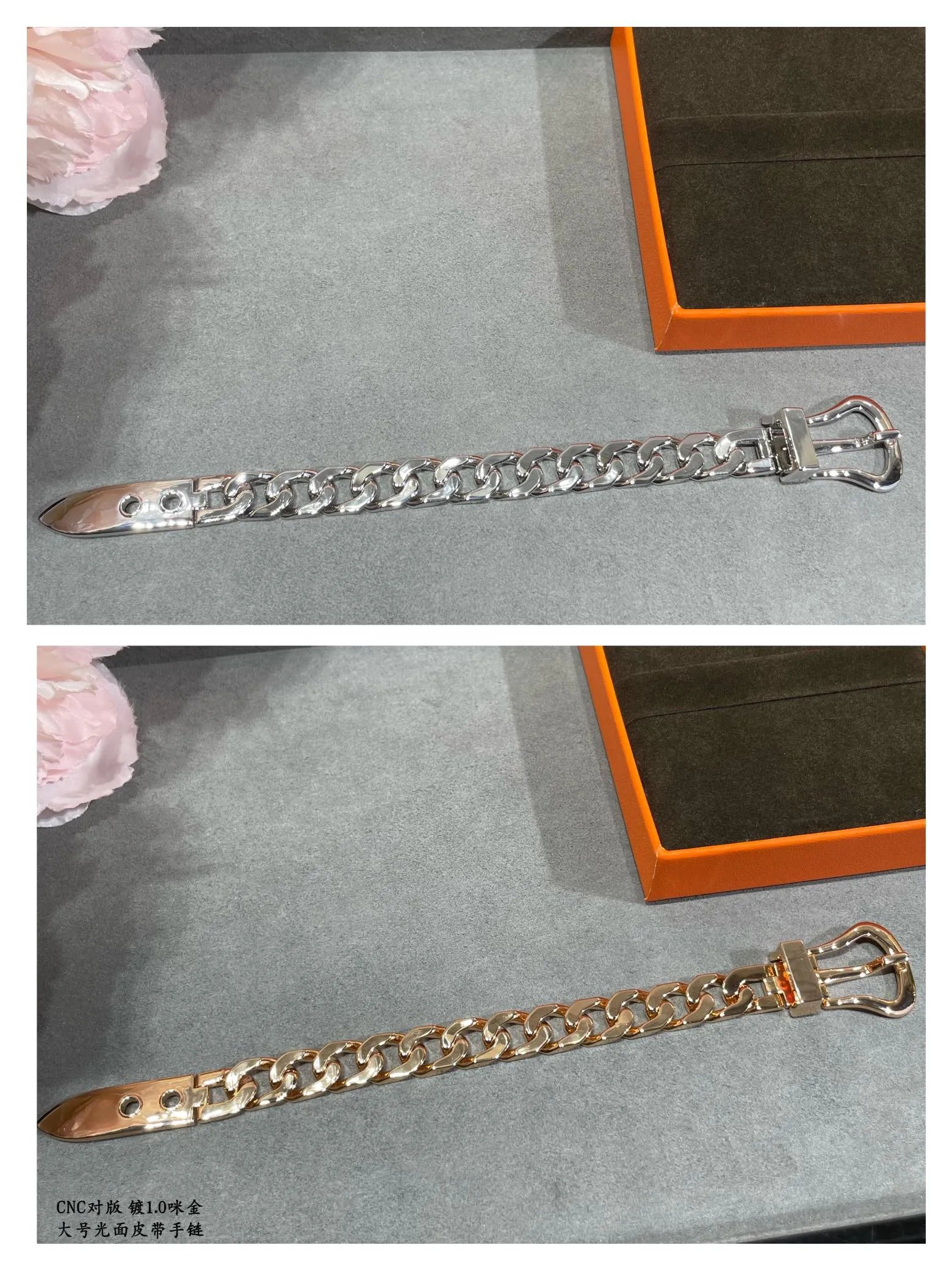 Hermès V金大号光面皮带手链ゴールドシルバー17-19
