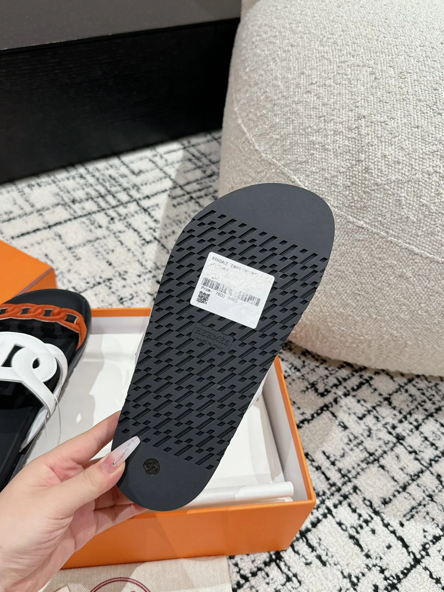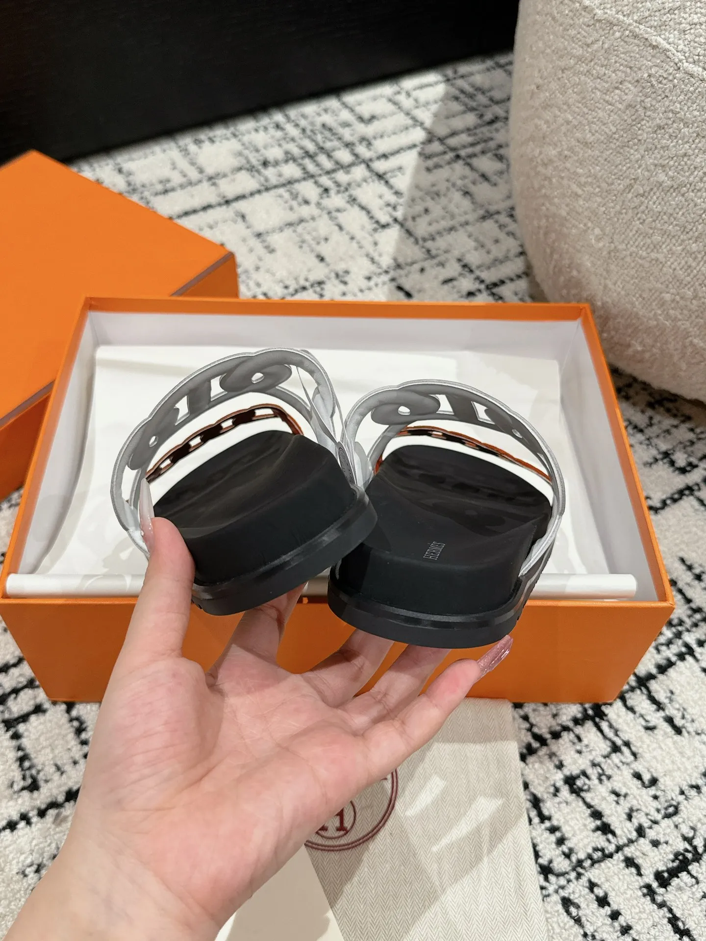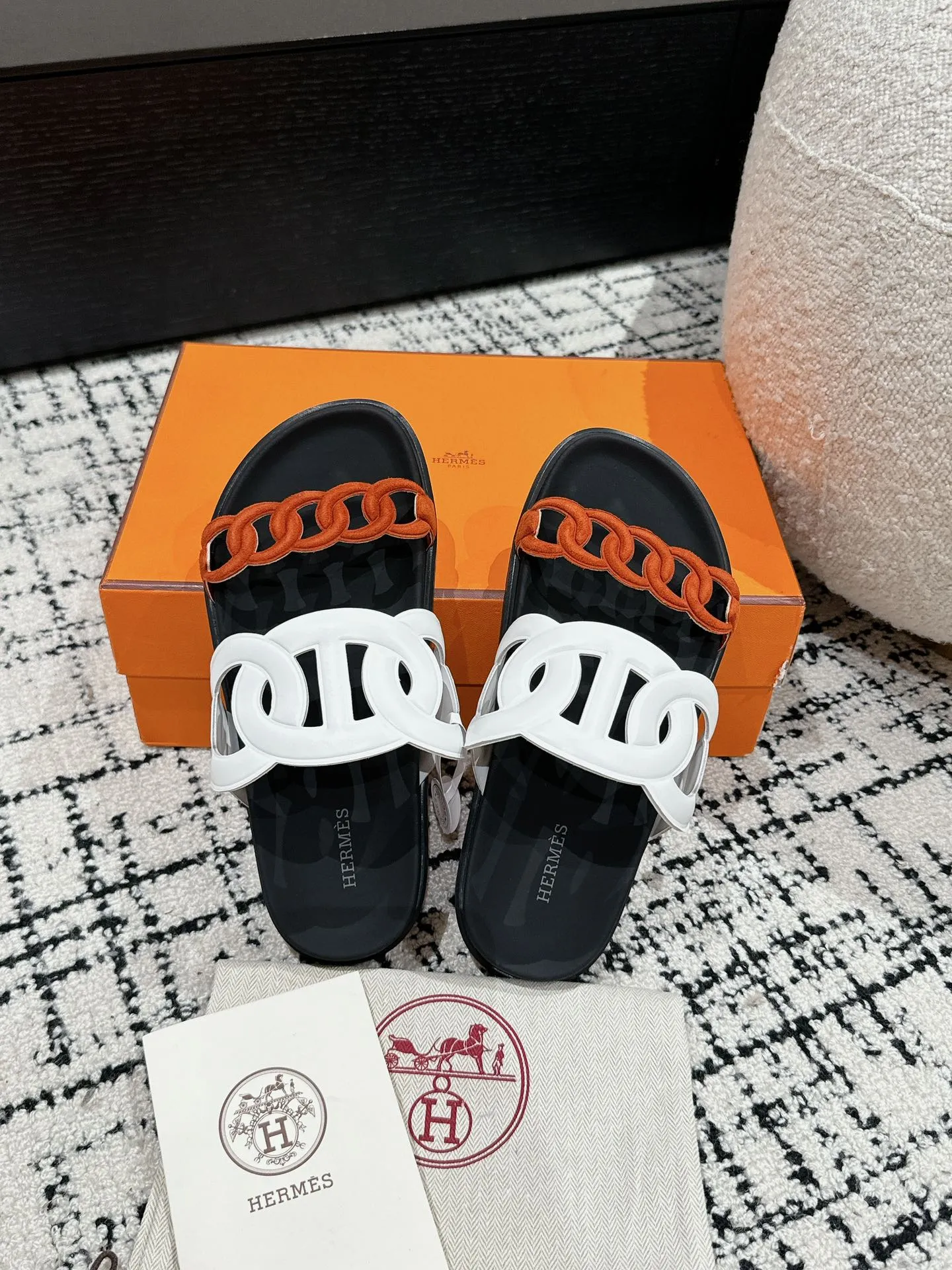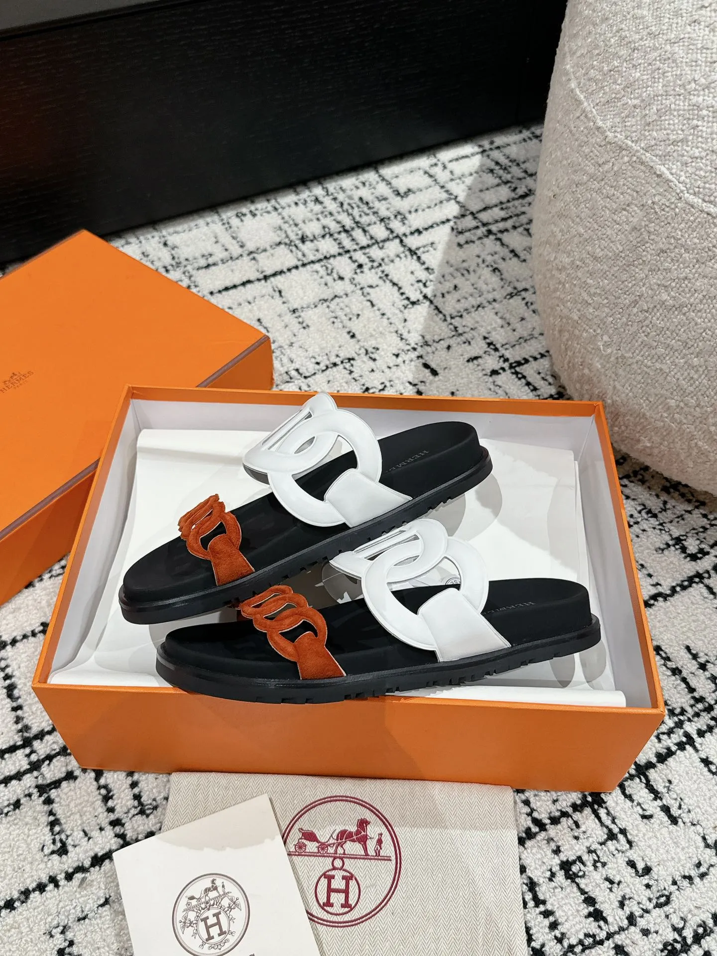 HERMES 新作豚鼻デザインの二舅ミュール ホワイトとオレンジ
