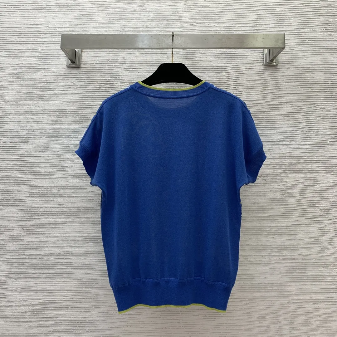 Hermès新作ブルー半袖ニットトップス