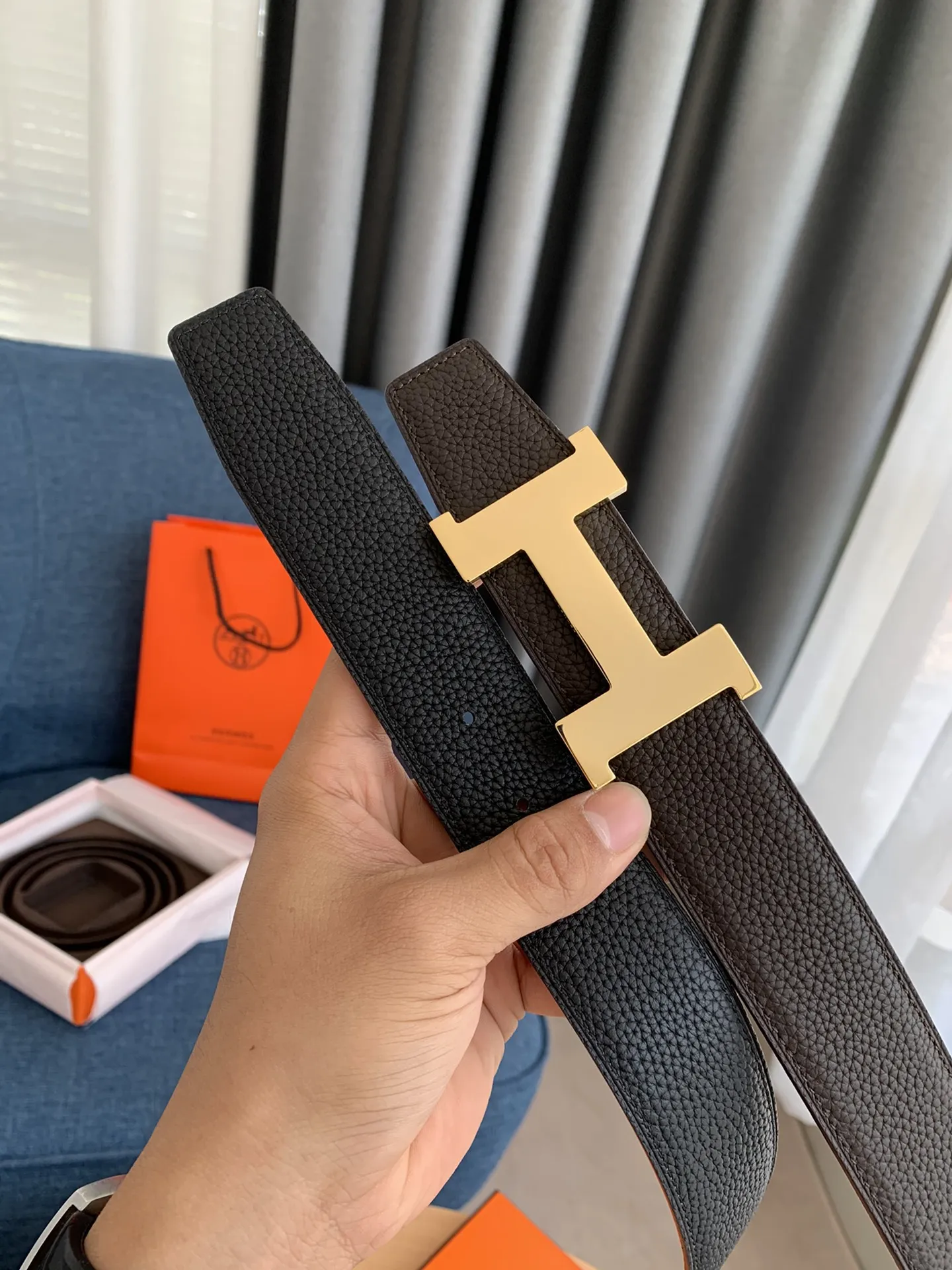 エルメス新作黒レザーベルトHバックル