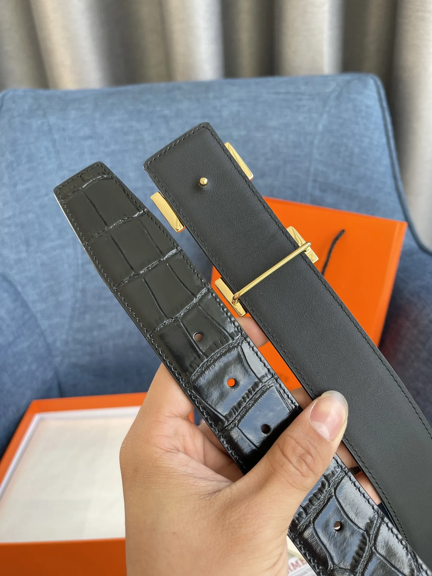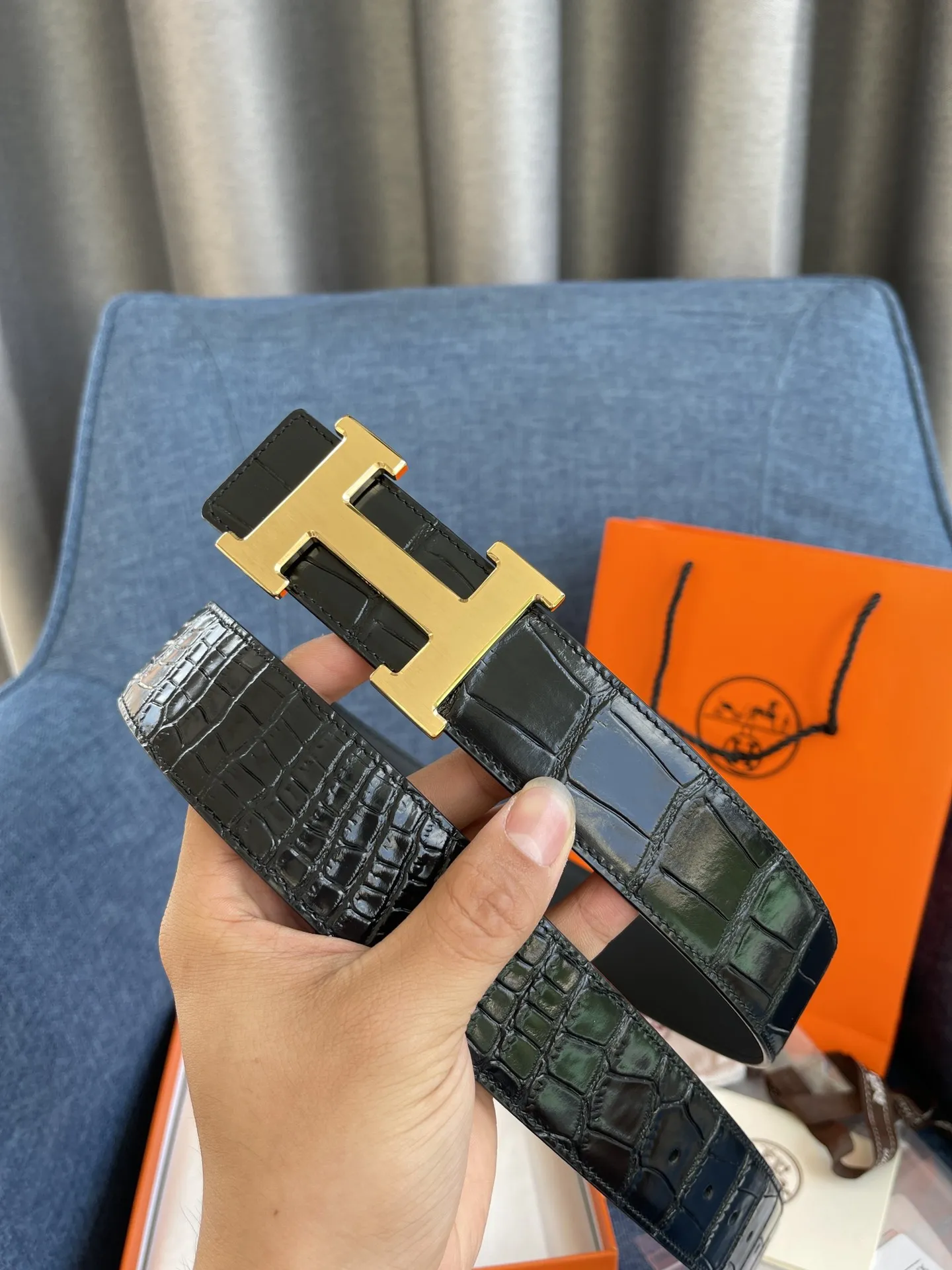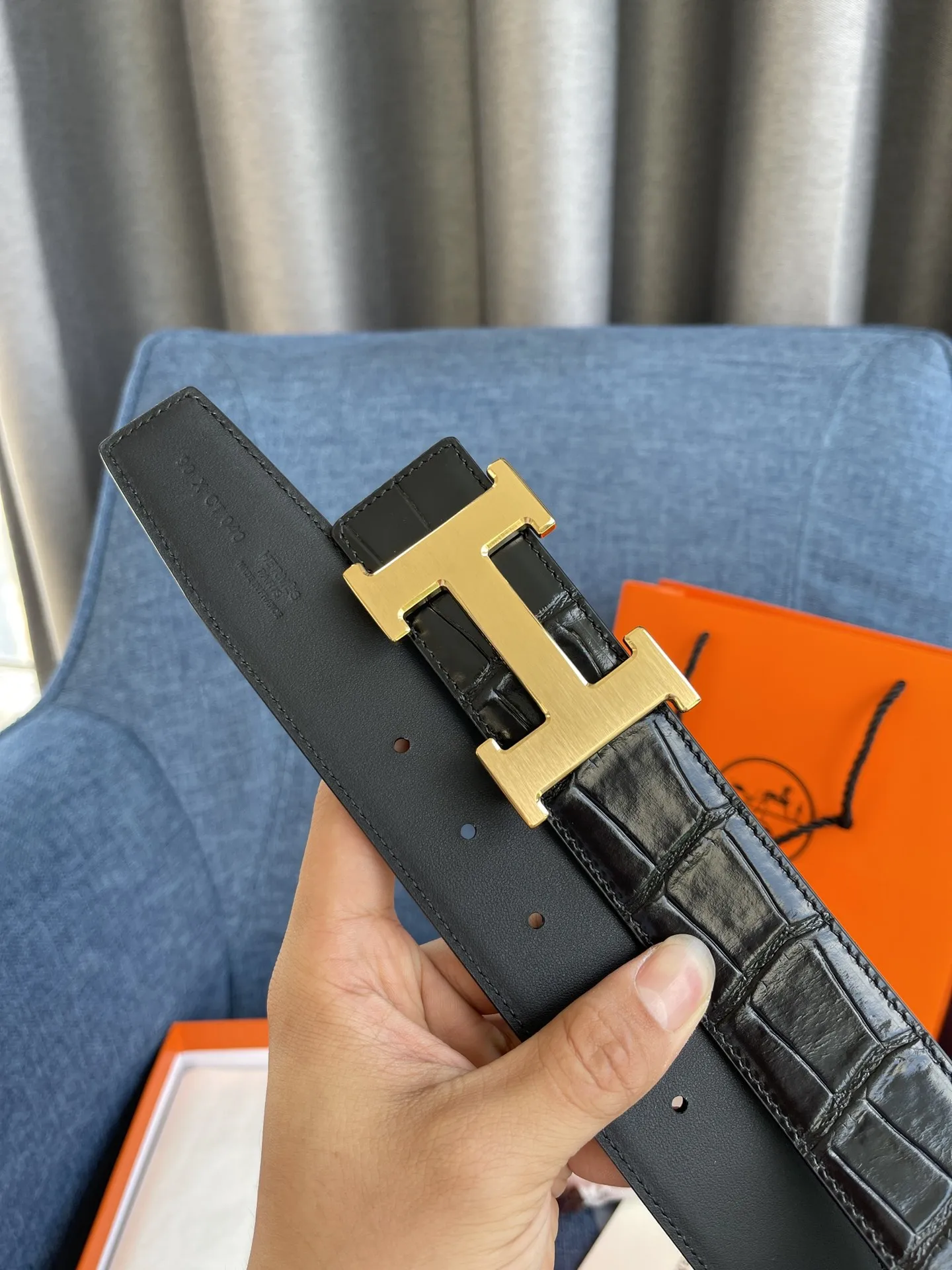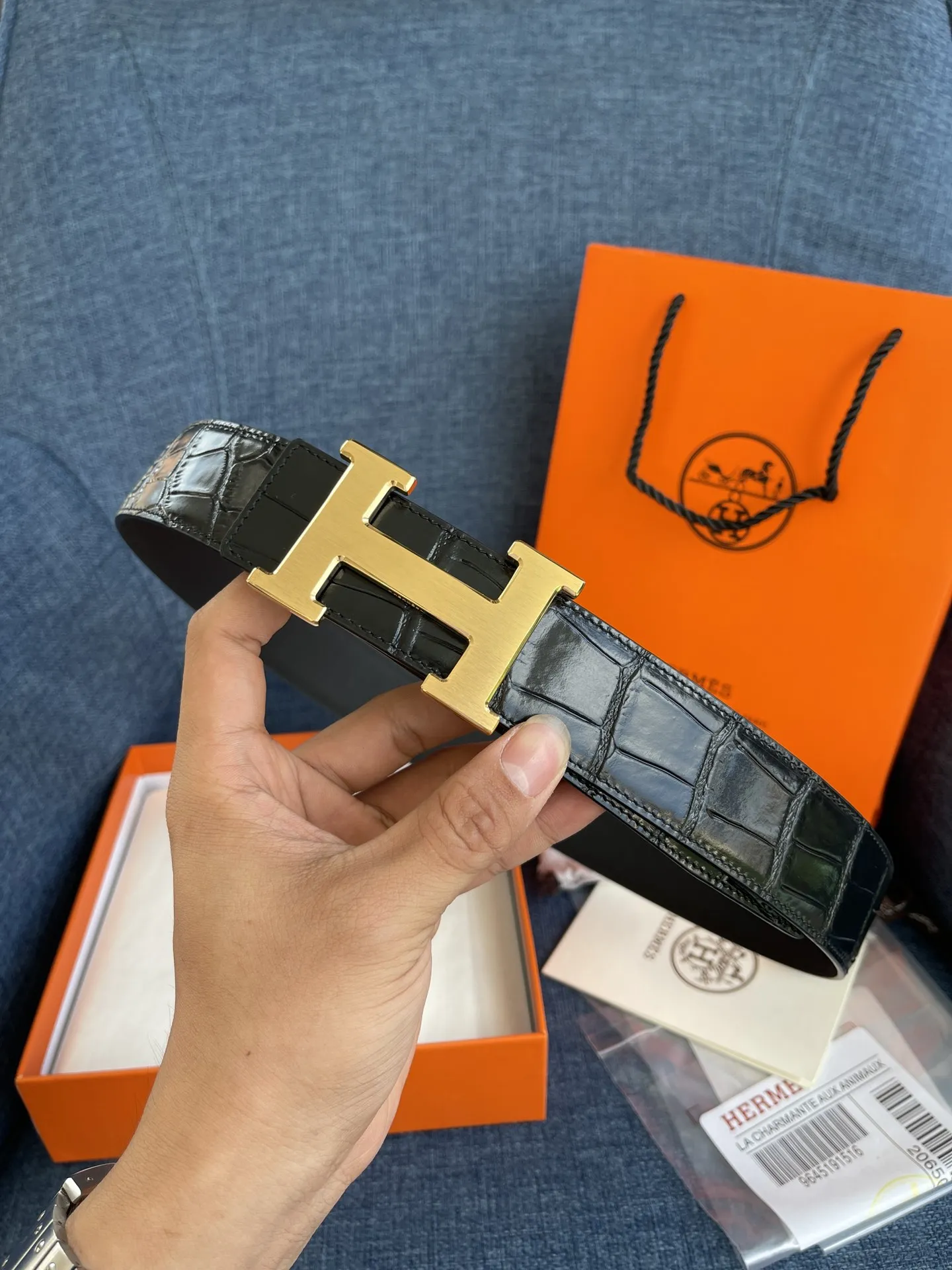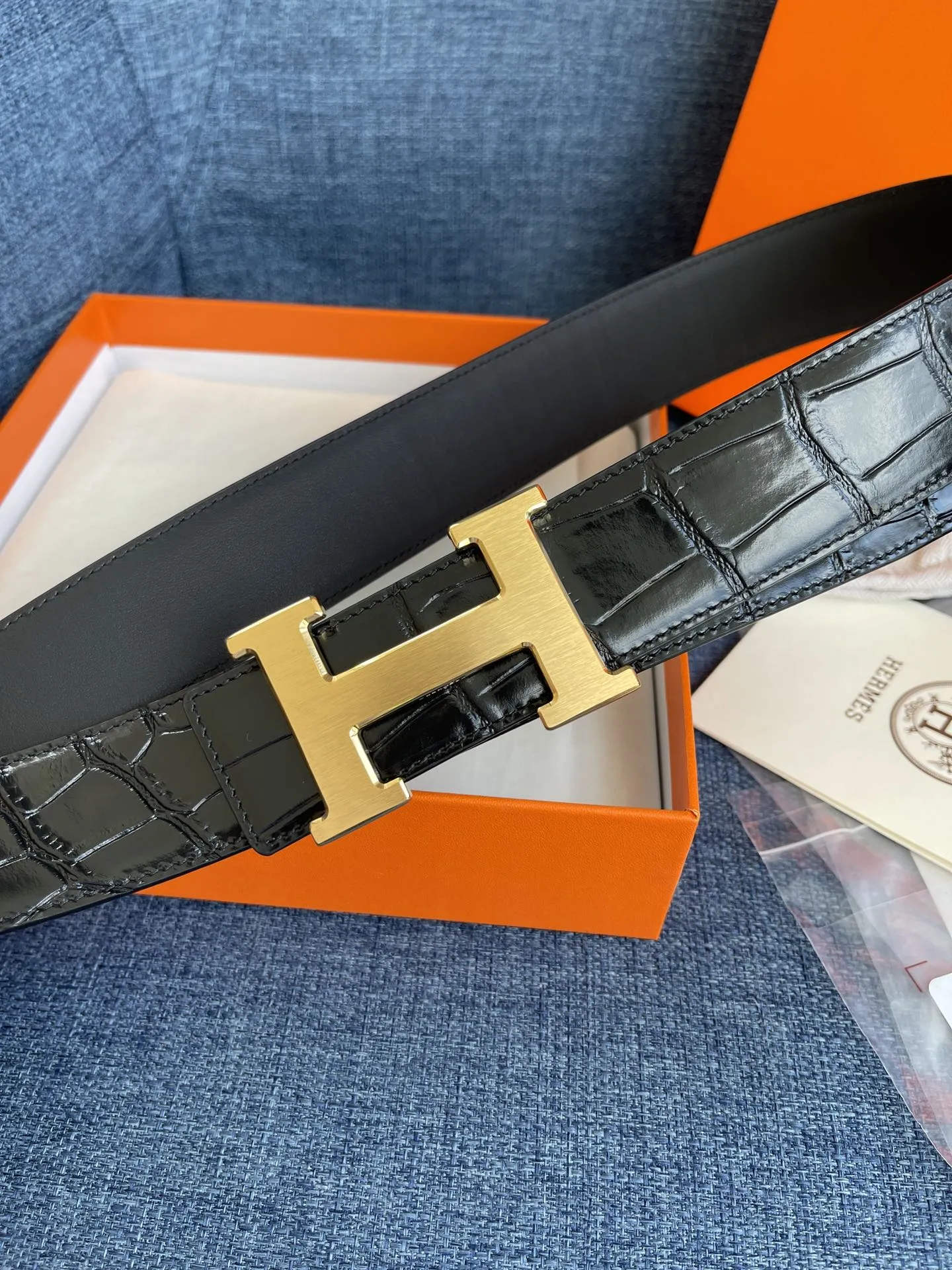 エルメスの新作黒クロコダイルベルトは、コンスタンスバックルとリバーシブルレザーストラップを備えた高級感あふれるデザインです。38mm幅のダブルフェイスカーフレザーを使用し、ステンレス製の高級金具がアクセントを添えます。ダブルフェイスで使用可能なため、スタイルに合わせて使い分けが可能です。クロコダイル柄が上品な印象を与え、スーパー コピーとしても注目されるアイテムです。特別なシーンにも普段使いにも最適な一品です。