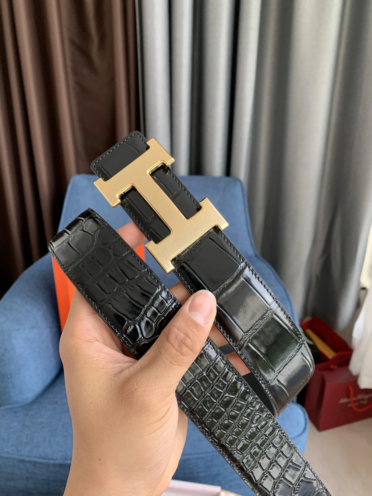 – エルメス新作黒クロコダイルベルト