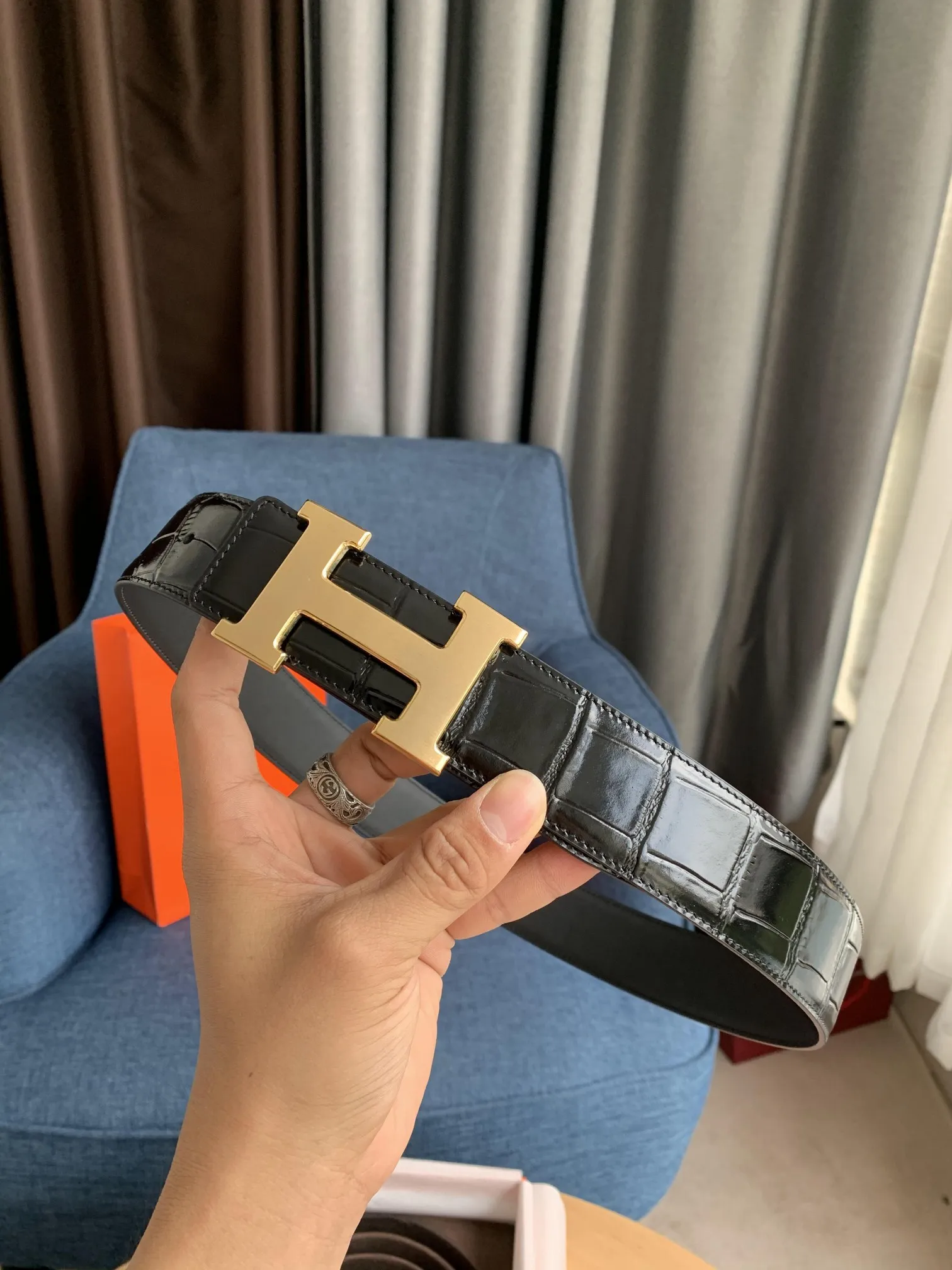 Hermès新作黒クロコダイルベルト38mm