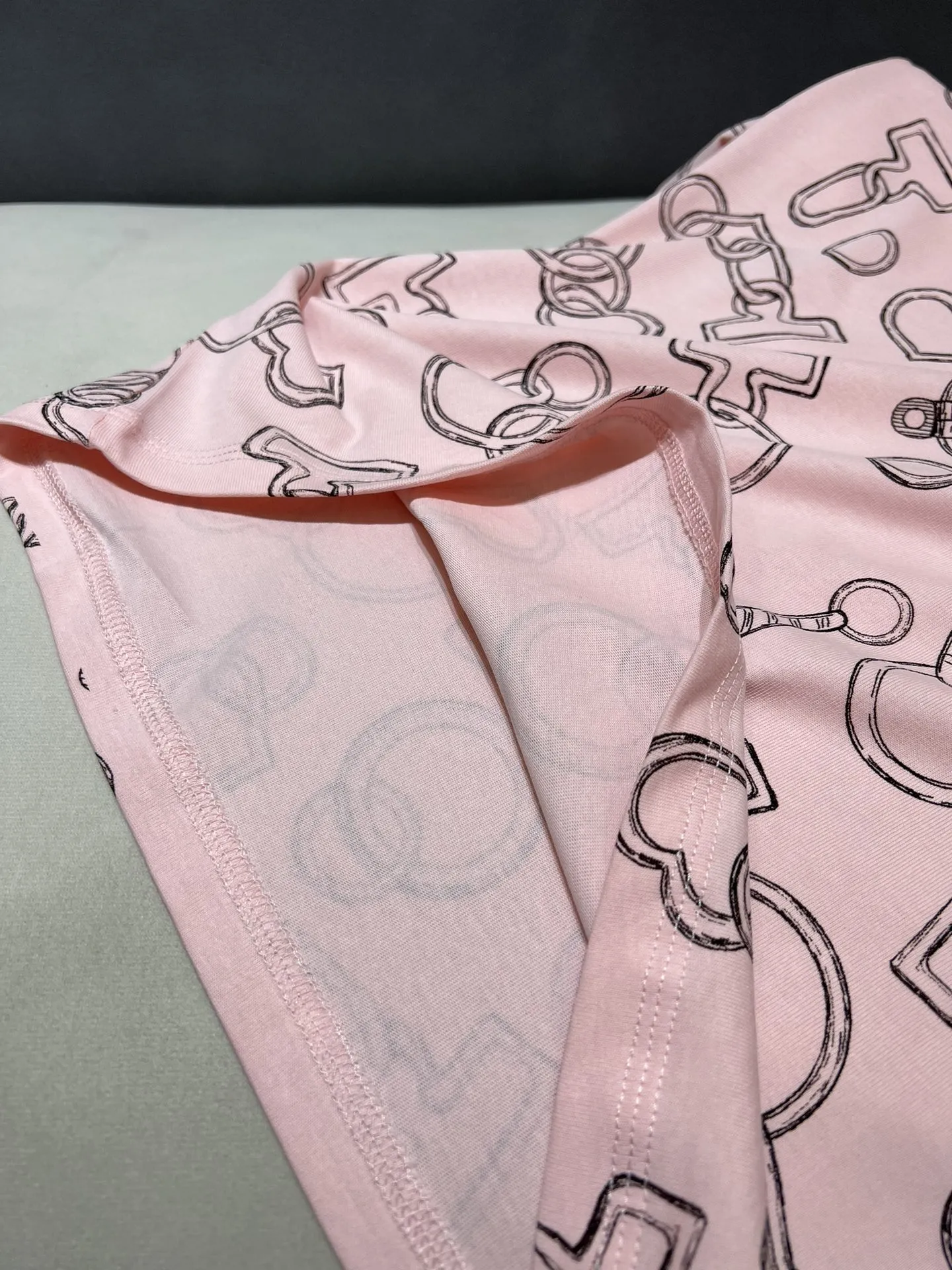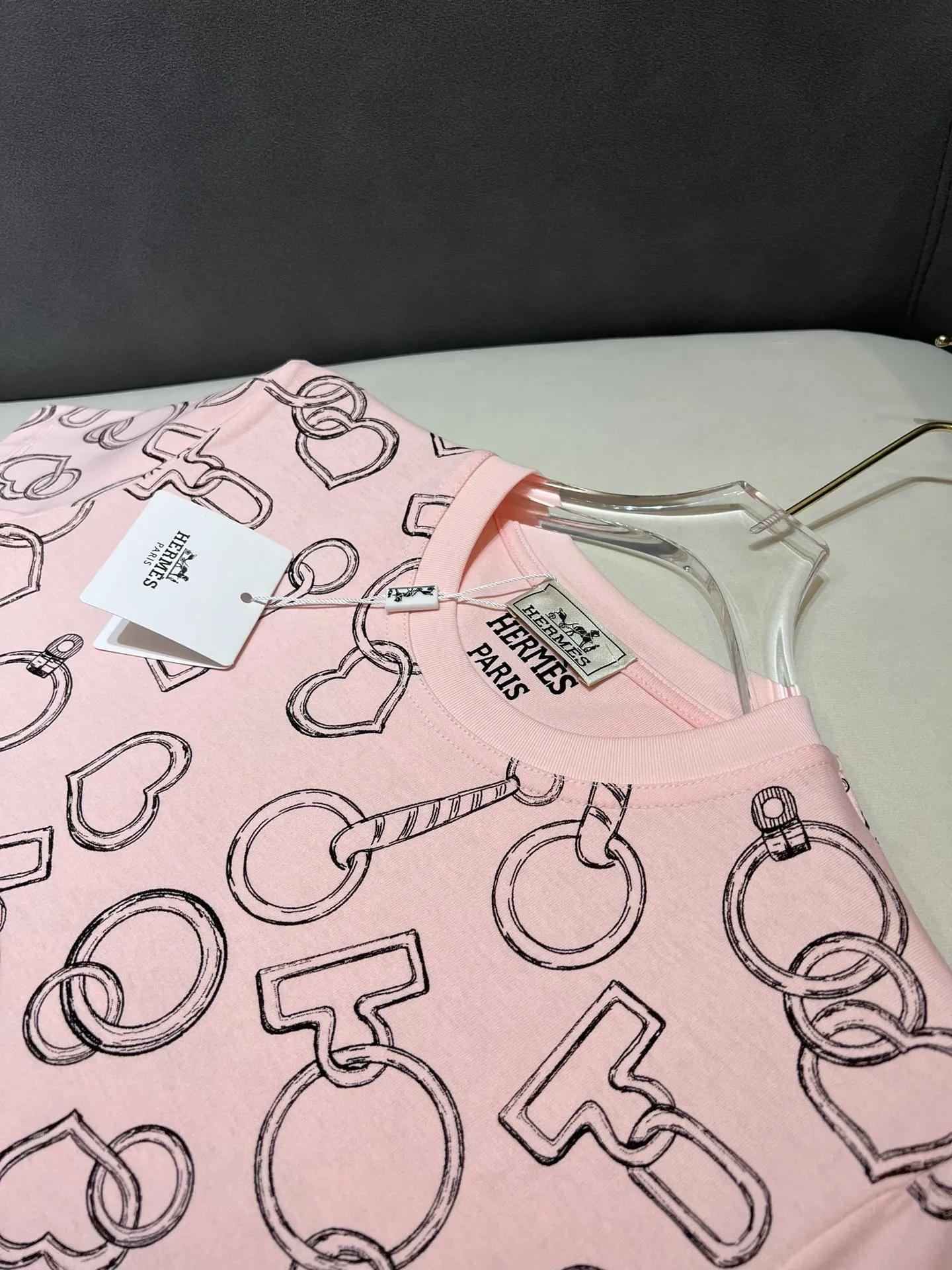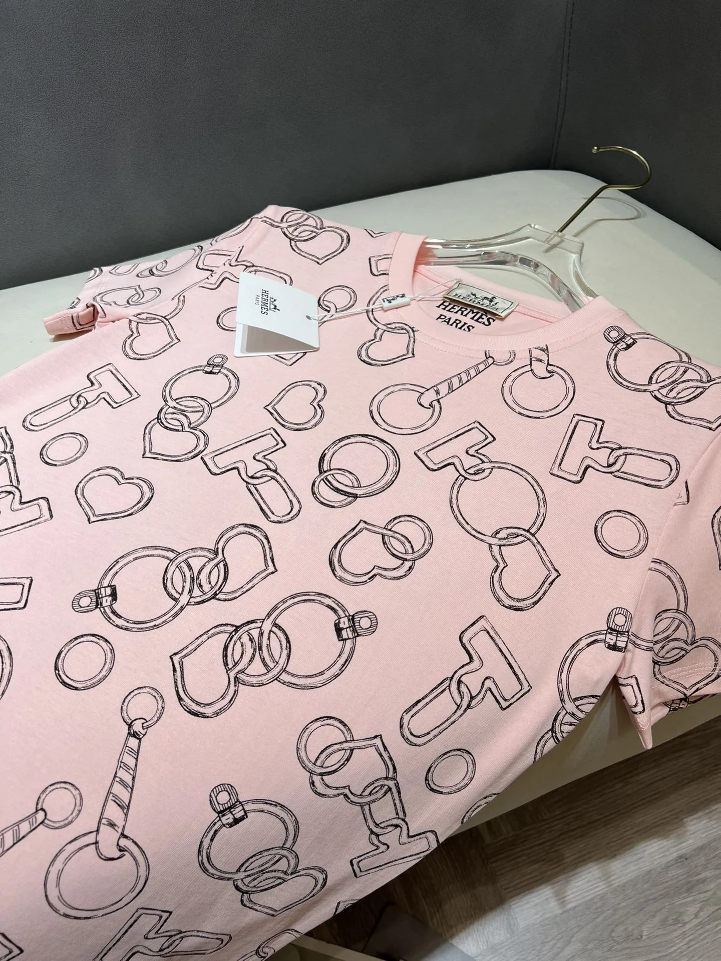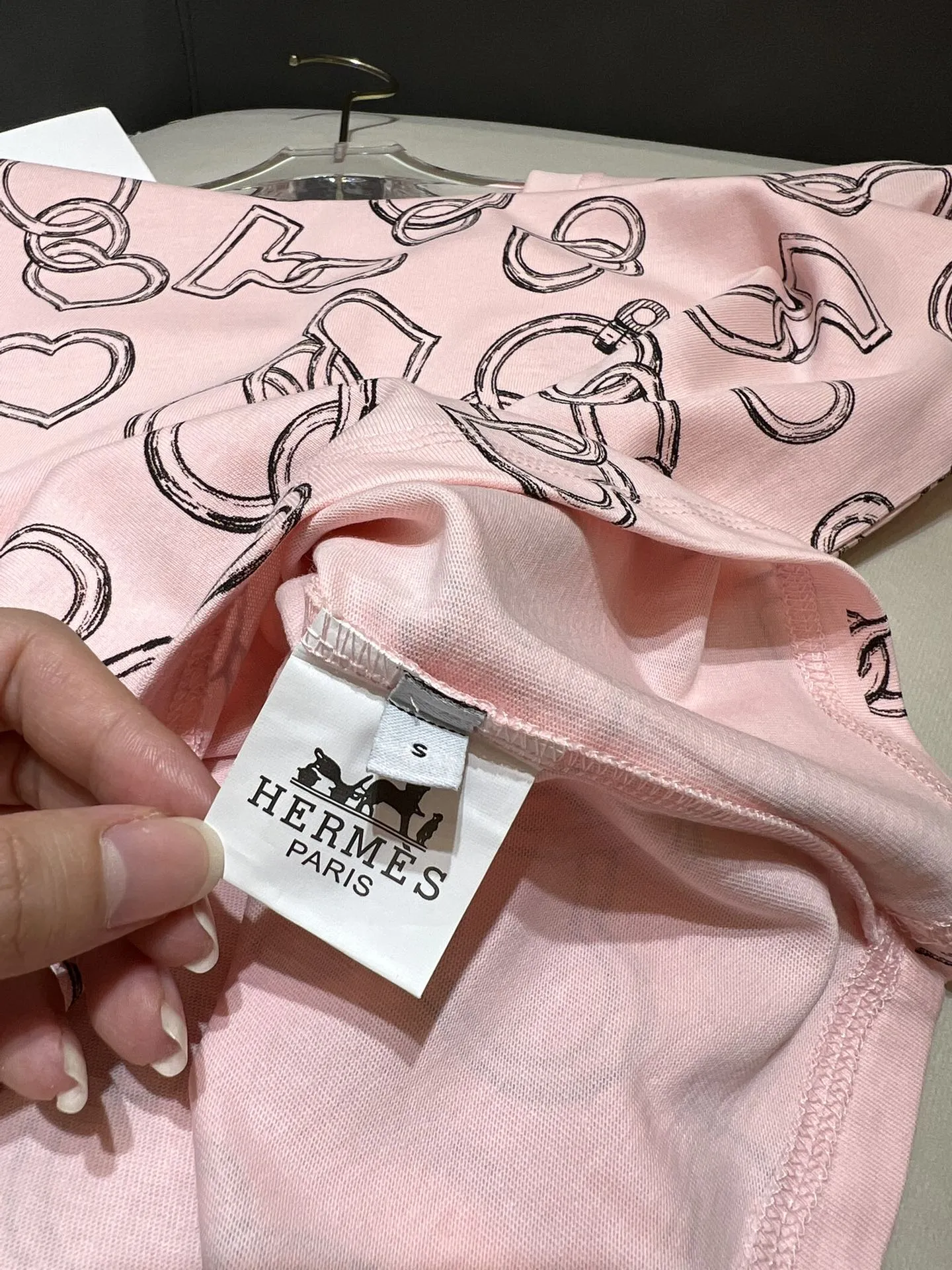 HERSC2024新作ピンクプリント半袖Tシャツ