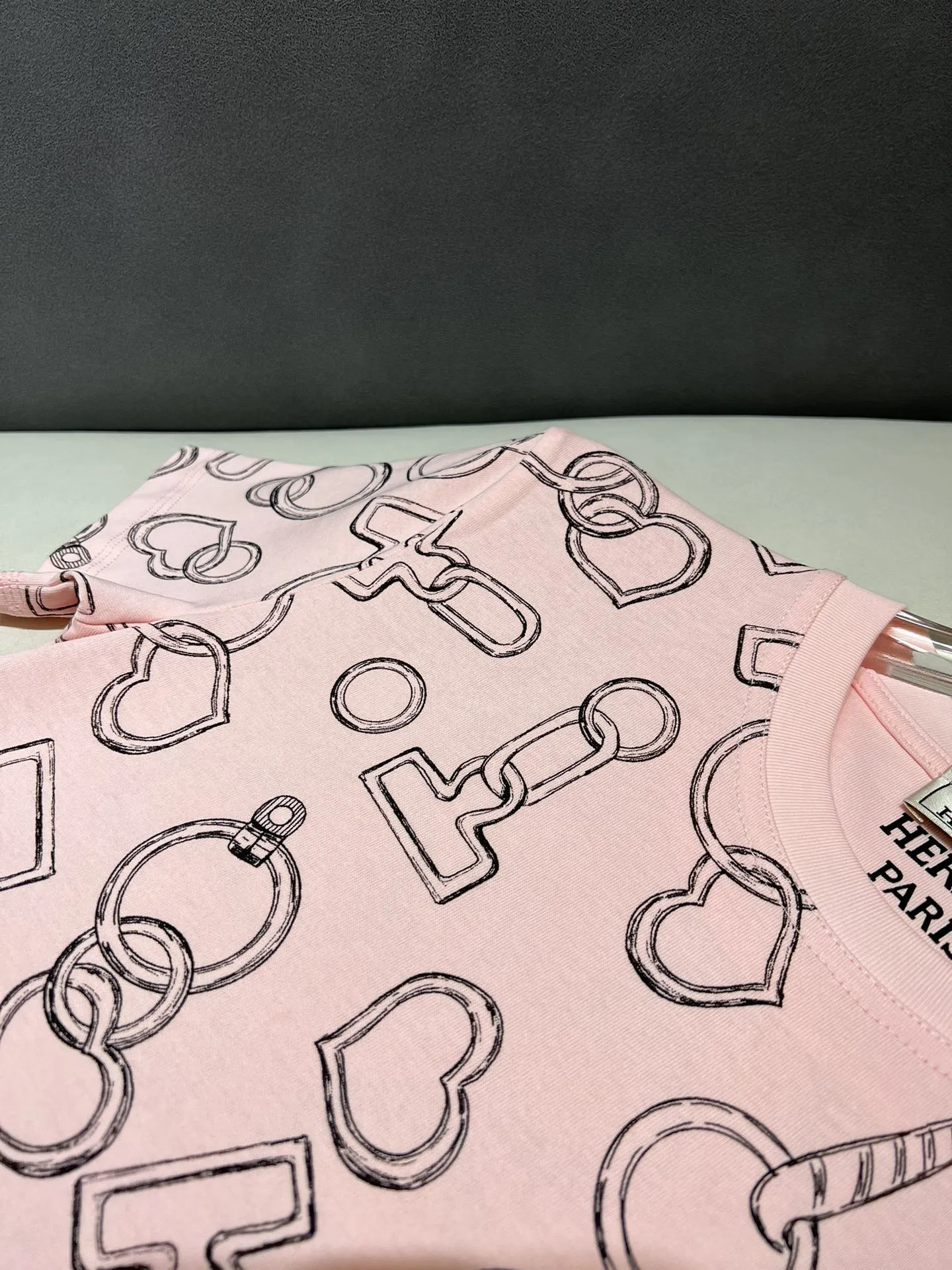 HERSC2024の新作ピンクプリント半袖Tシャツは、2024年春夏コレクションの注目アイテムです。フルプリントの愛心チェーンパターンが特徴で、100%コットン素材を使用し、通気性と快適さを追求しています。ラウンドネックとドロップショルダーのデザインが、シンプルながらも高級感とアート感を演出します。日常の街着に最適なTシャツ スーパー コピーとして、スタイリッシュで若々しい印象を与えます。
