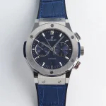 HUBLOTのクラシックシリーズから、45mmの大型ケースで若者向けの新しいデザインが登場。シンプルなステンレススチールケースにクロノグラフ機能を備え、ブラックダイヤルが高級感を演出します。表帯は外側が黒いレザー、内側がゴムで、汗にも強く快適に着用できます。低調なラグジュアリー感を兼ね備えたクラシックフュージョンスタイルが魅力で、ウブロ スーパー コピーとしても注目されています。