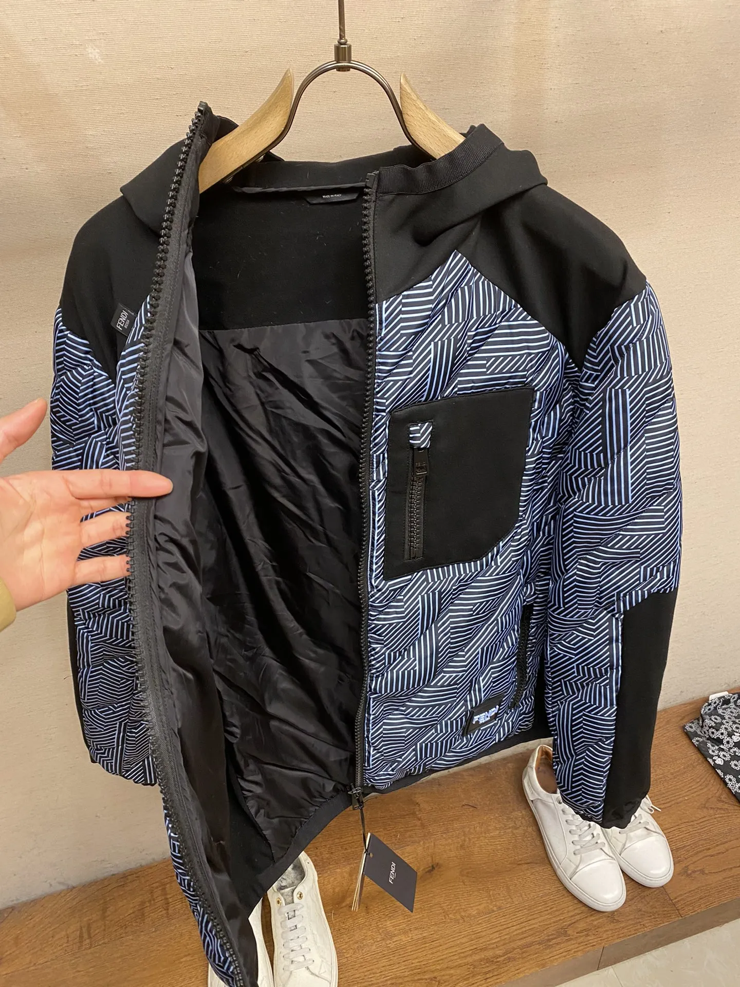 フェンディ キルティング ダウンジャケット ブルー ブラック フード付き
