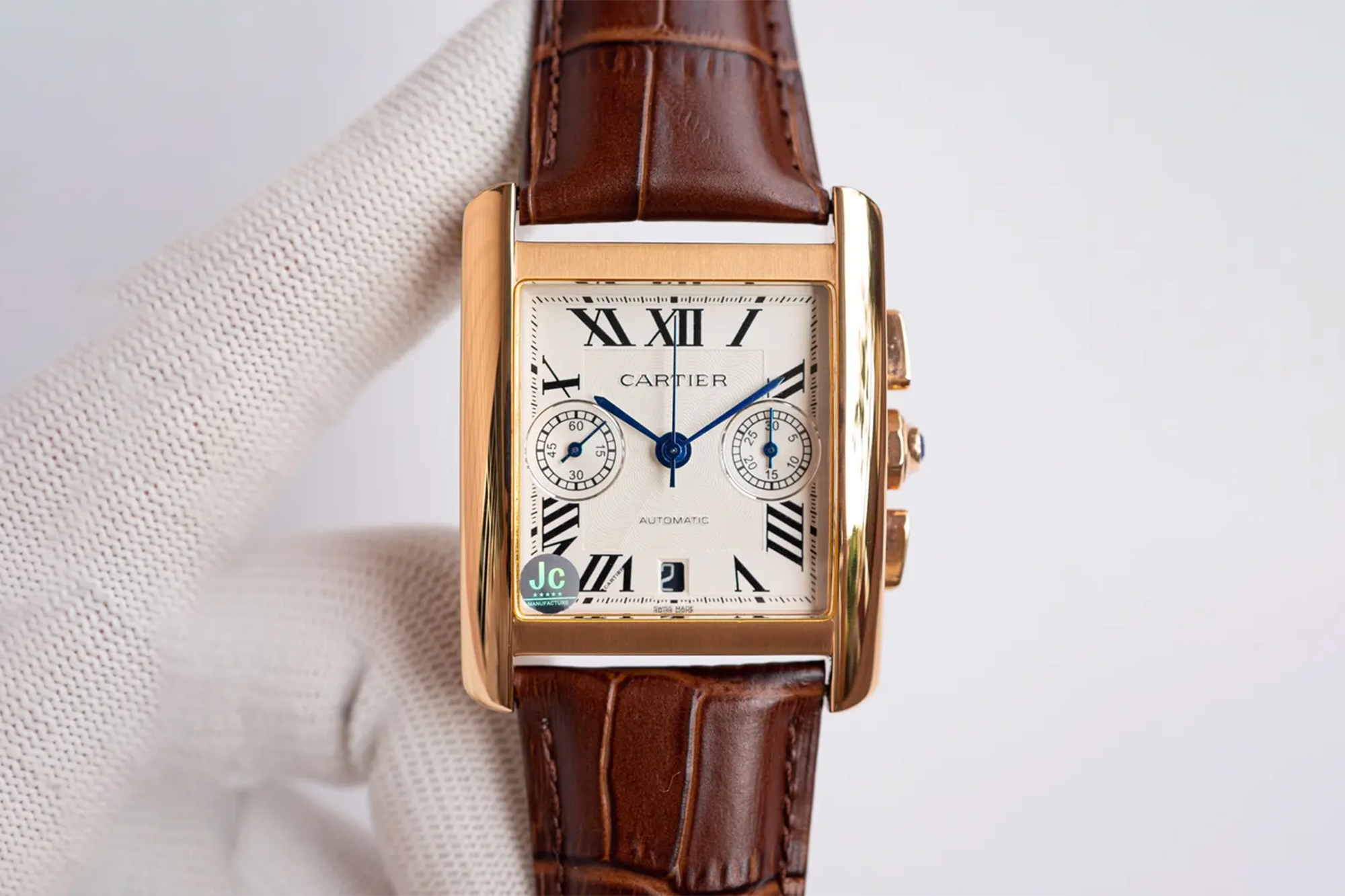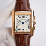 カルティエのタンクシリーズ、モデルW5330007は、ゴールドケースとブラウンレザーストラップが特徴です。34×44mmのケースサイズで、316LステンレススチールをCNCカットで精密に加工しています。防水防傷のサファイアクリスタルガラスを採用し、イタリアンレザーストラップが高級感を演出します。ダイヤルのテクスチャは細かく均一で、洗練されたデザインが魅力です。このような高品質なデザインは、カルティエ スーパー コピーとしても注目されており、多くの時計愛好家に支持されています。
