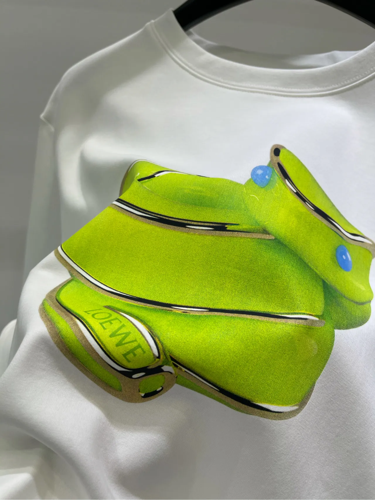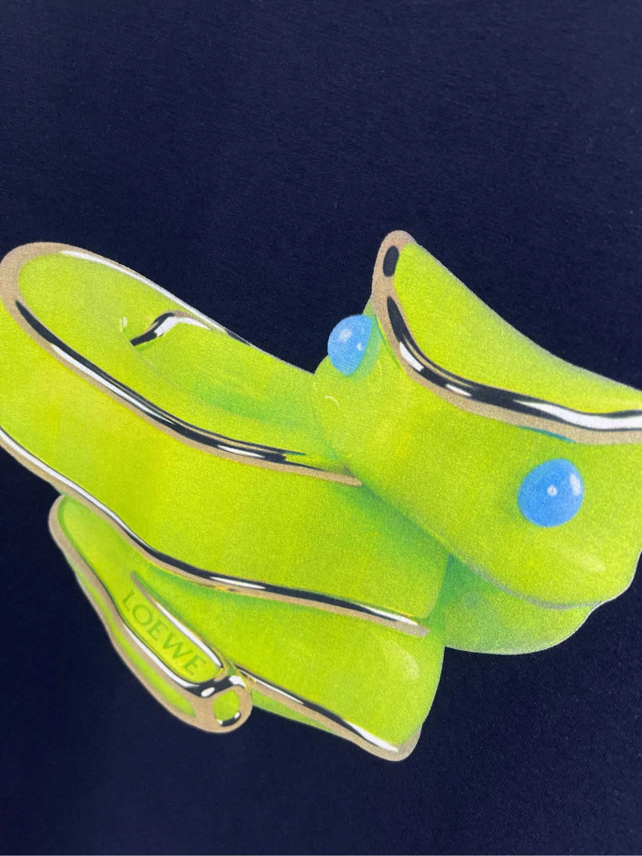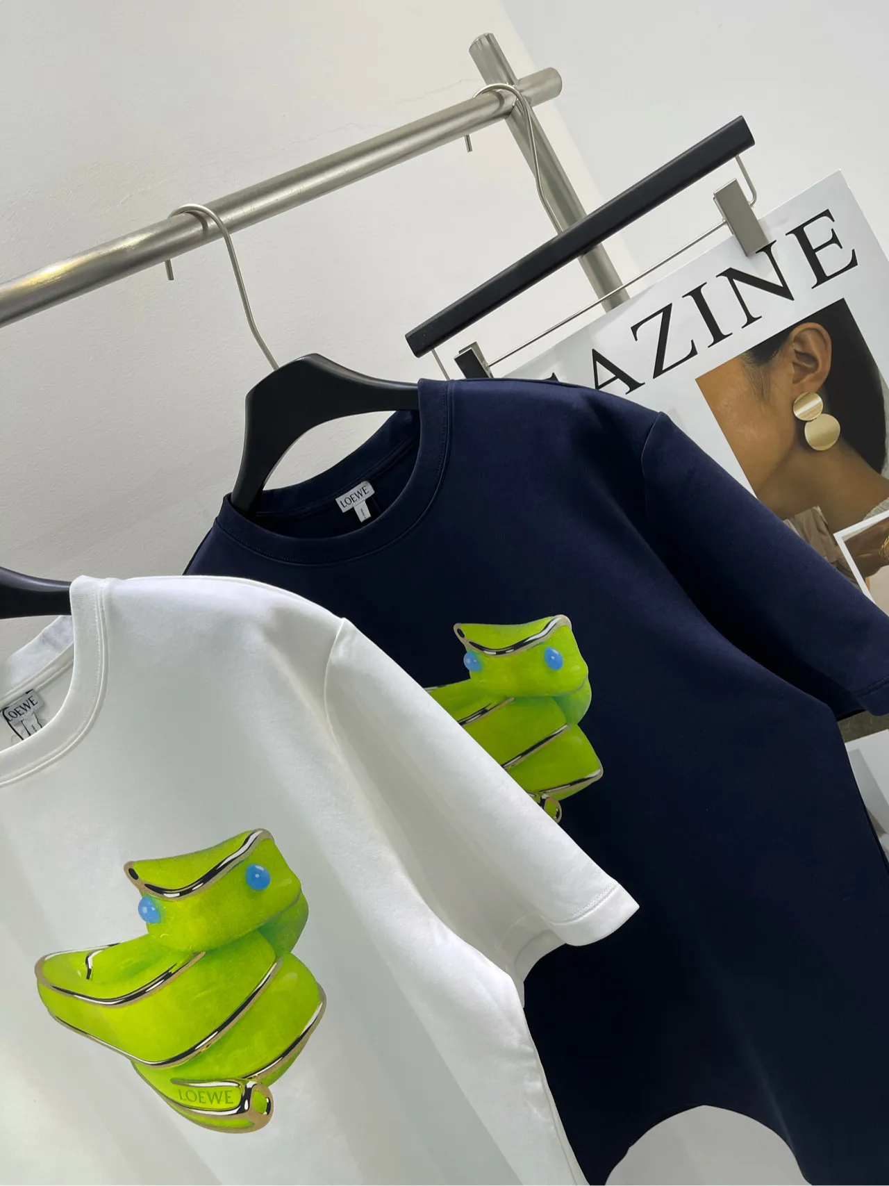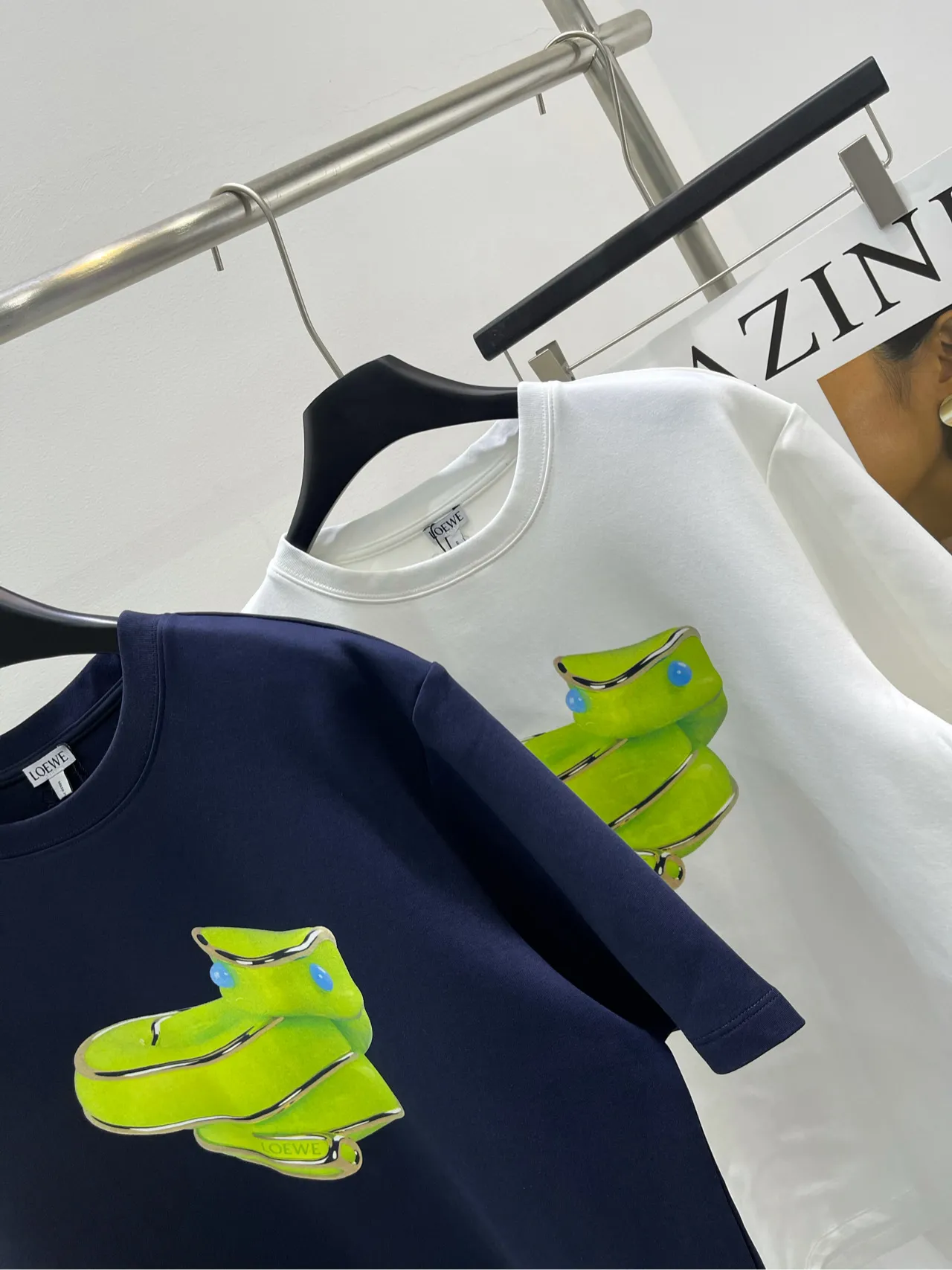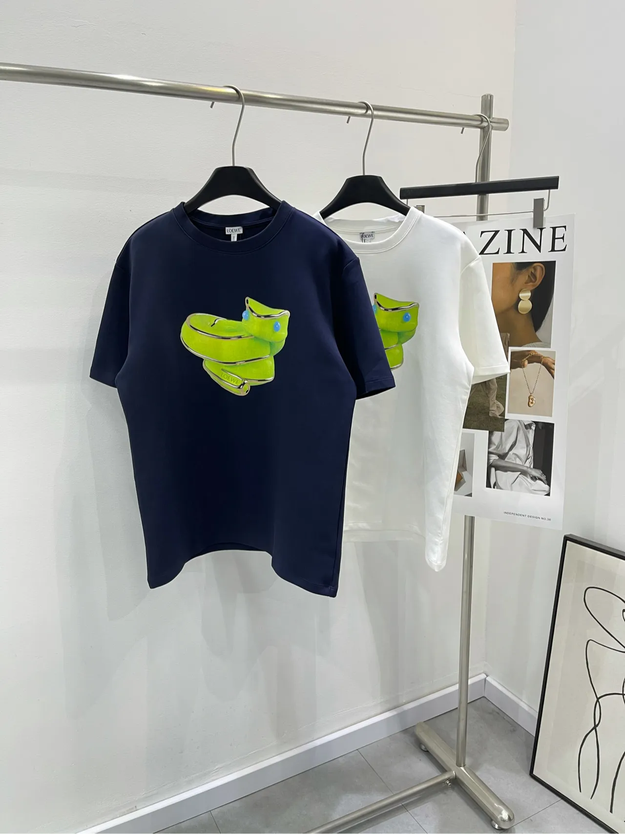 LOEWE新作蛍光小蛇プリント半袖Tシャツ白ネイビー