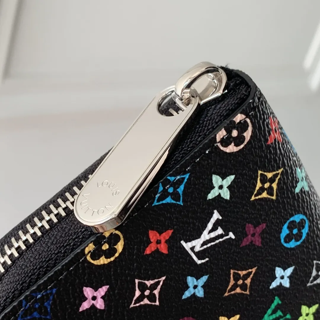 루이 비통과 무라카미 다카시의 두 번째 콜라보레이션으로 등장한 Clémence 지갑은 레인보우 컬러의 모노그램 패턴이 특징인 고급 코팅 캔버스 소재로 제작되었습니다. 골드 지퍼를 열면 대형 내부 컴파트먼트 2개, 고정식 코인 포켓, 다수의 카드 슬롯이 일상 사용에 편리함을 제공합니다. 이 독특한 디자인은 많은 이들에게 매력적으로 다가오며, N급품으로도 큰 주목을 받고 있습니다. 사이즈는 20 x 9 x 2 cm입니다.