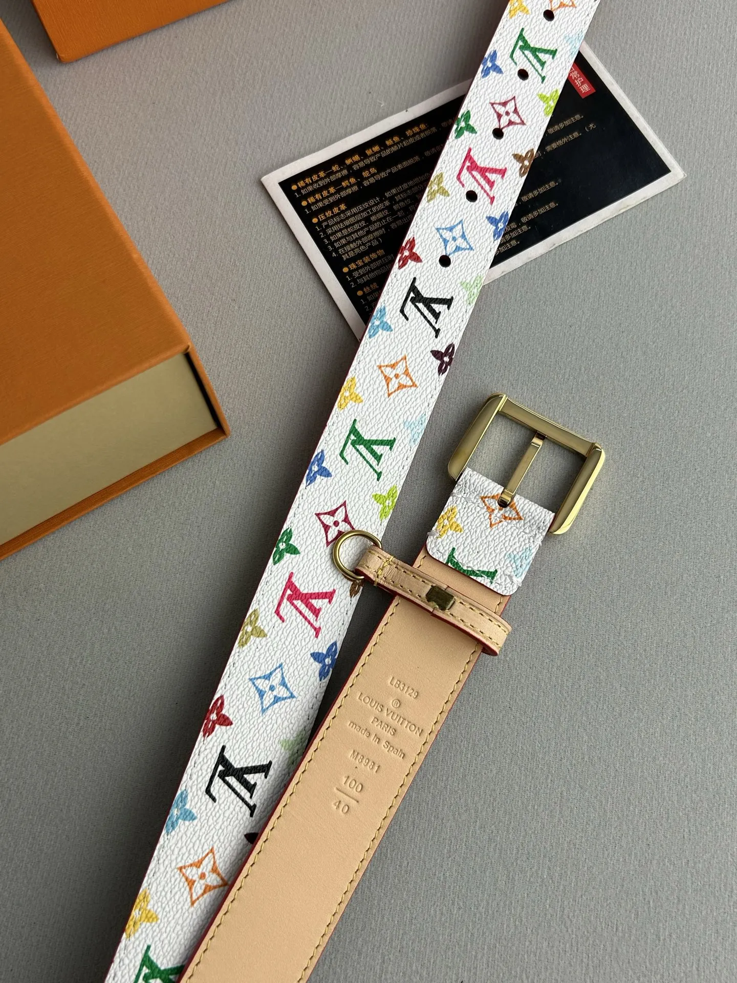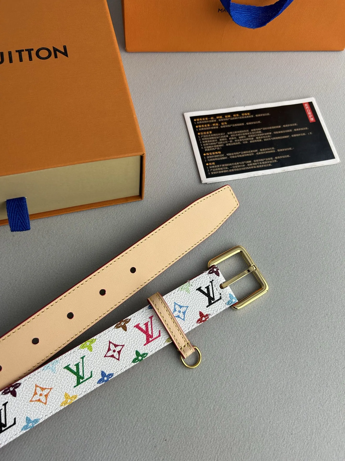 ルイ・ヴィトンの七色小花柄ベルトは、3.0cmの幅で、光滑なレザー裏地が特徴です。ピン留めバックルが個性的な雰囲気を醸し出し、光沢のあるエナメル装飾がクラシックなブランド要素にエレガントな魅力を加えています。J00130130モデルは、洗練されたスタイルを追求する女性に最適で、N級品としてのクオリティも感じられる逸品です。