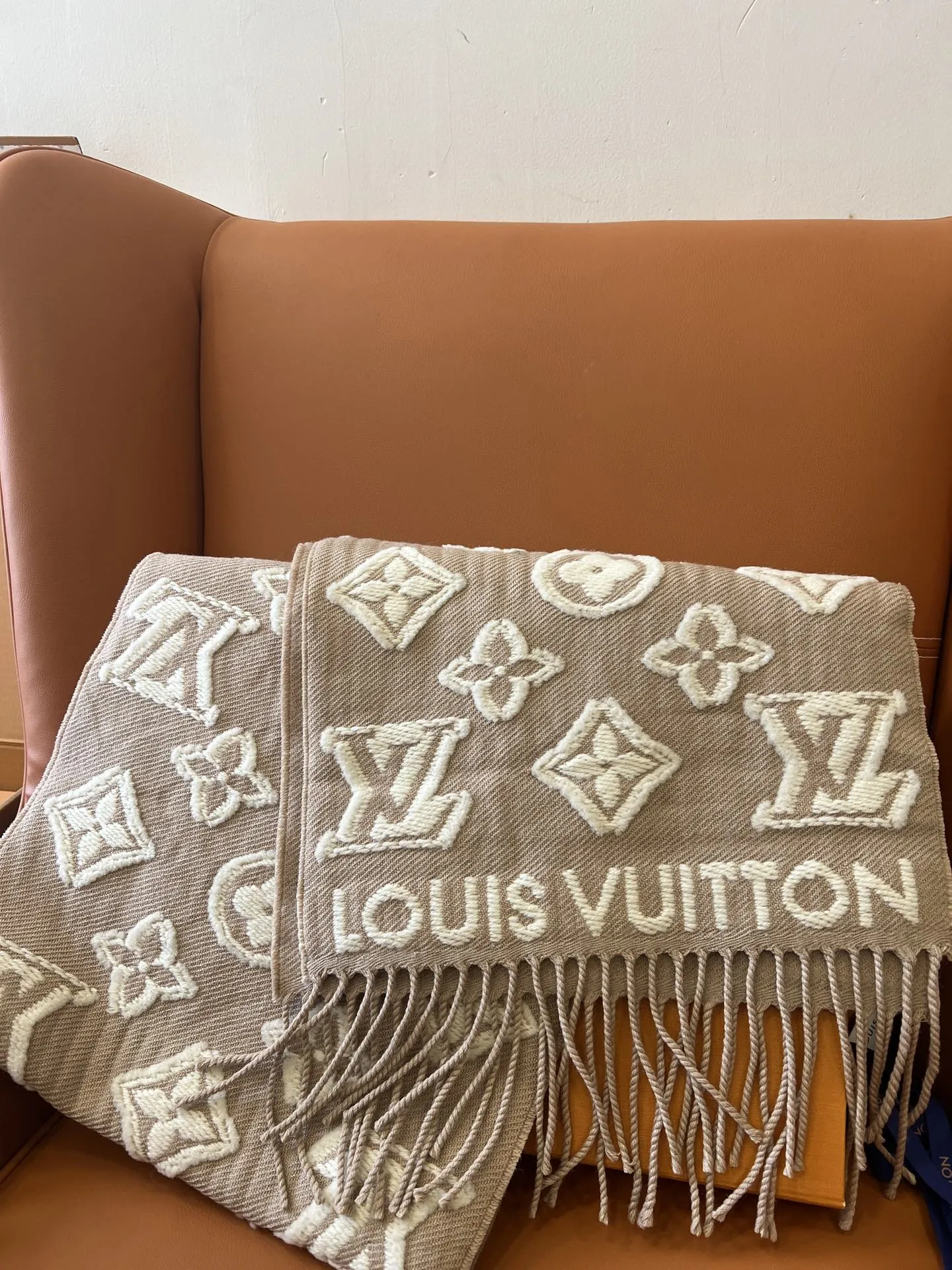 LOUIS VUITTON グレー 3D モノグラムマフラー