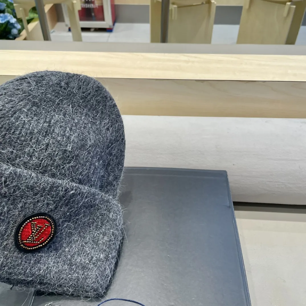 LOUIS VUITTON グレー ウサギ毛ニット帽