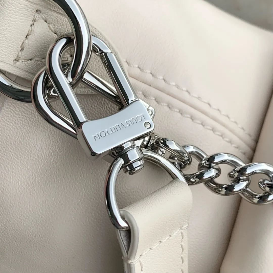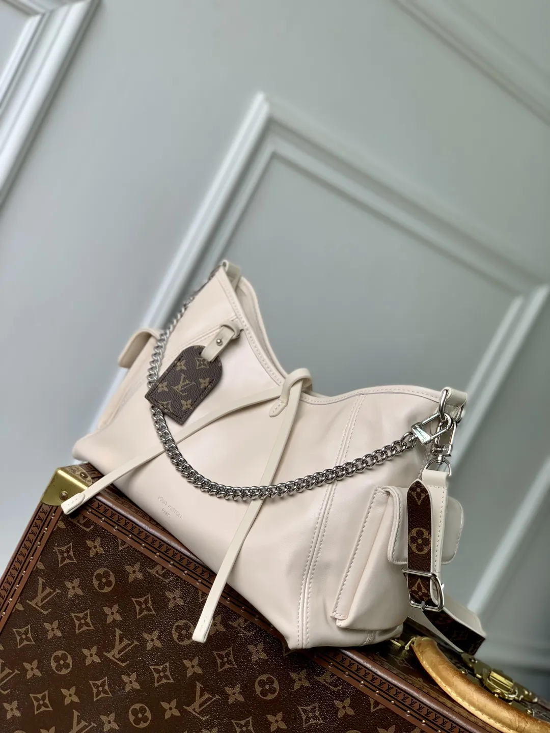 Louis VuittonのCarryAll Cargo Vibe小号手袋は、クリームカラーの羊革素材で仕上げられ、束帯や光沢のある金属パーツが特徴的です。取り外し可能なチェーンストラップが付いており、スタイリッシュな新季節のスタイルに合わせやすいです。Monogram名牌がブランドの精湛な職人技を表現しています。サイズは23 x 15 x 33.5 cmで、日常使いに最適です。このような高品質なアイテムをお探しの方には、N級品もおすすめです。