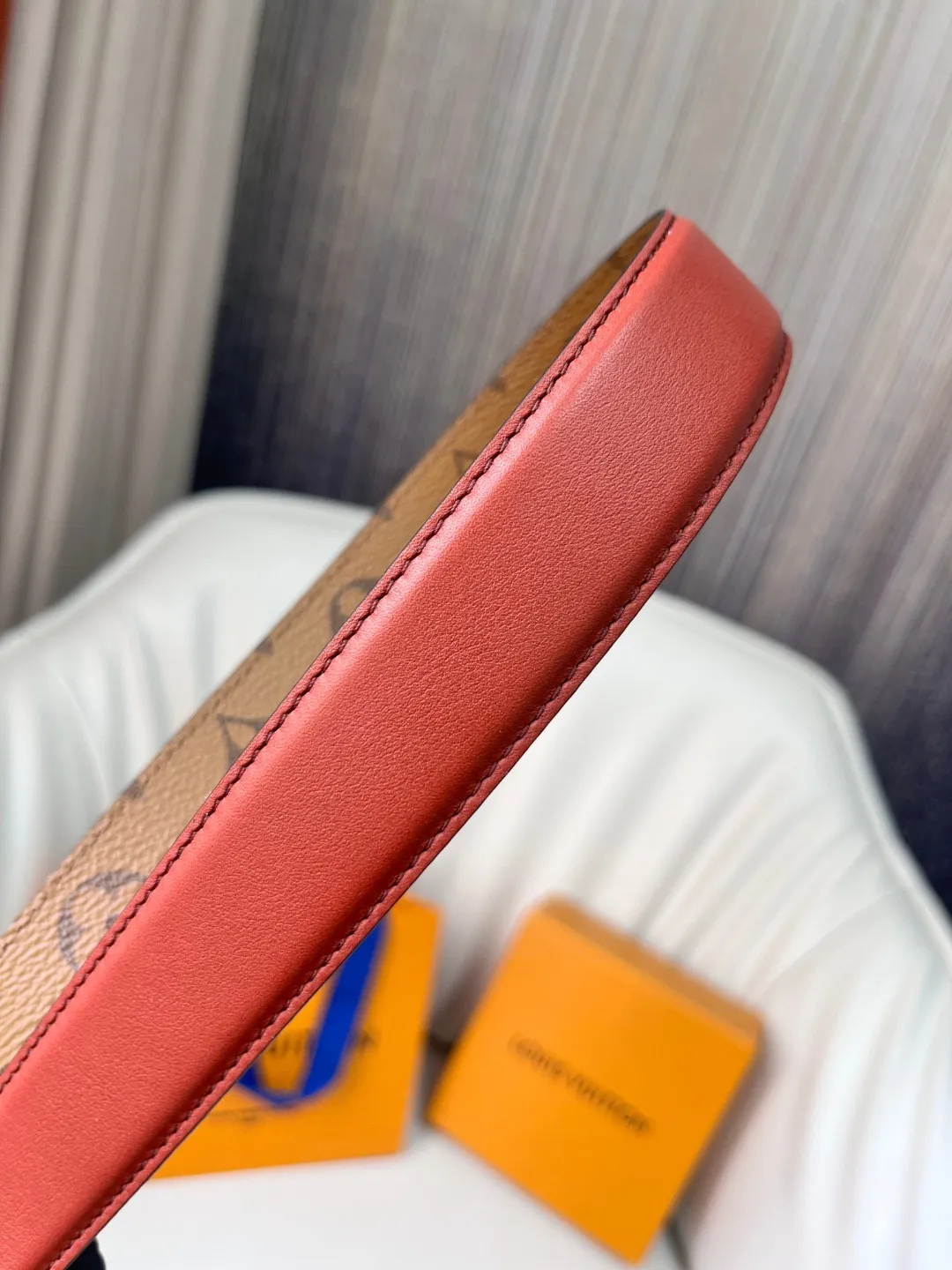 Louis Vuittonのレッドベルトは、キャンバス素材と上質な小牛皮を組み合わせた新しいスタイルです。金色の金属花卉がエレガントなアクセントを加え、ロゴ入り鋼印が高級感を演出します。クラシックなアルファベットバックルが特徴で、購入者にはオリジナルパッケージが付属します。このような高品質なデザインは、まさにN級品と呼ぶにふさわしい仕上がりです。