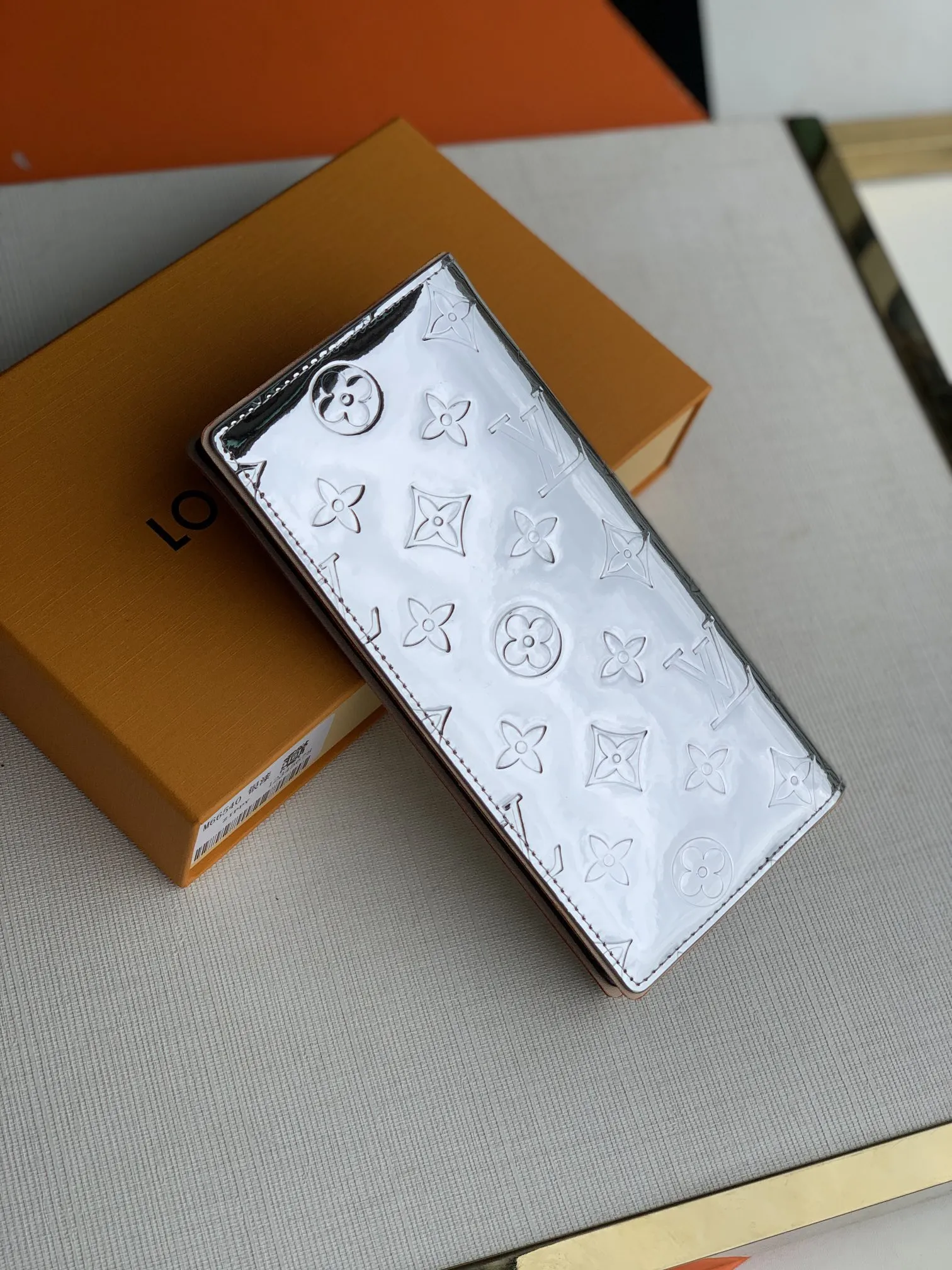 LOUIS VUITTONのシルバーBRAZZAスタイル財布は、2021-22秋冬のLV Mirror Mirrorカプセルコレクションから登場。反射するMonogram Mirrorキャンバスが特徴で、周囲を囲むジッパー付き。カードスロットやコイン、紙幣の収納スペースを備えた機能的なデザインです。サイズは10 x 19 x 2 cmで、コンパクトながら実用的。特別なアイテムをお探しの方には、ルイ ヴィトン 財布 偽物や、スーパー コピー 財布もおすすめです。