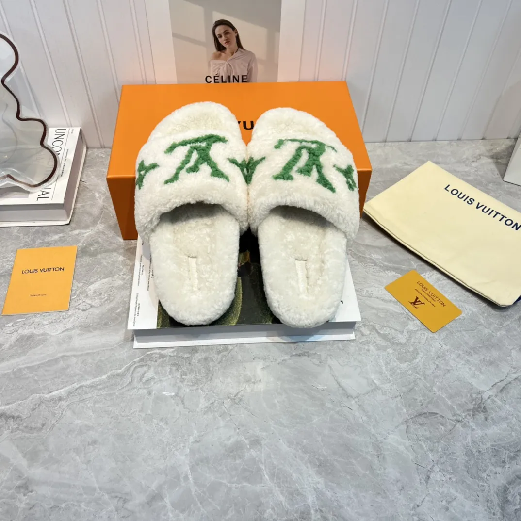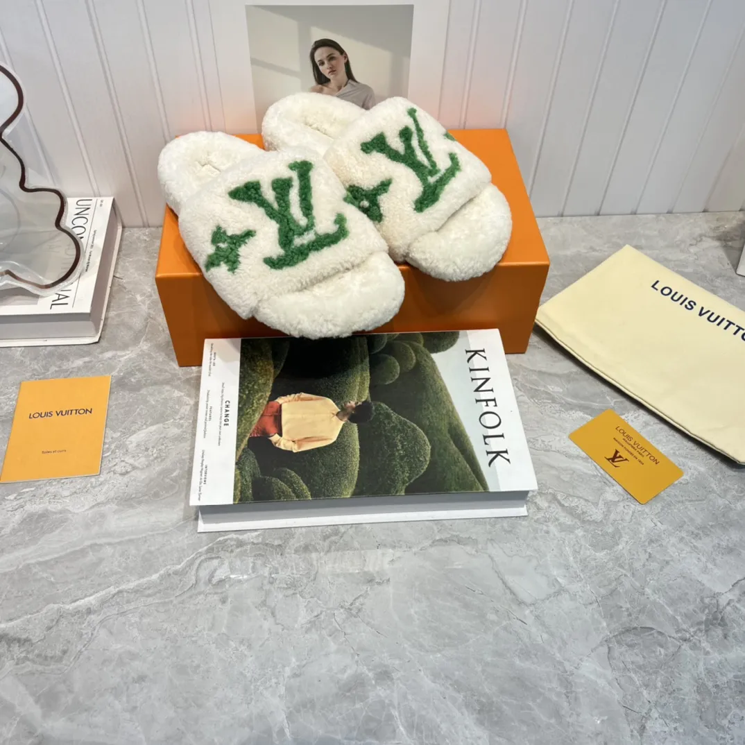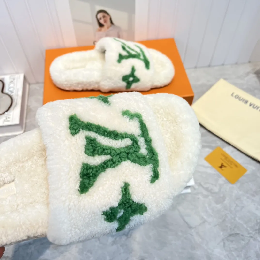 LOUIS VUITTON 新作ウールスリッパ 緑色デザイン