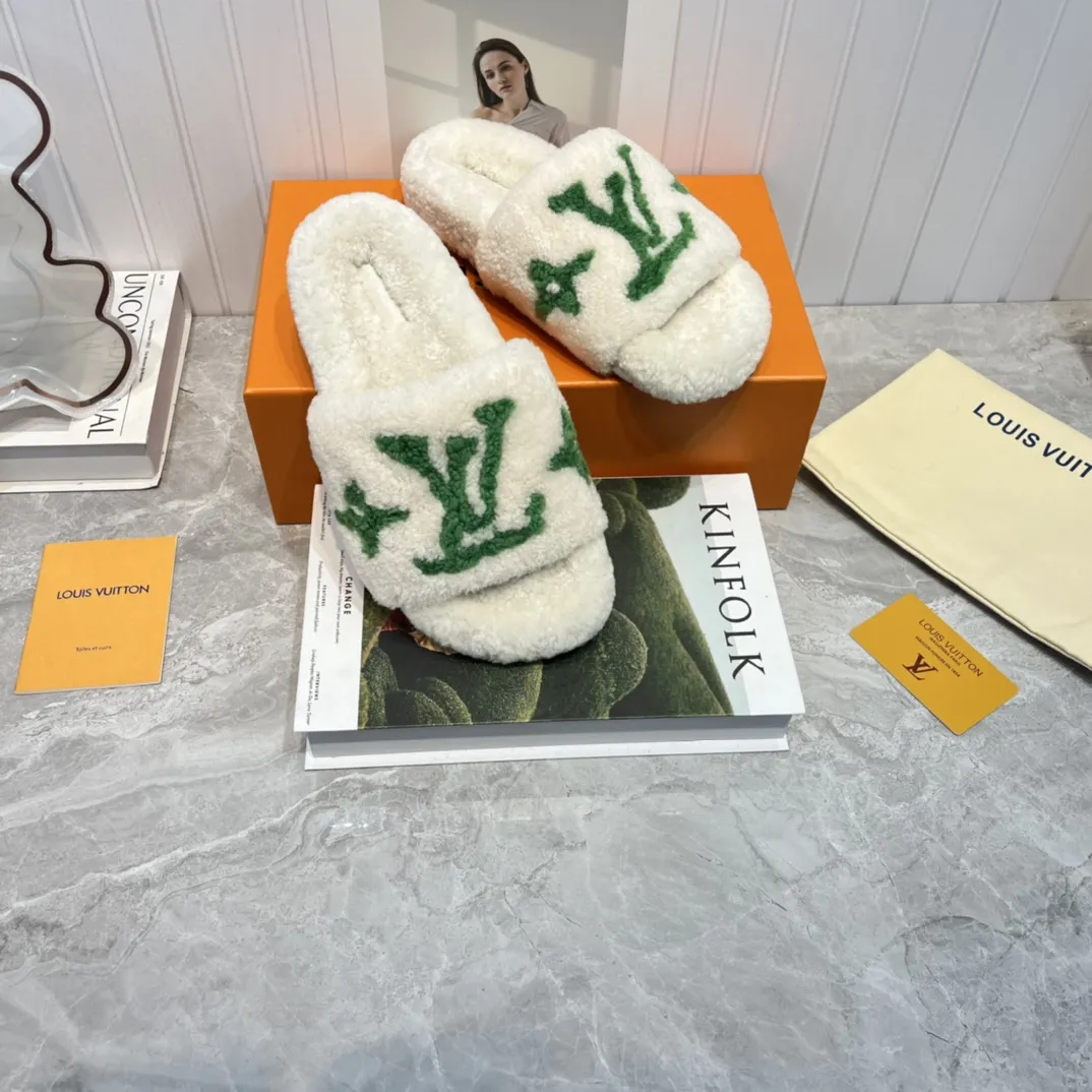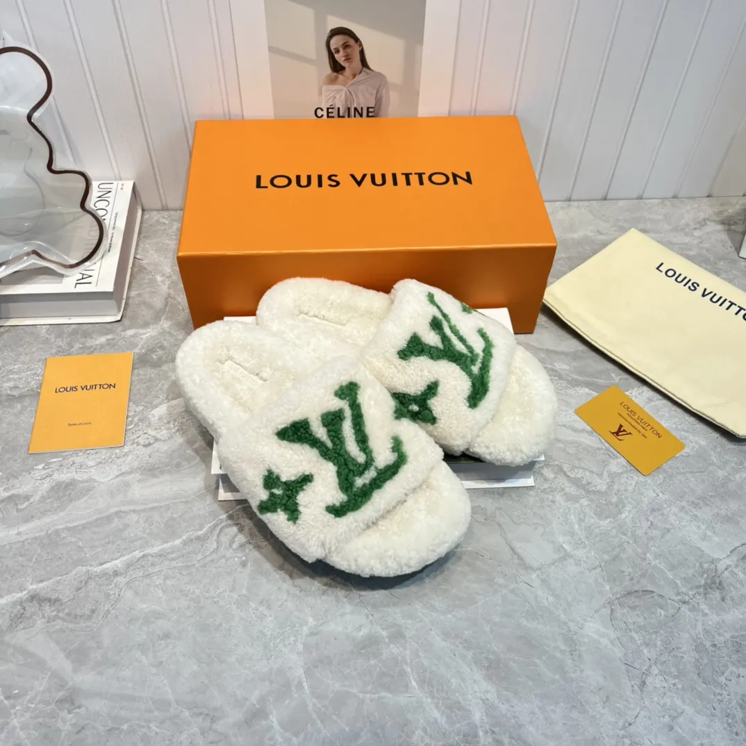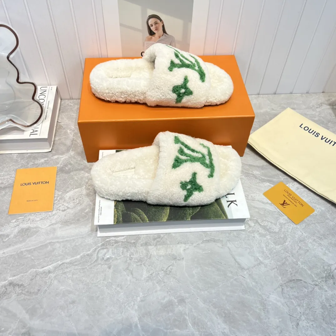 LOUIS VUITTON 新作ウールスリッパ 緑色デザイン