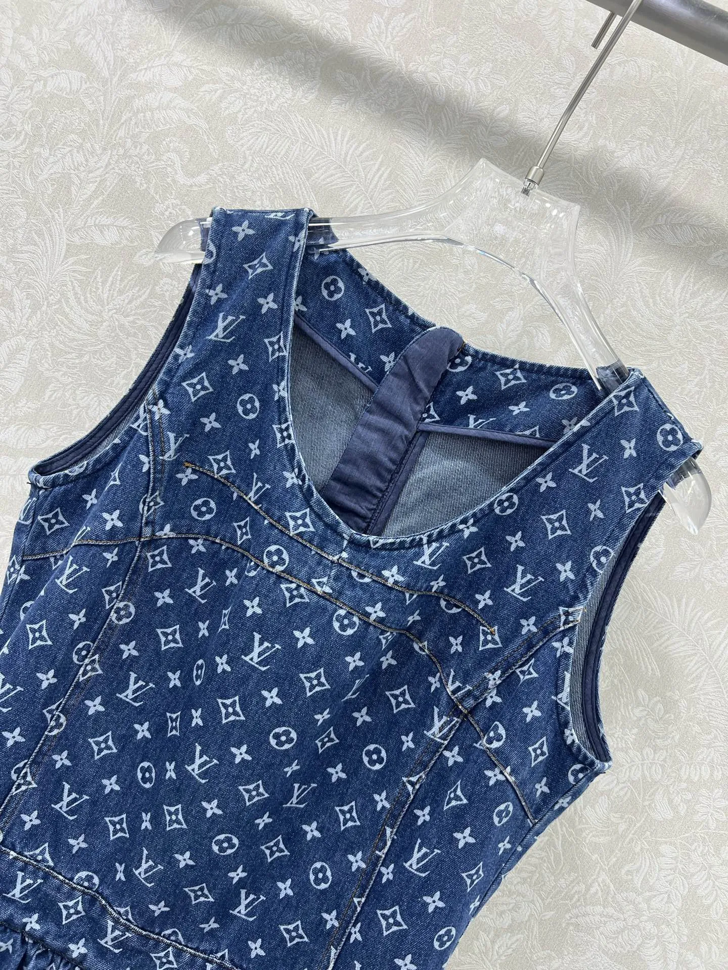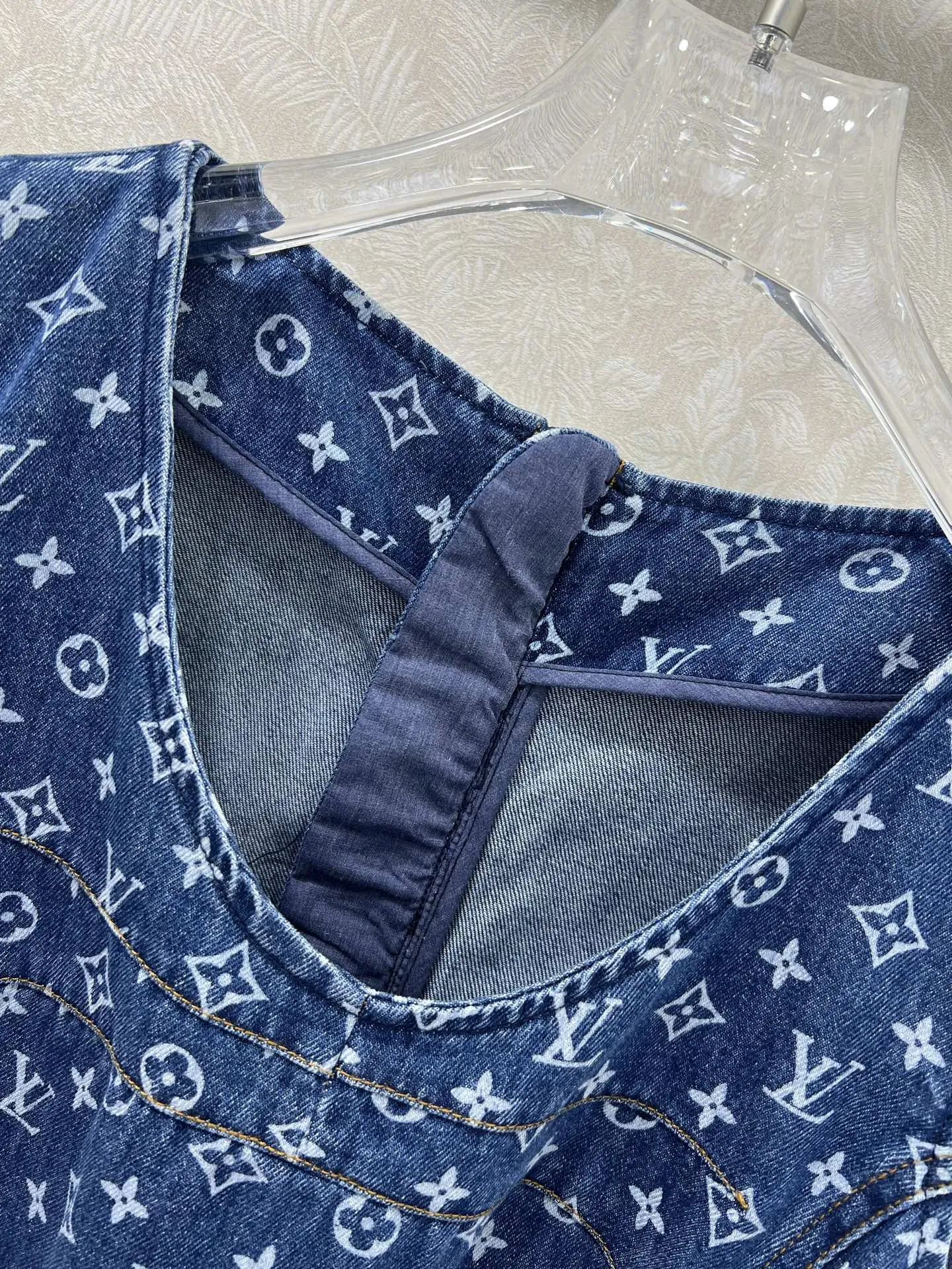 Louis Vuitton 25新款樱桃ブルーデニムワンピース