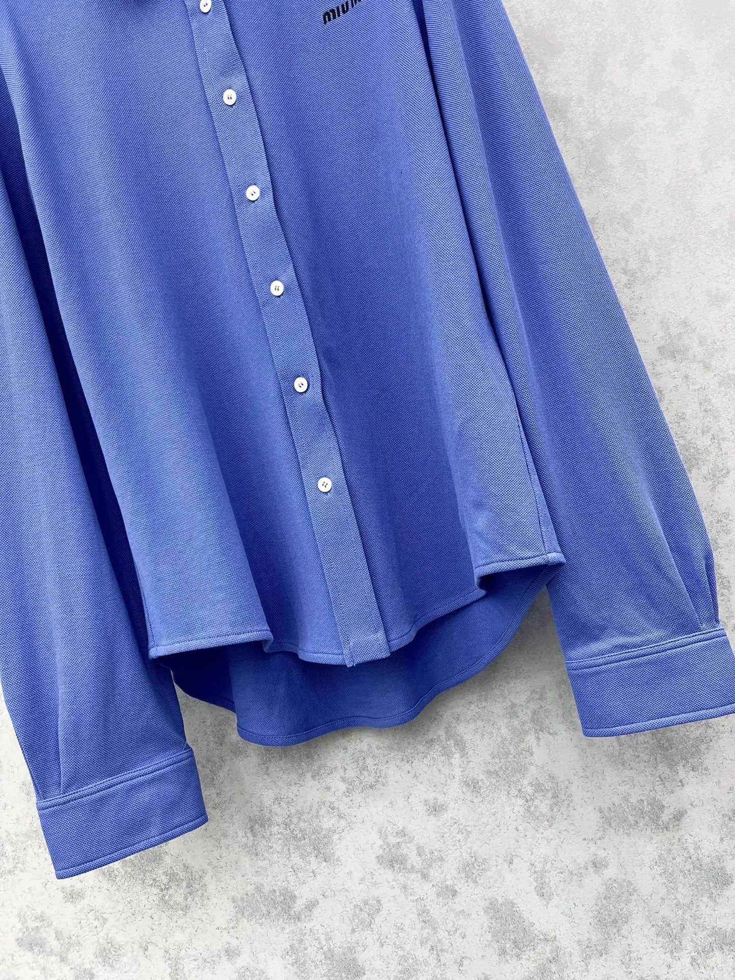 Miu Miu 2025ブルーフリル刺繍長袖シャツ