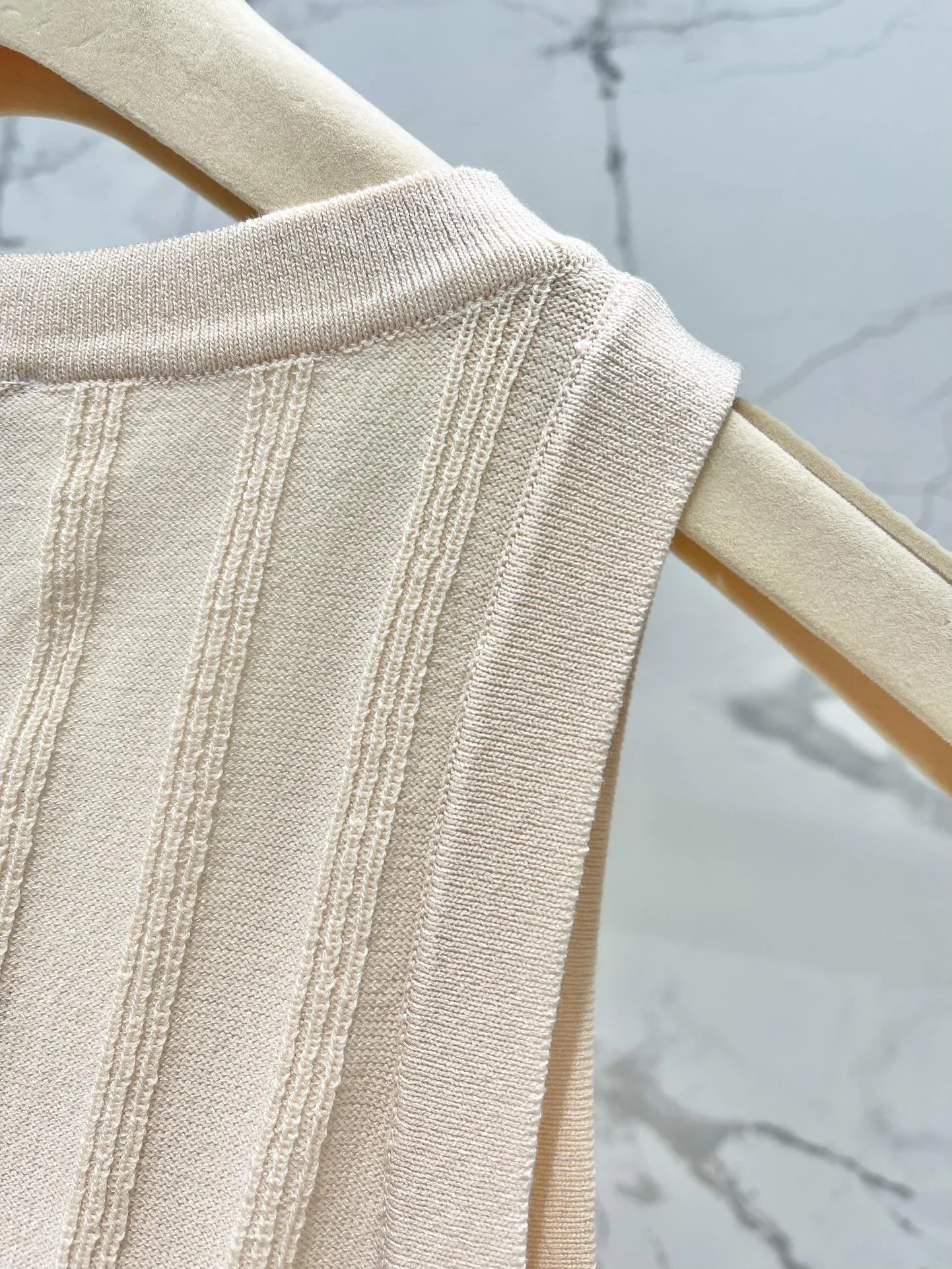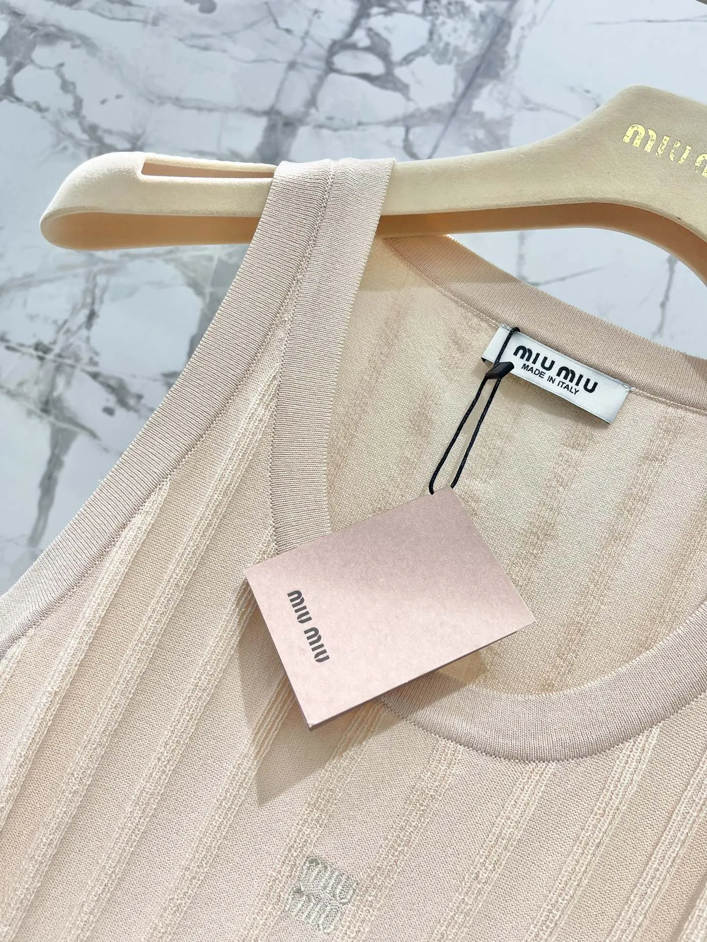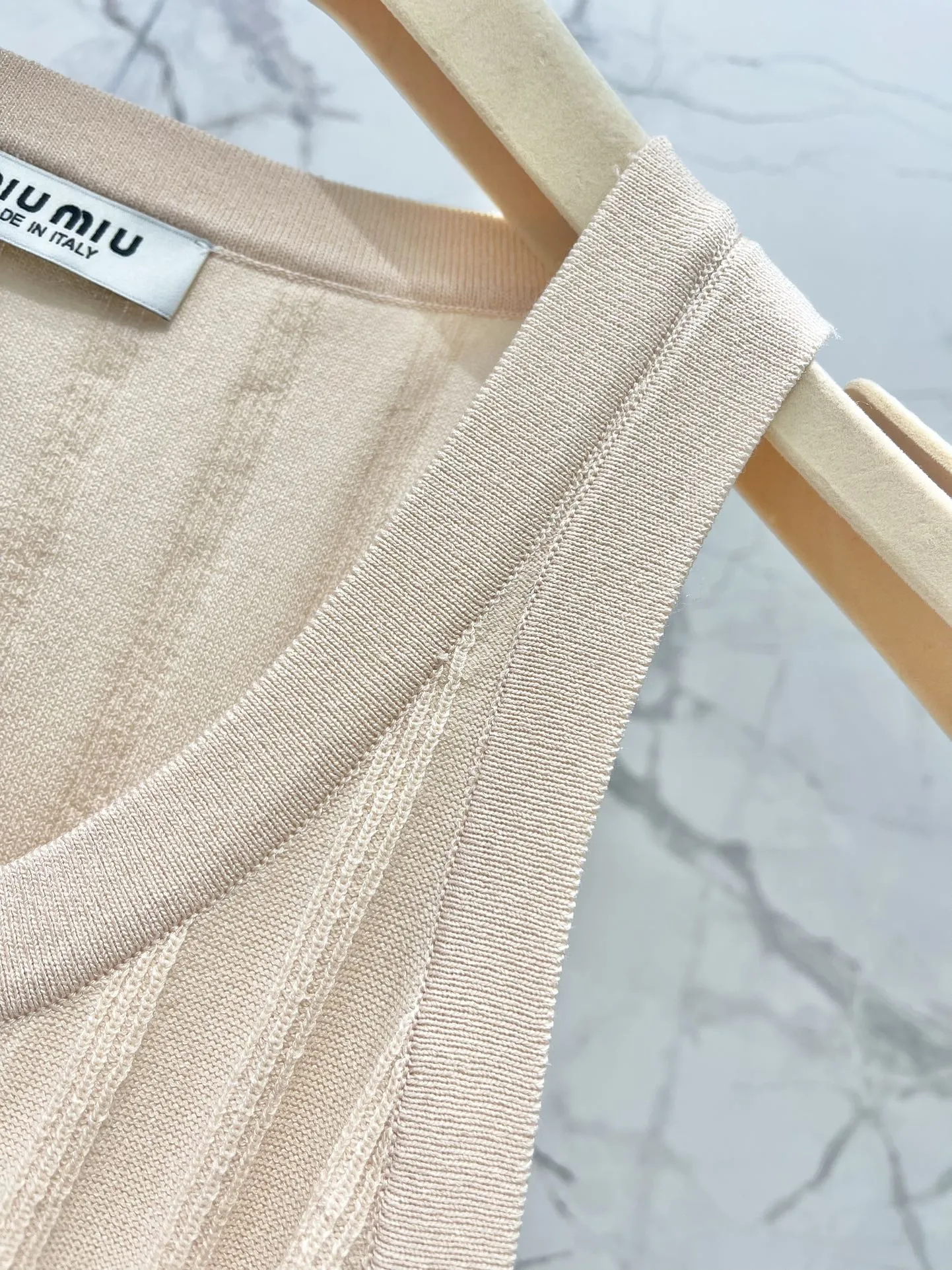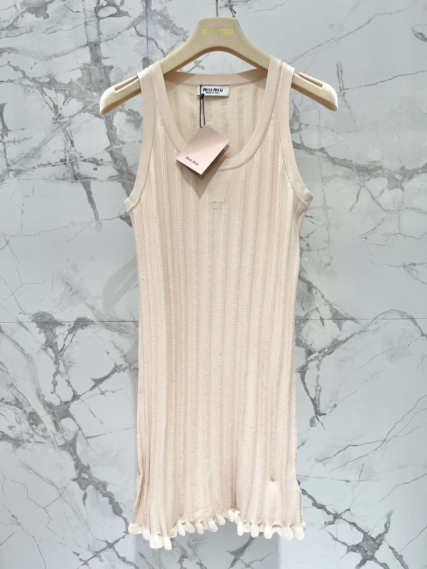 Miu Miu 24春夏新款ベージュUネックニットドレス