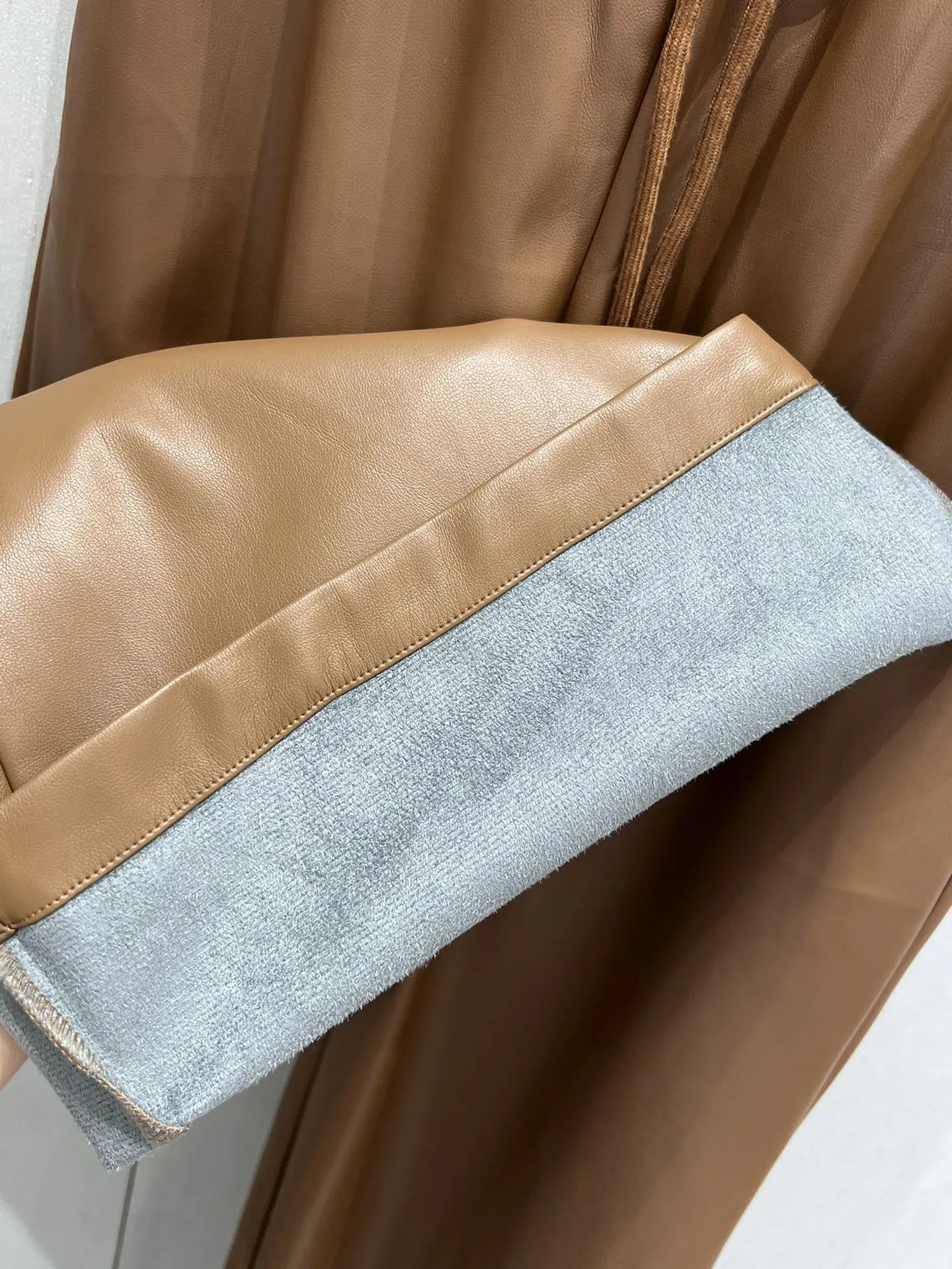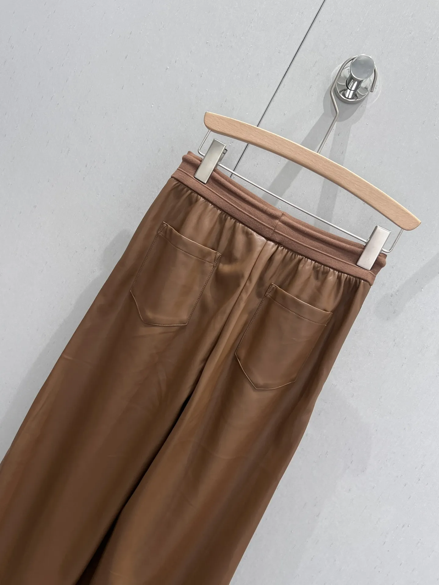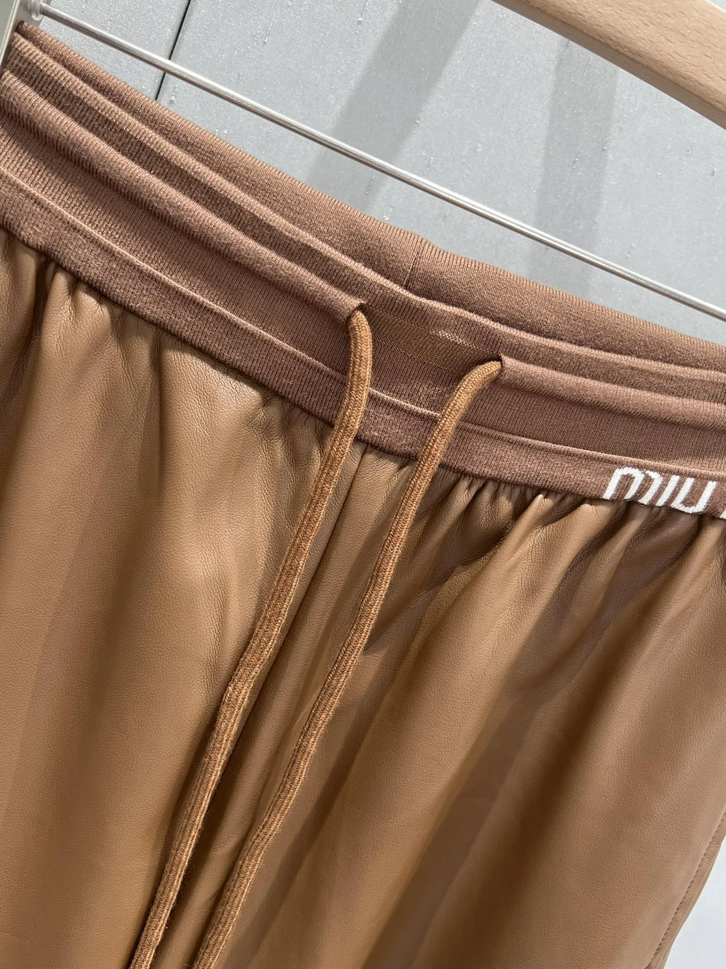 Miu Miuの24fw秋冬新作、茶色のカジュアルワイドパンツです。微標提花デザインの休閑な皮 pantsで、抽 rope松緊織帯が付いており、包容性が良いです。クラシックで万能なデザインで、甘辛どちらも対応可能。高級感のある着こなしが楽しめます。小仙女たちにぴったりのアイテムで、スーパーコピー優良サイトでも注目されています。