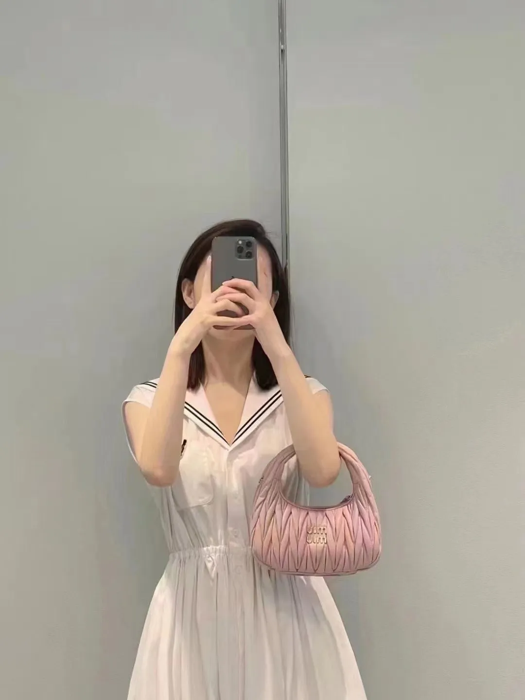 ミウミウの2023春夏新作、ホワイトの海軍襟ドレスです。ウエストを絞ったデザインがスタイルを引き立て、肩幅を広く見せることでスリムに見えます。中長丈のシャツドレスはクラシカルな雰囲気を持ちつつ、カレッジ風のテイストが特徴です。シンプルでありながらも洗練された一着で、様々なシーンで活躍します。類似品に注意しながら、本物を見極めることが大切です。気になる方は、スーパー コピー 優良 サイトで詳細を確認してみてください。