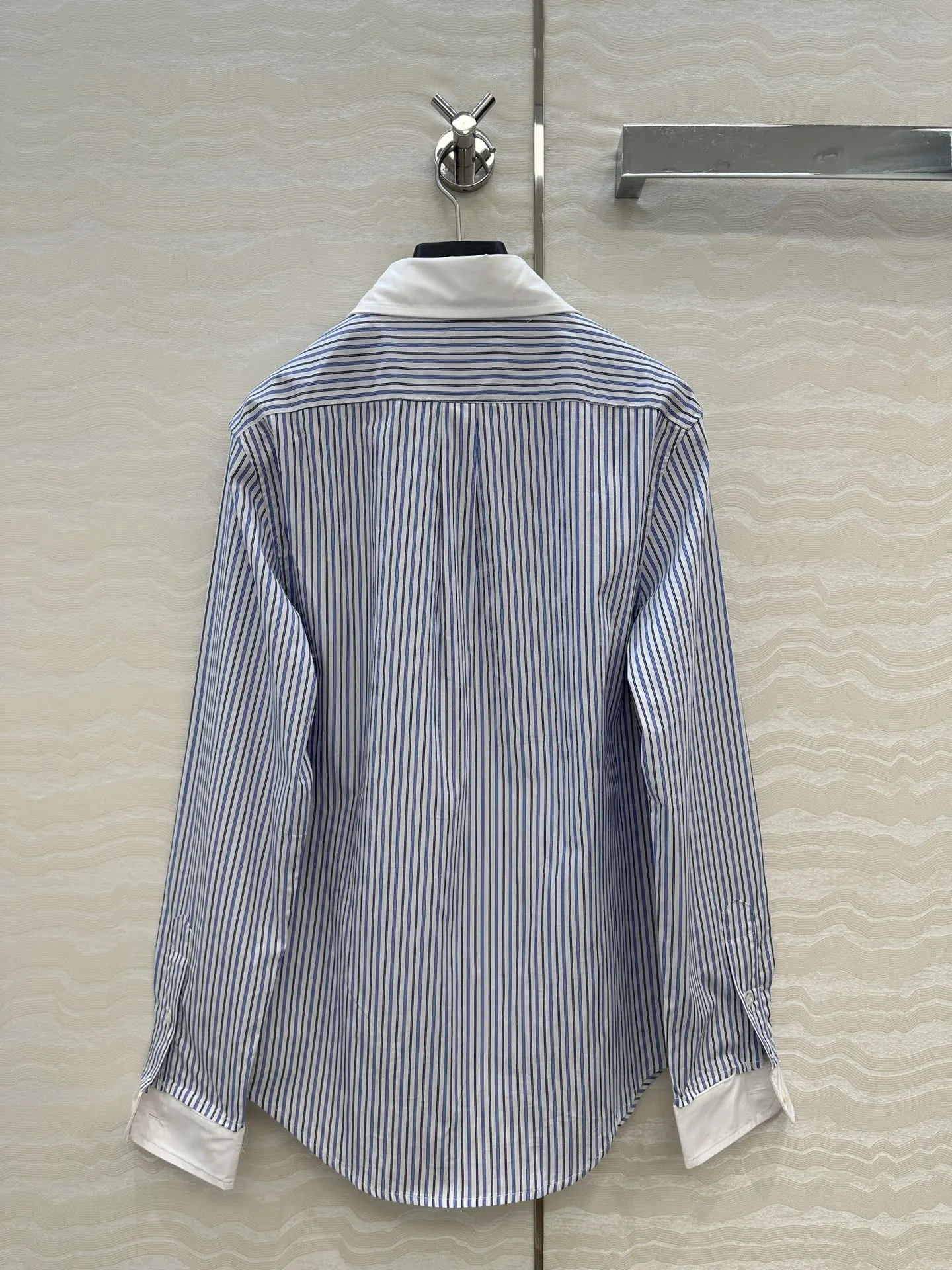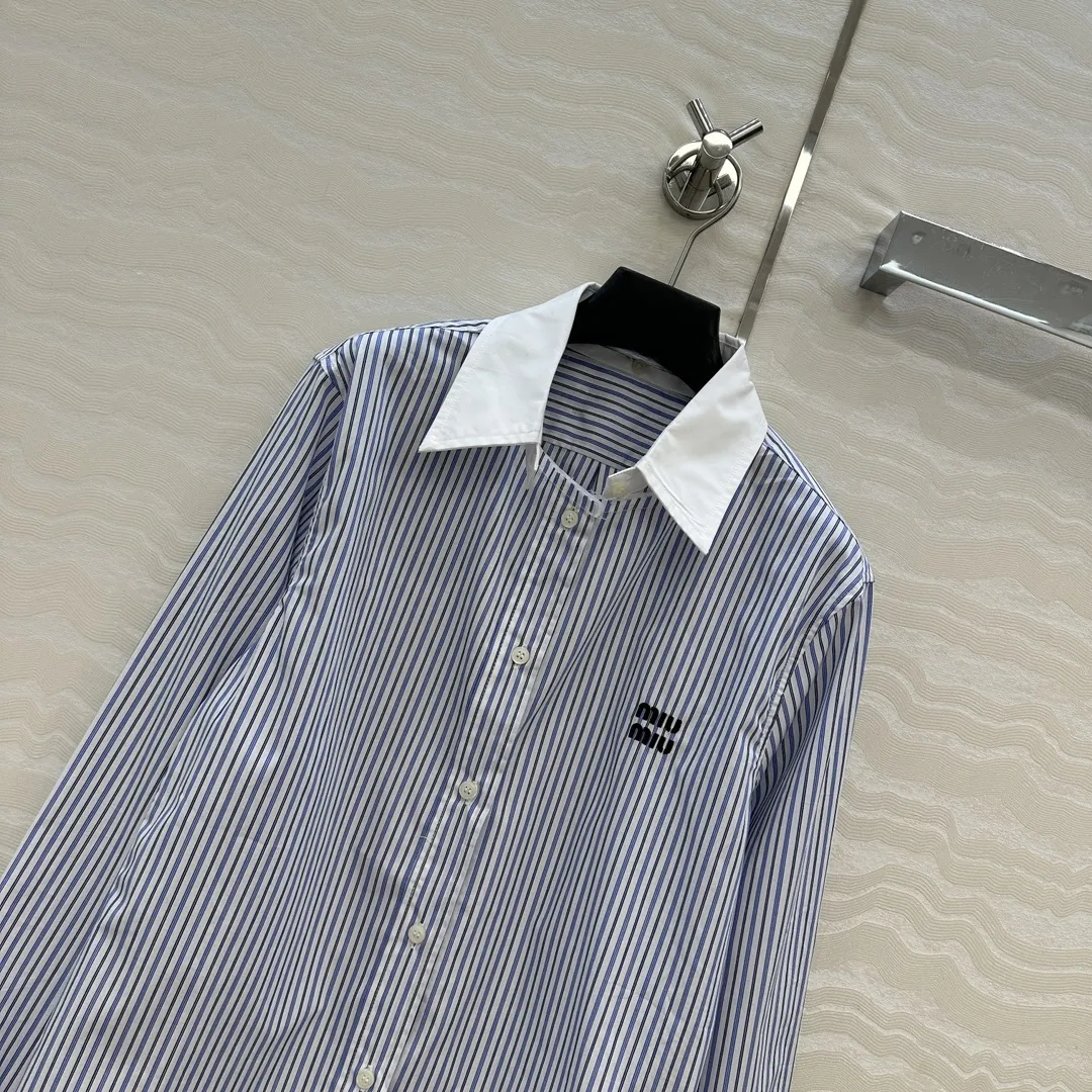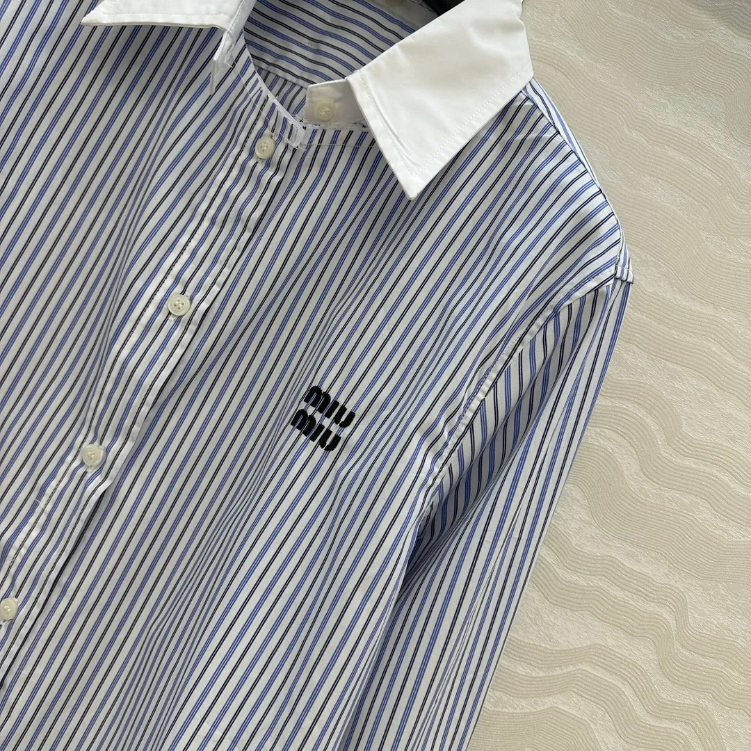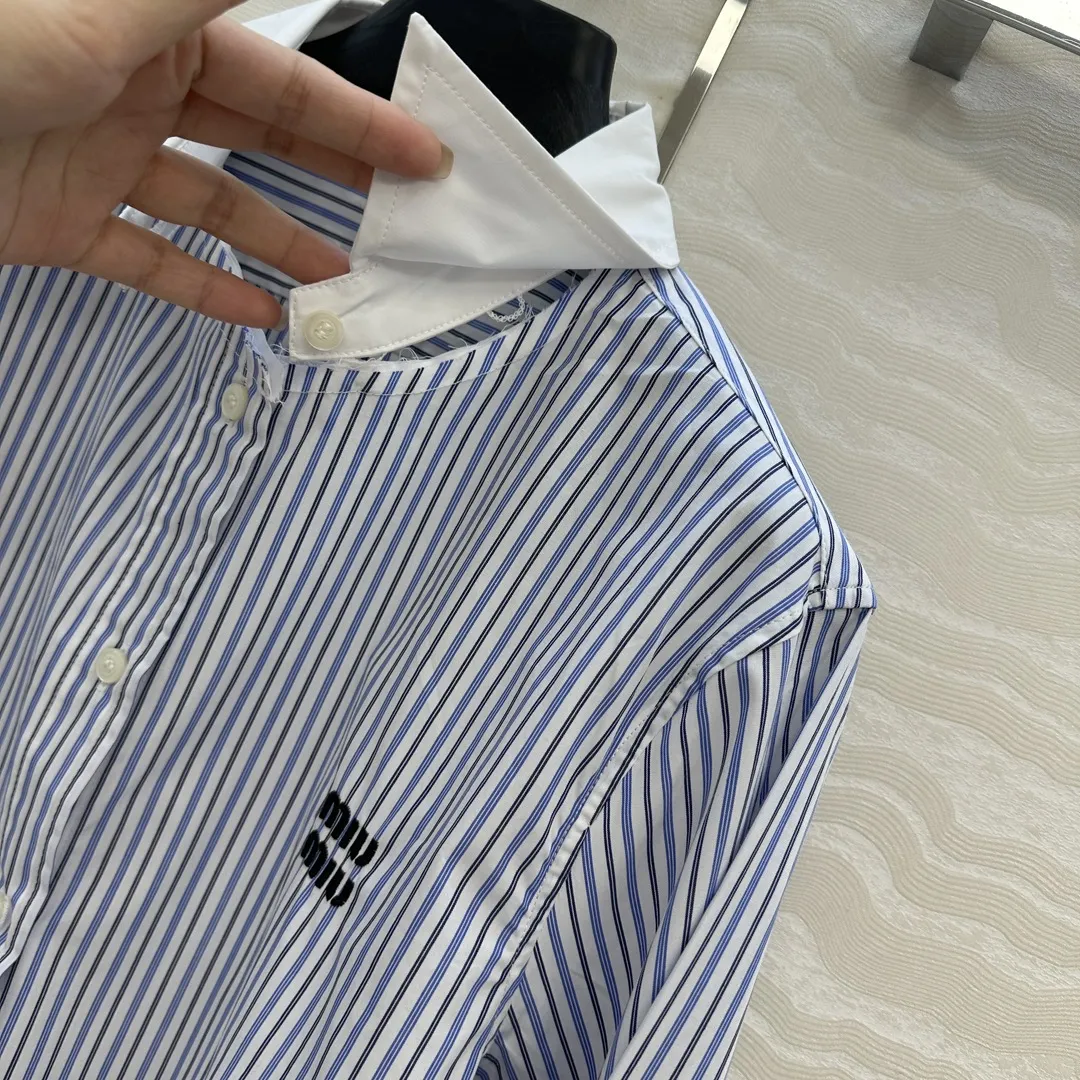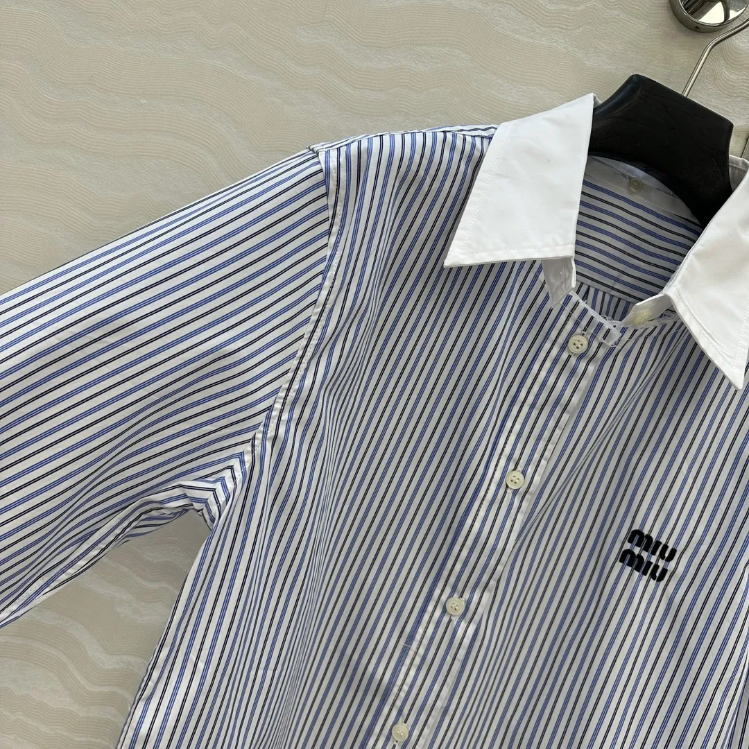 Miu Miu 青ストライプカレッジスタイルシャツ