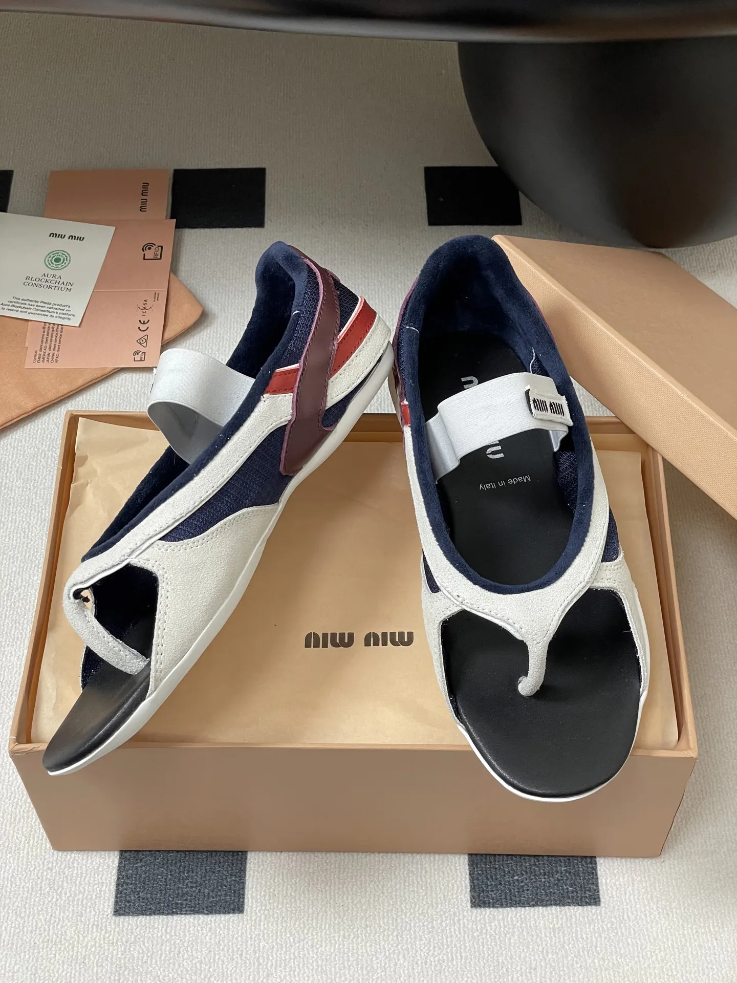 Miu Miu 新作メアリージェーンバレエフラットサンダル白青赤