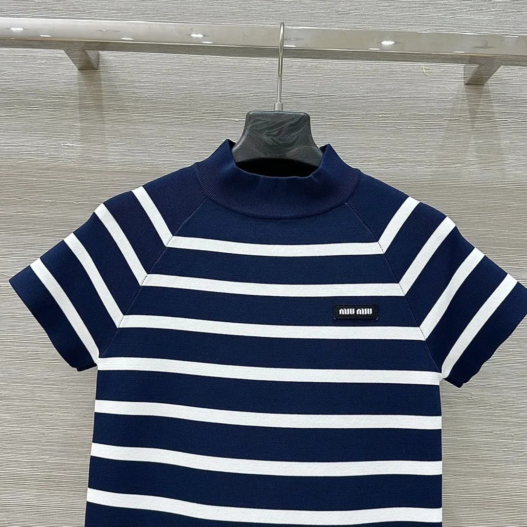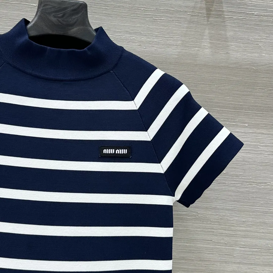 Miu Miu 2025新作海軍風ストライプTシャツ