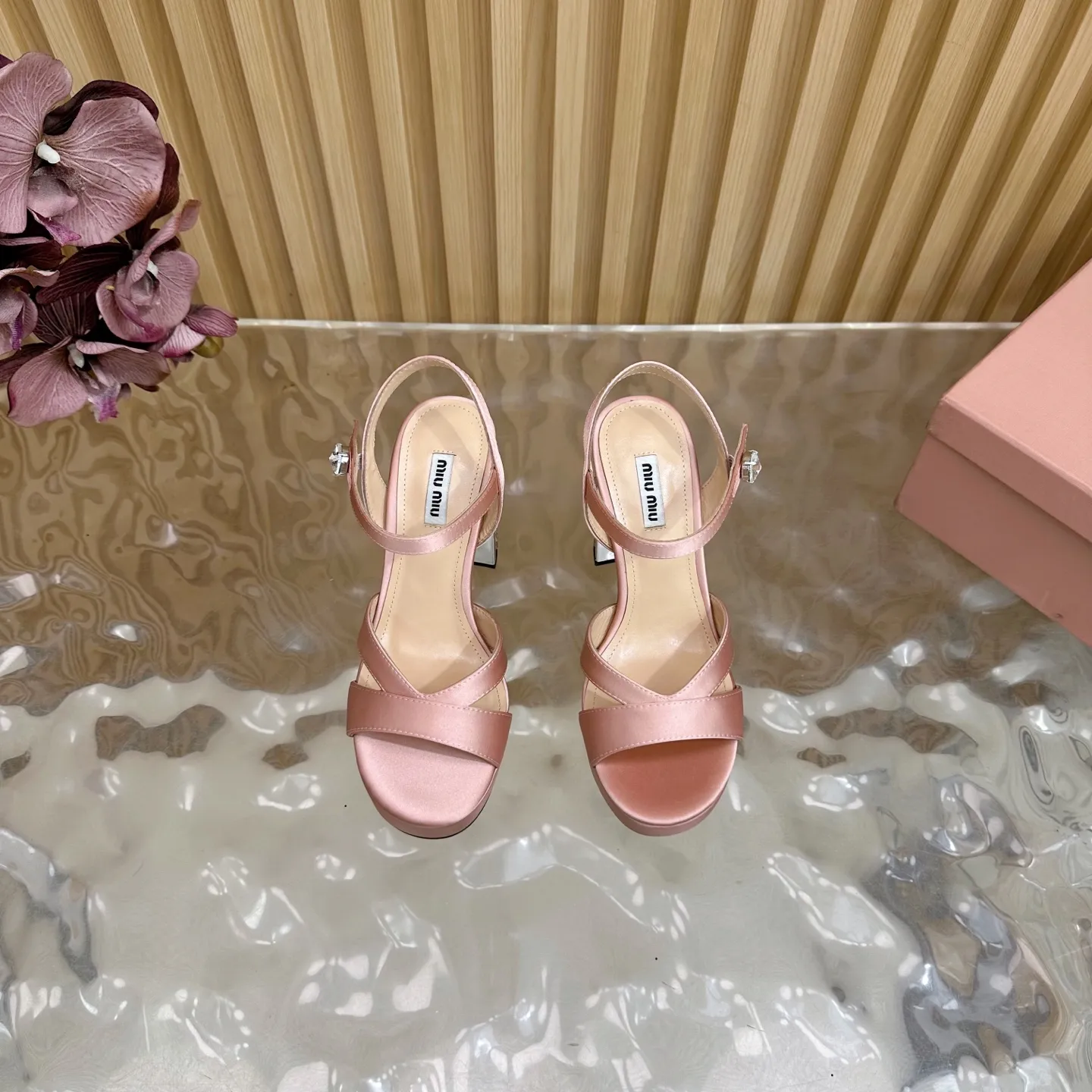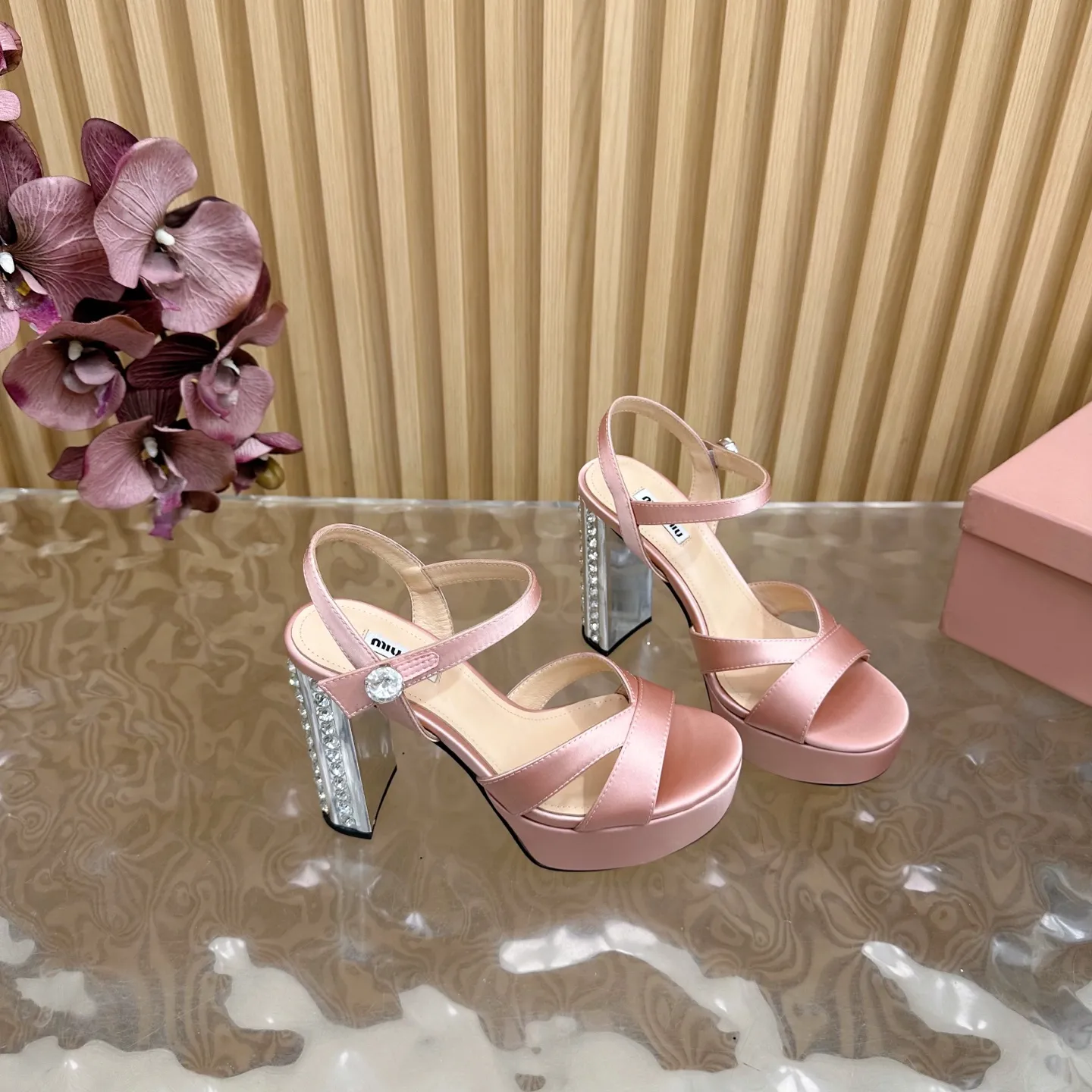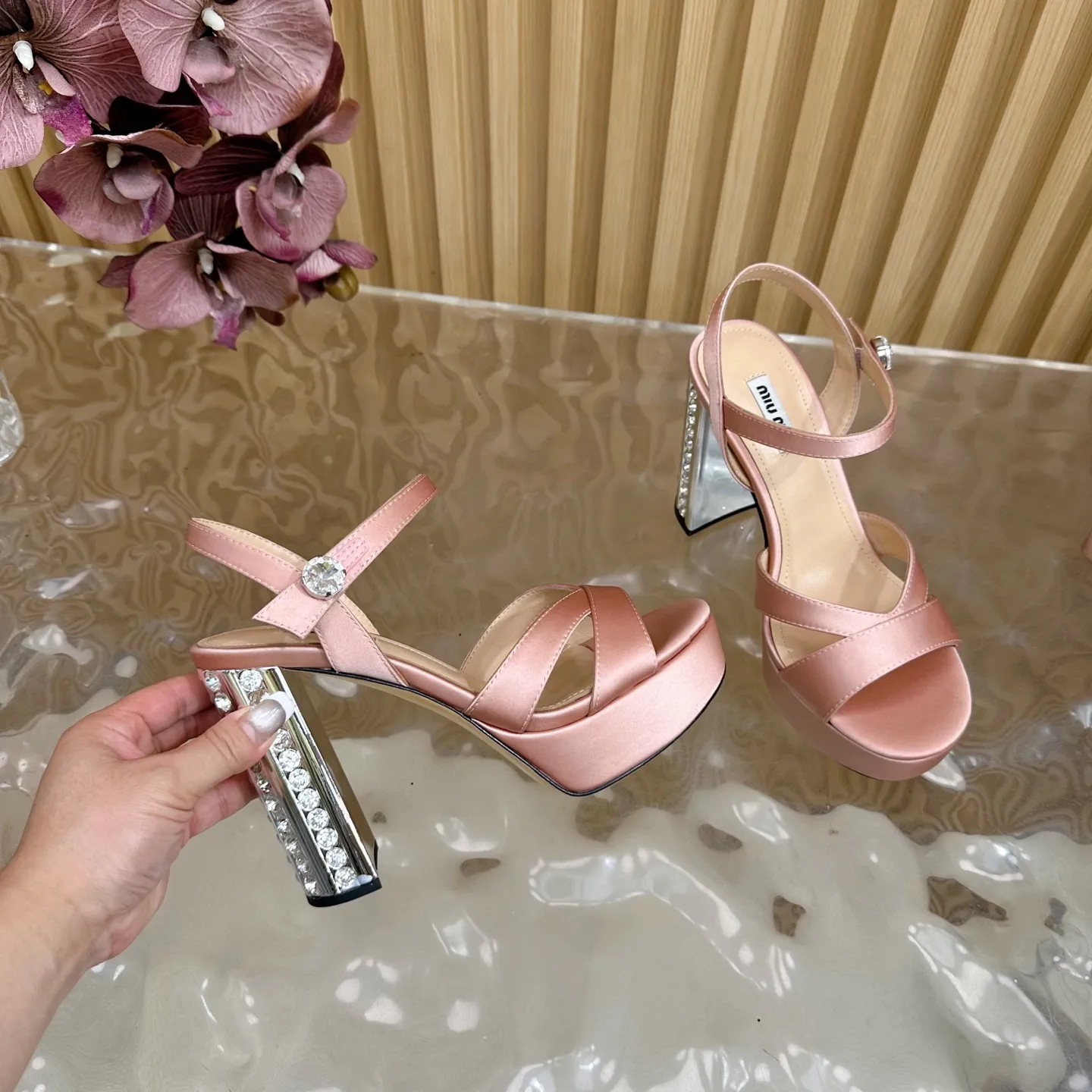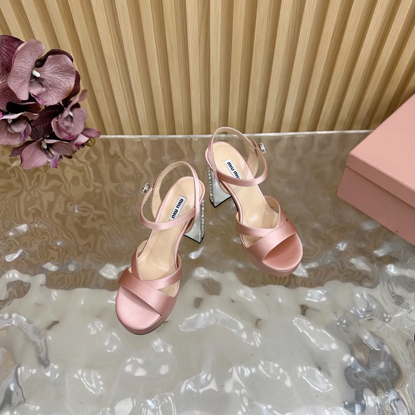 Miu Miu新作ピンクハイヒールサンダル水プラットフォーム