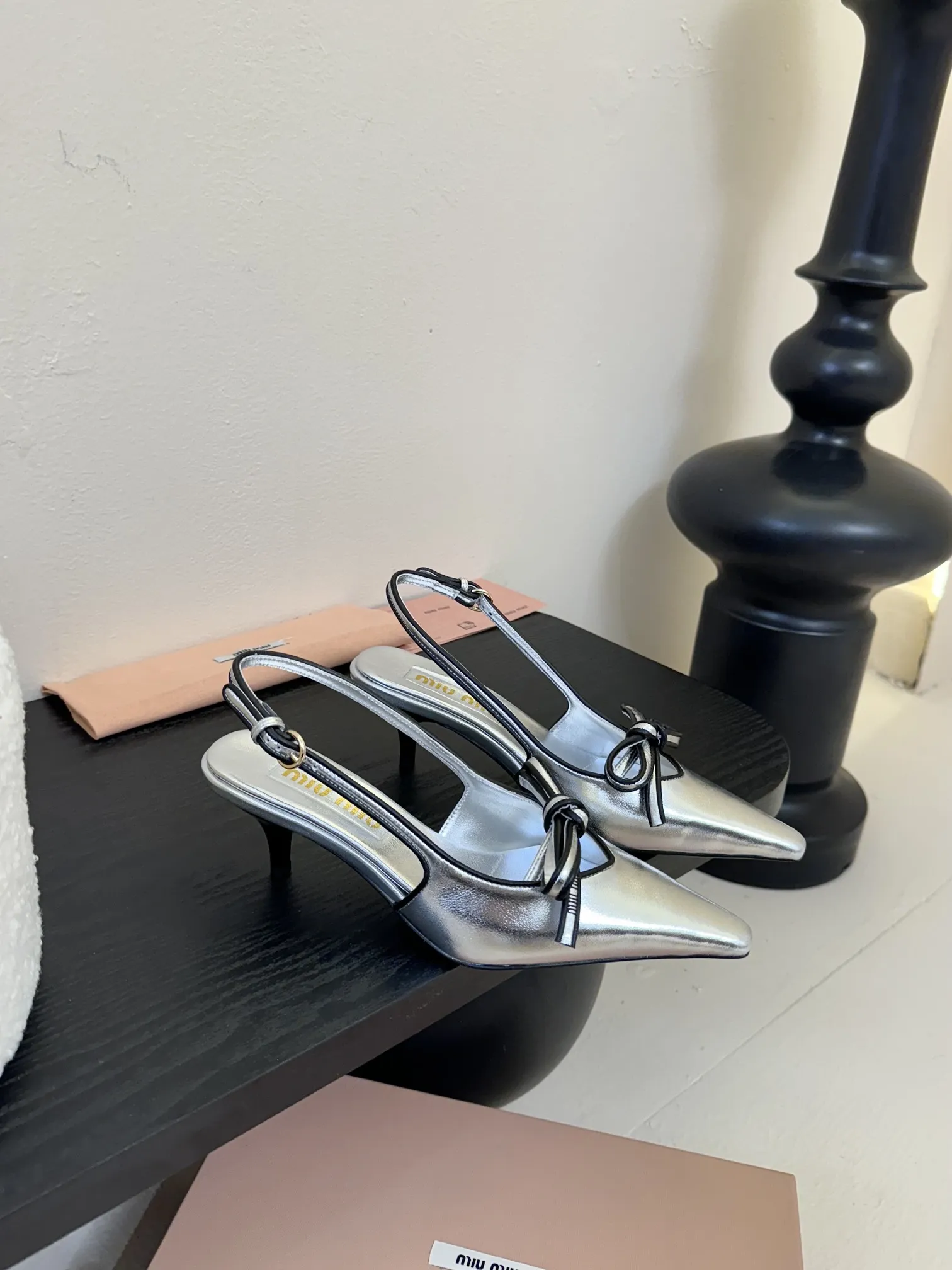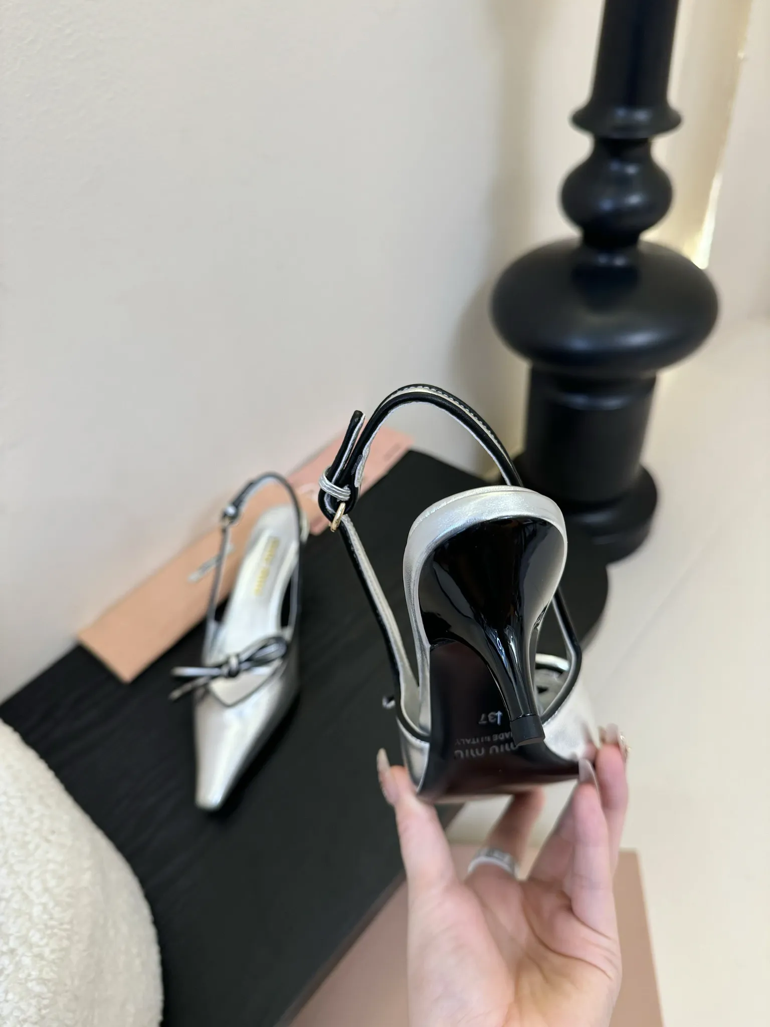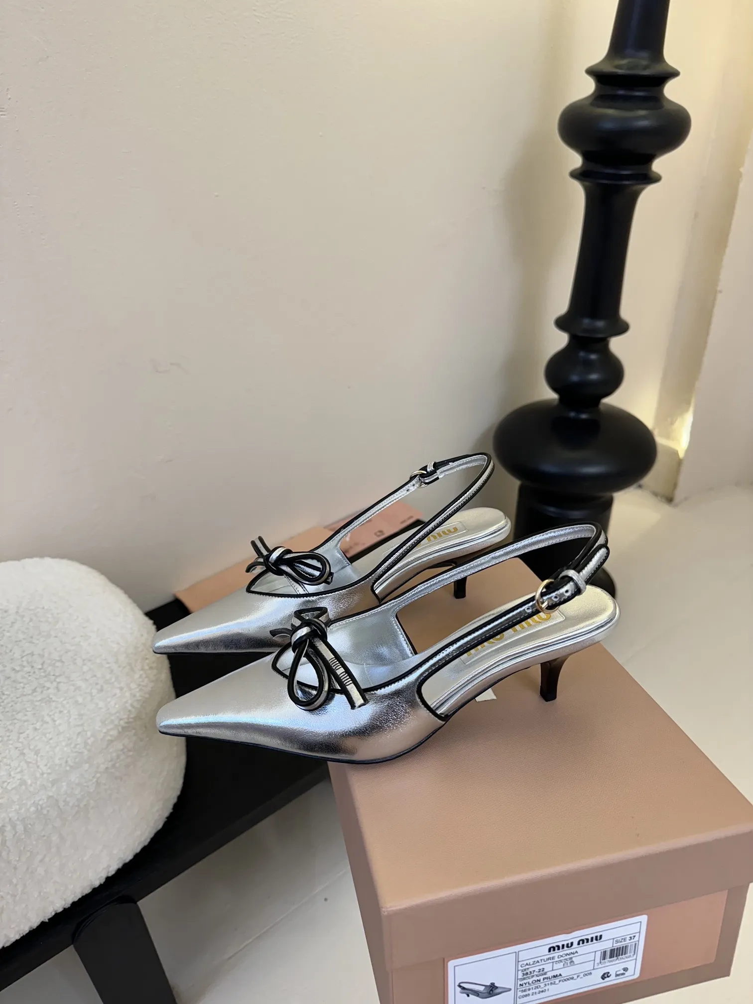 Miu Miu新作レトロハイヒールサンダルシルバー