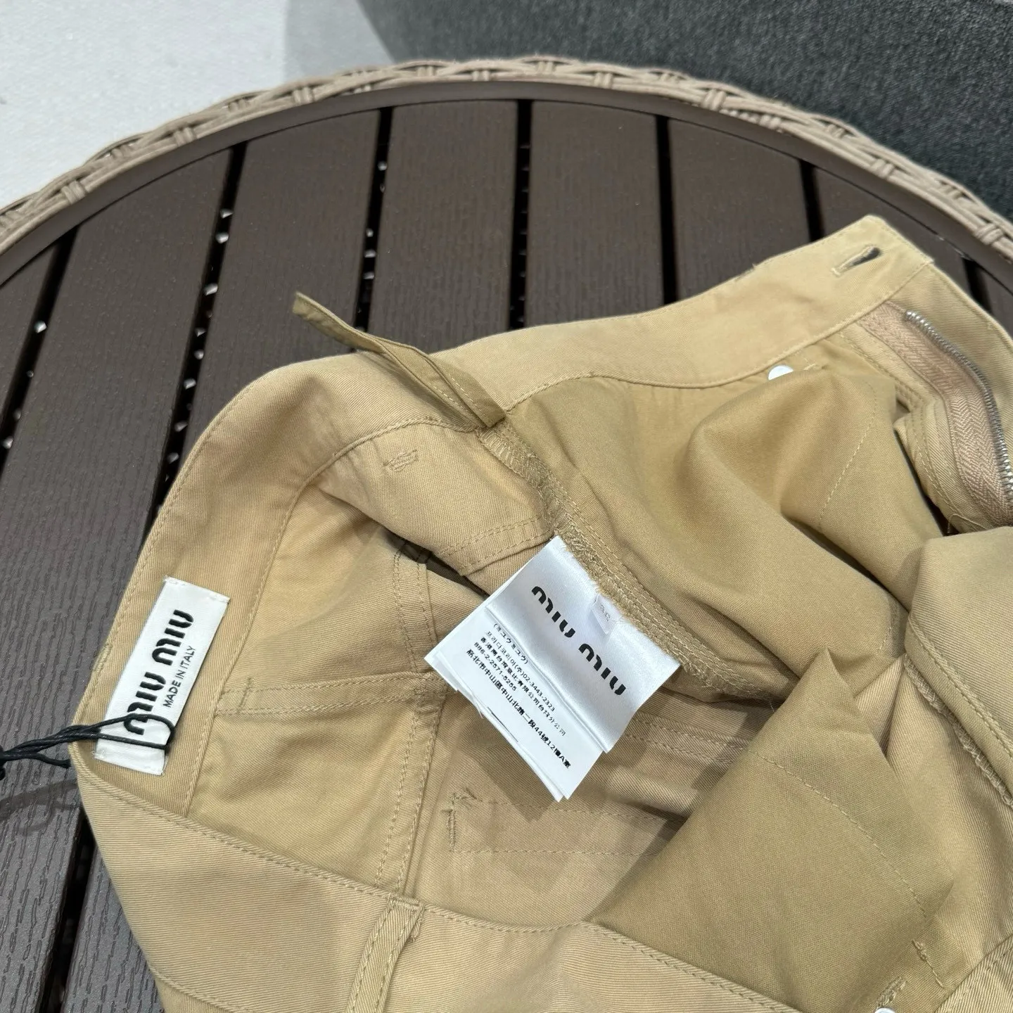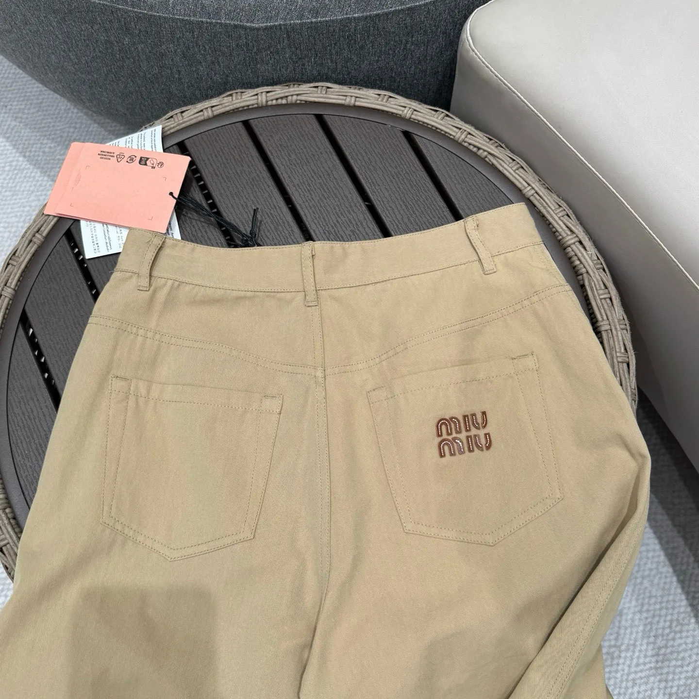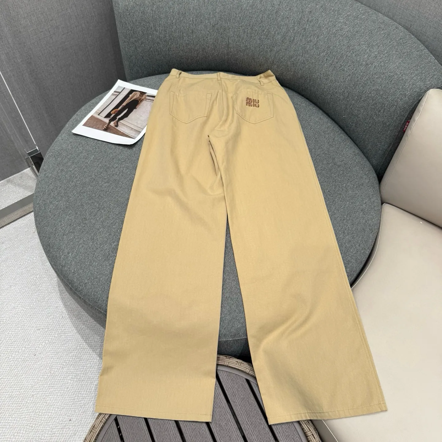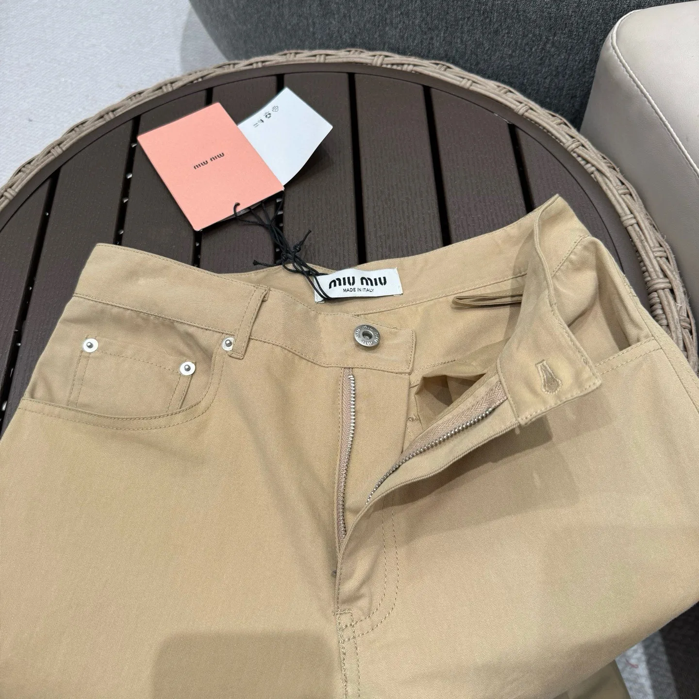 ミウミウの早秋新作、カーキ色の直筒長ズボンです。高品質なコットン素材を使用し、滑らかで型崩れしにくい質感が特徴です。中高ウエストのデザインで、直線シルエットが脚を長く細く見せます。後ろポケットにはレザーロゴパッチが付いており、スタイリッシュなアクセントに。普段使いから通勤まで、様々なシーンで活躍する一品です。類似品に注意しながら、本物を選ぶことが大切です。詳細は偽物に関する情報をご確認ください。