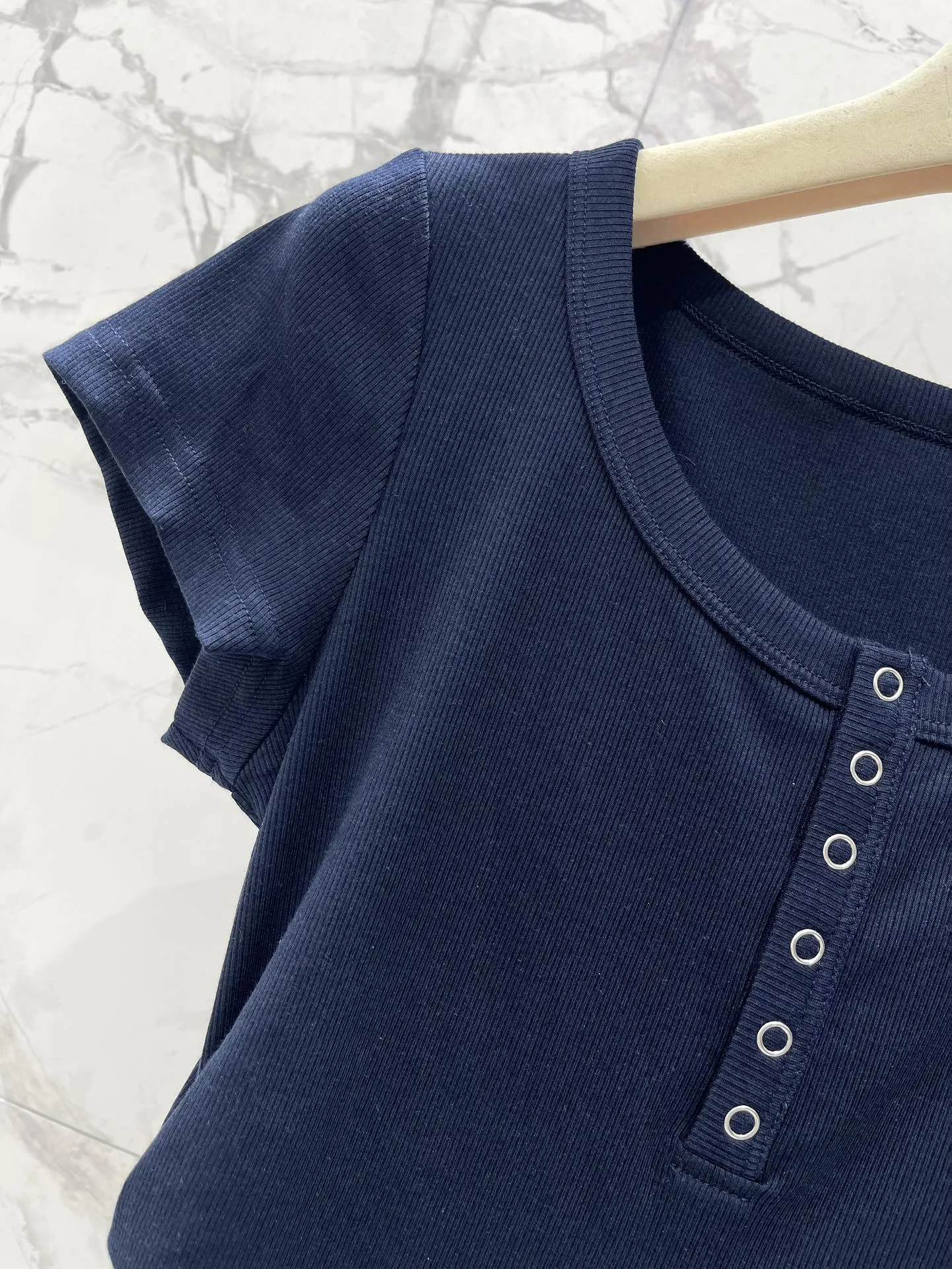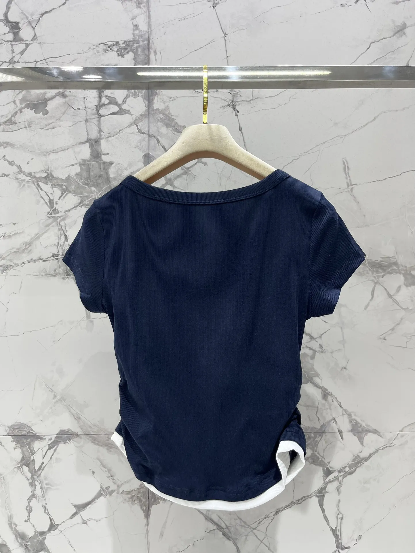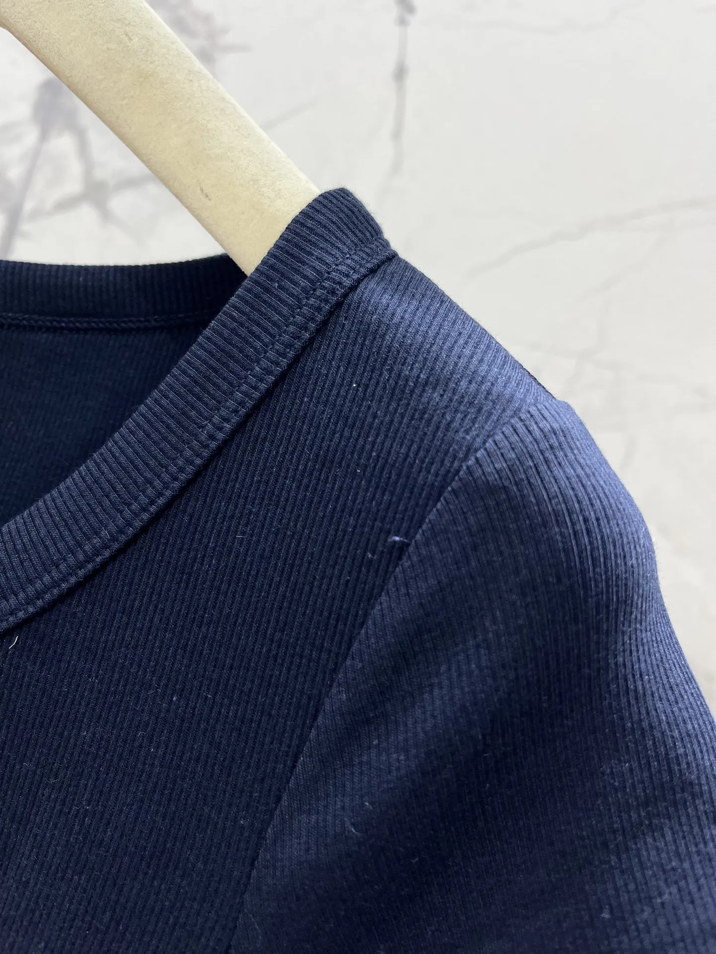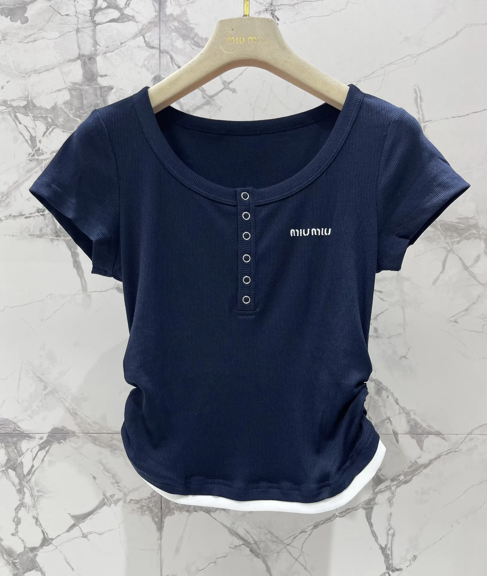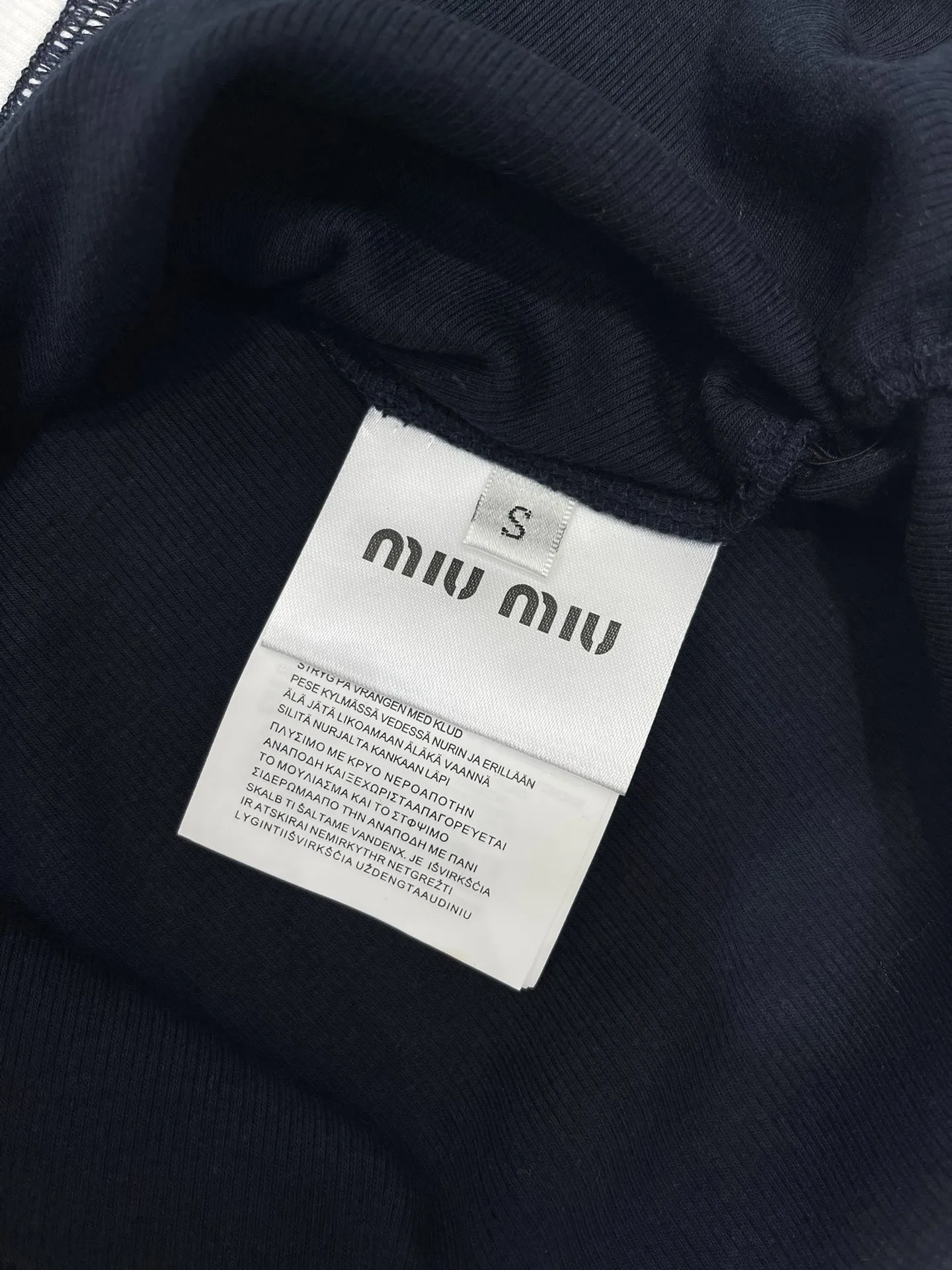 Miu Miu 新作ネイビーブルーポロ半袖Tシャツ