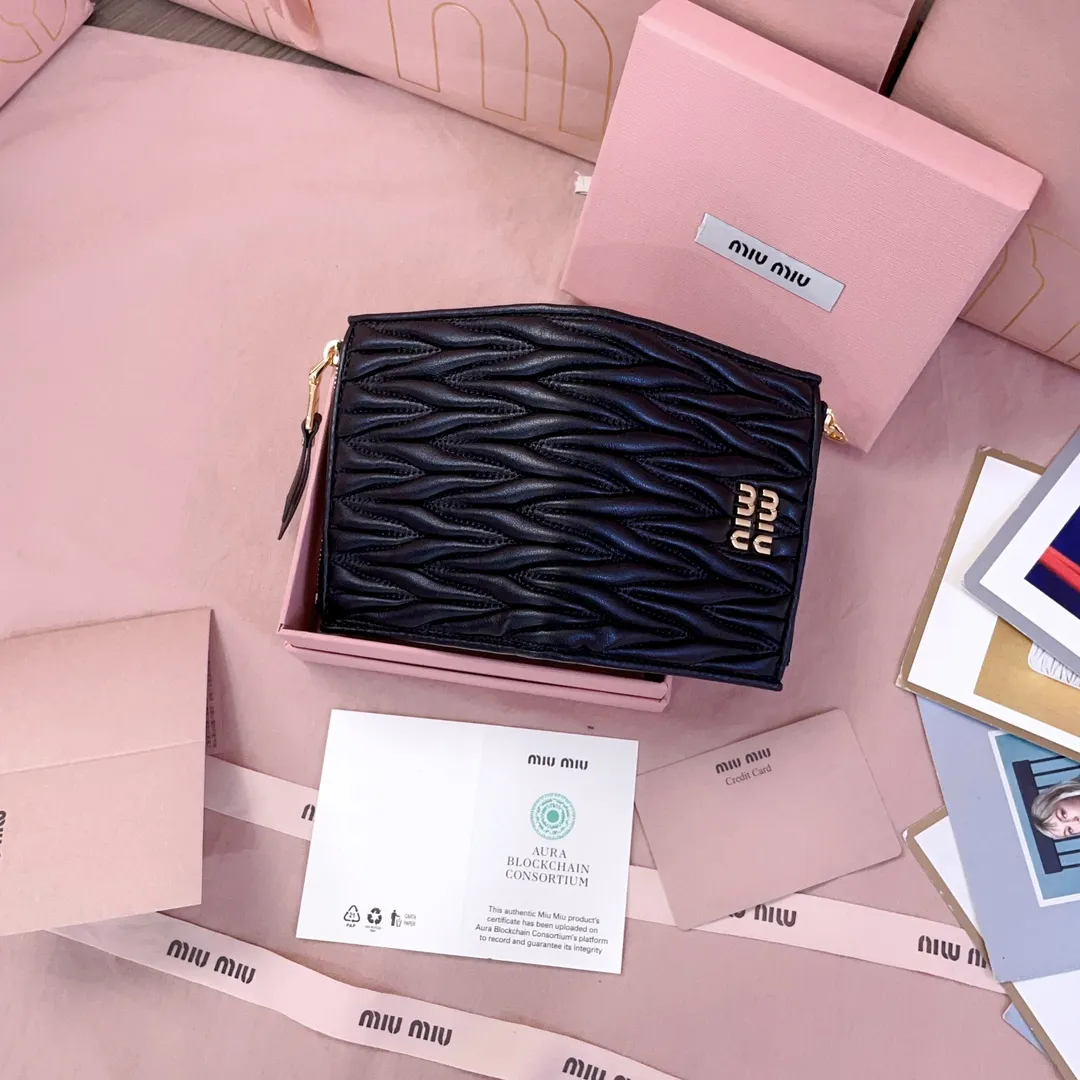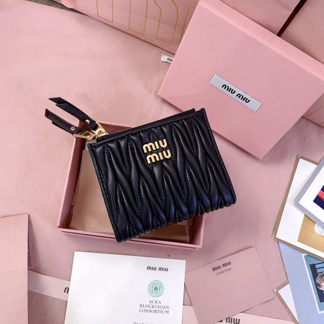 ミュウミュウ ポケットウォレット 5MV017 ブラックレザー