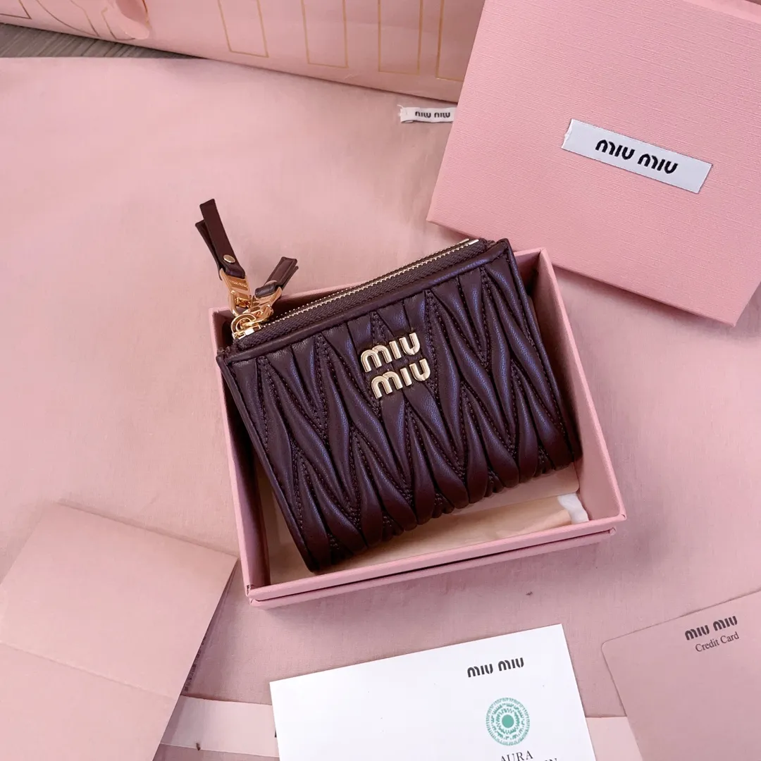 ミュウミュウ ポケットウォレット 5MV017(ブラウンキルティング)は、ブランドから新たに登場したラグジュアリーな新作です。最高級輸入ラムスキンレザーを使用し、洗練されたキルティングデザインが特徴の二つ折り財布です。複数のカードスロットとジッパー付きデュアルコンパートメントを備え、198A紙幣、銀行カード、コインなど、必需品をたっぷり収納できます。コンパクトでありながら容量もたっぷりの 11.5 x 8 cm のこの財布は、エレガントさと実用性を兼ね備えており、財布 スーパー コピーとしての高い品質を感じさせる必需品となるアクセサリーです。