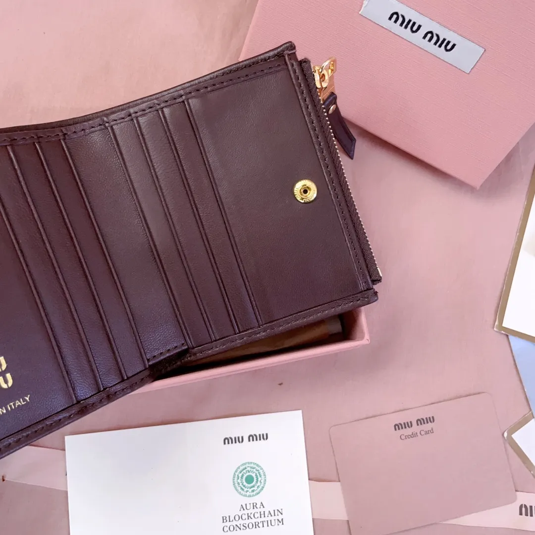 ミュウミュウ ウォレット ブラウンレザー コンパクト