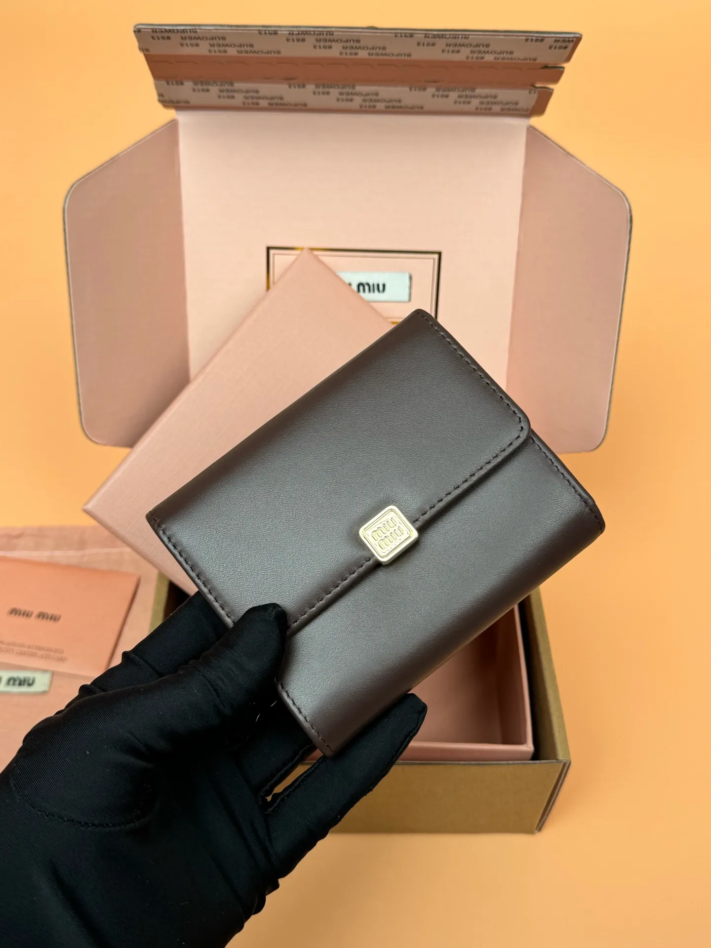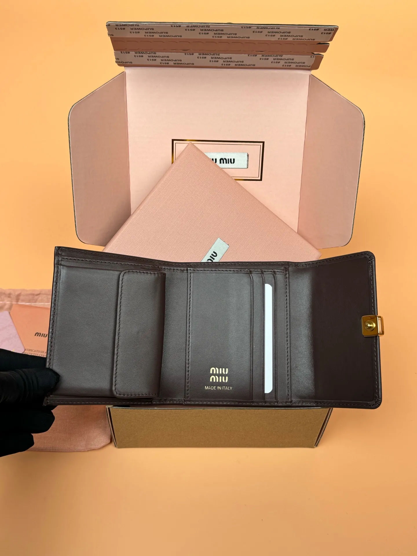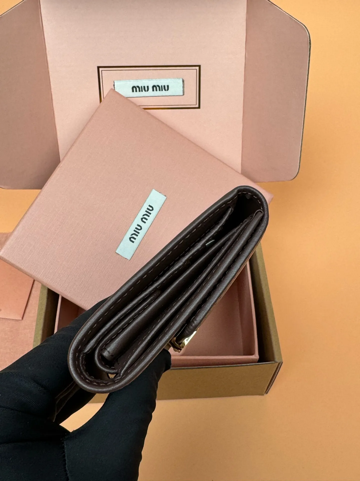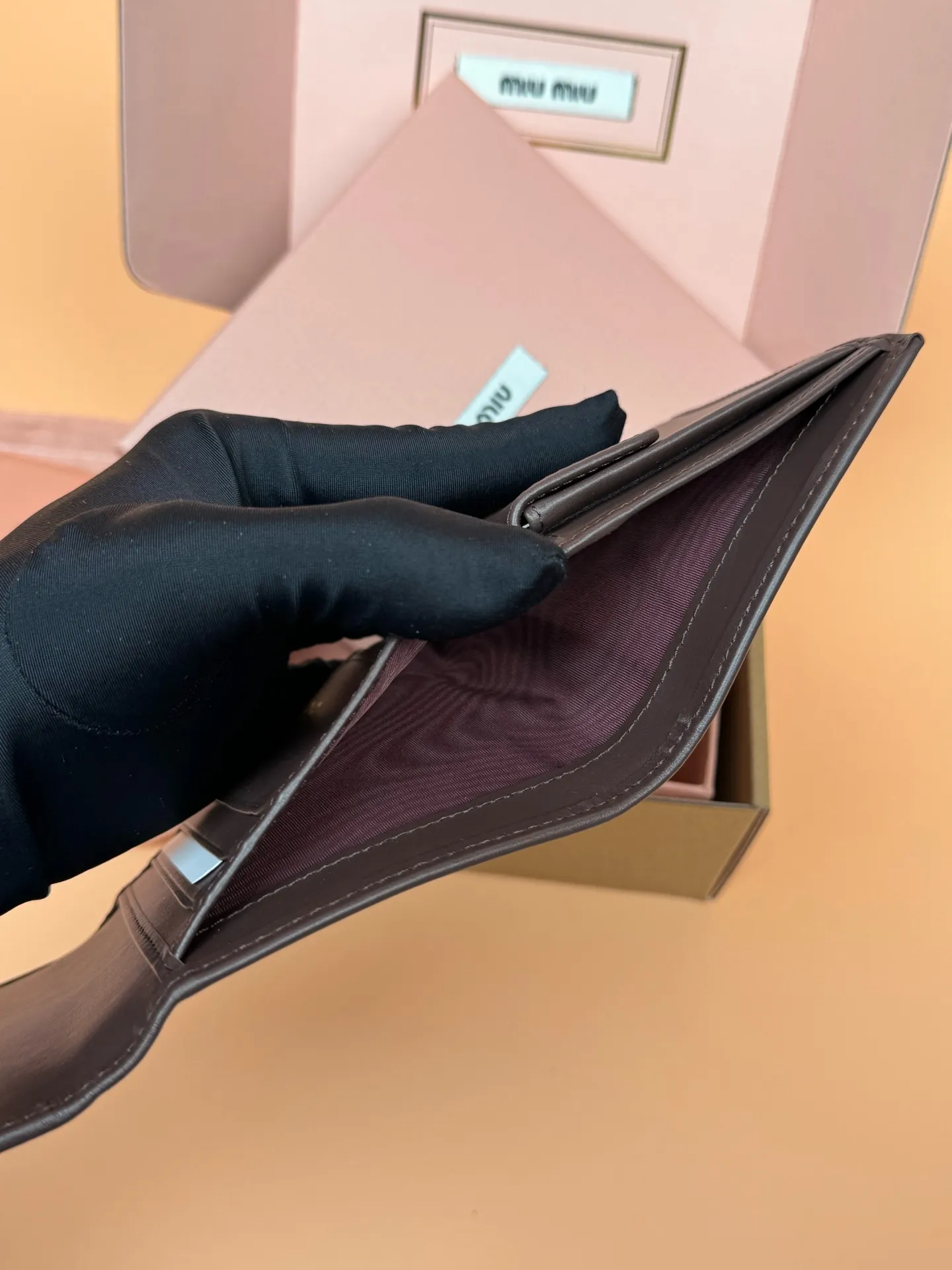 ミュウミュウ ウォレット ヘザーブラウン レザースタイル