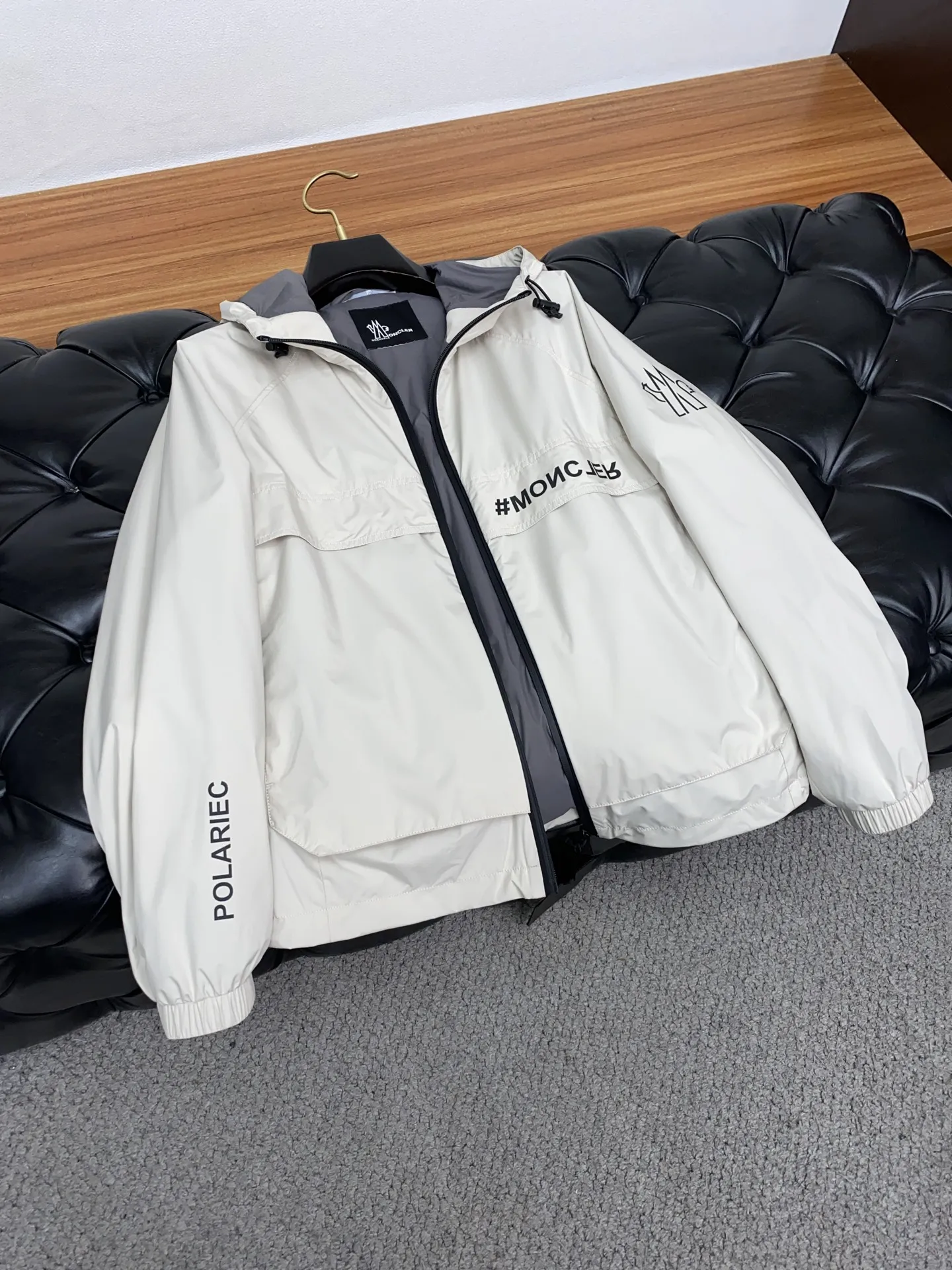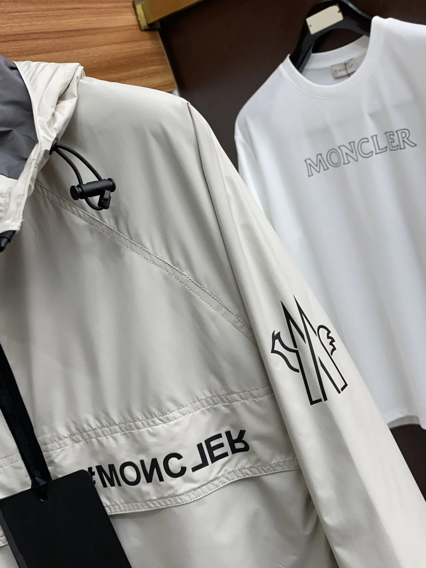 Moncler 新作早春刺繍入りフード付きホワイトカジュアルジャケット