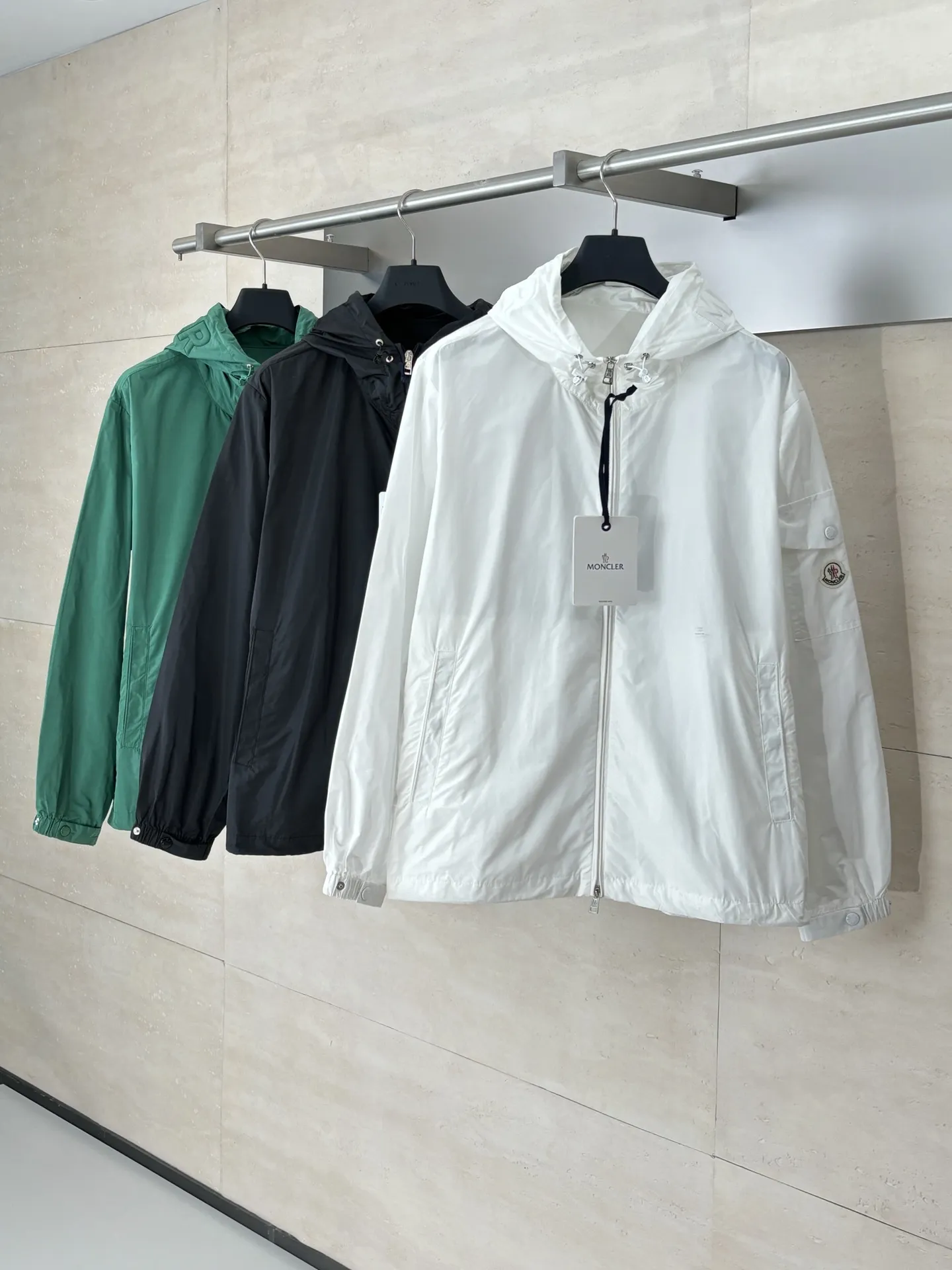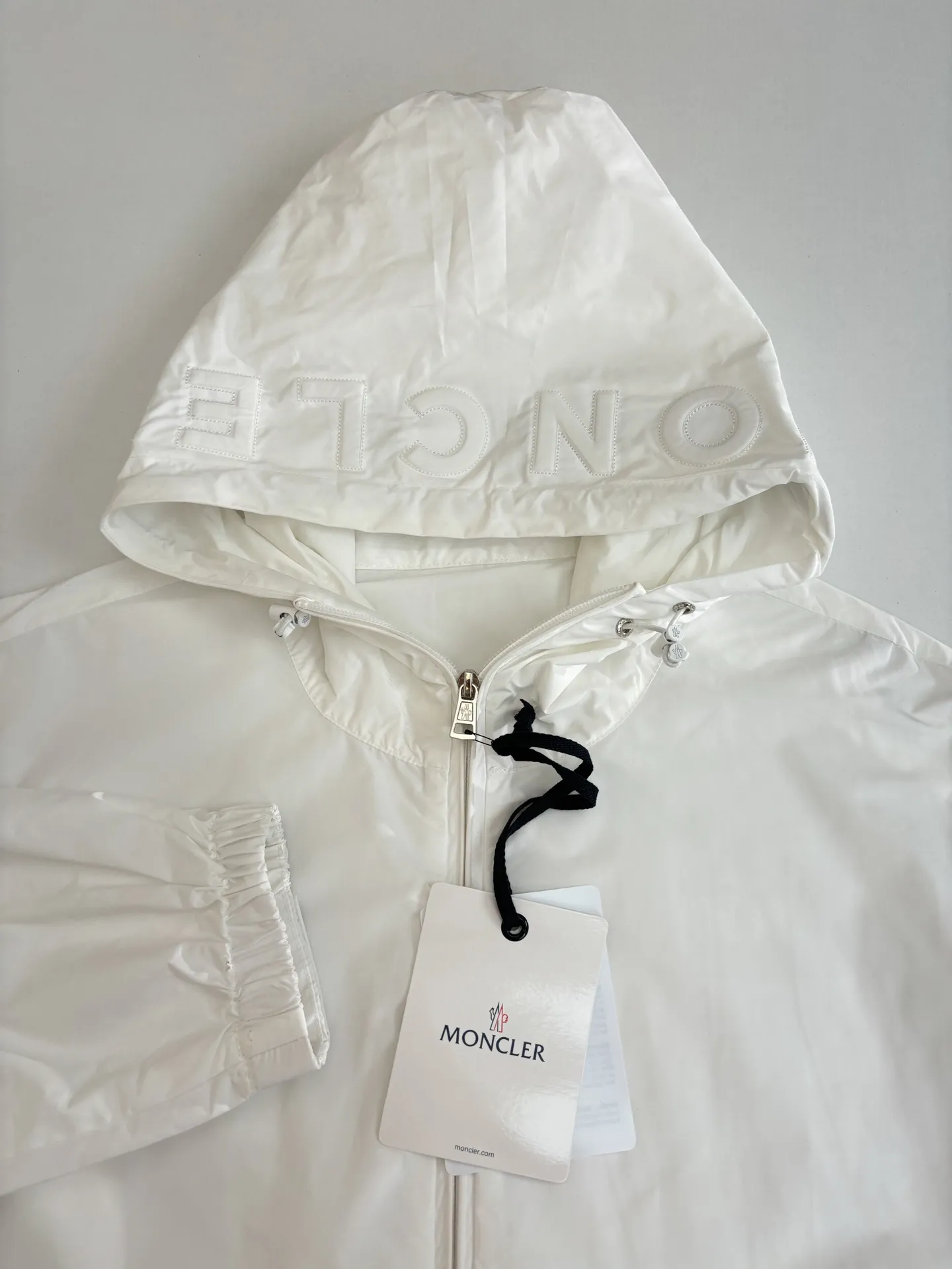 Moncler 新作早春刺繍入りフード付きホワイトカジュアルジャケット