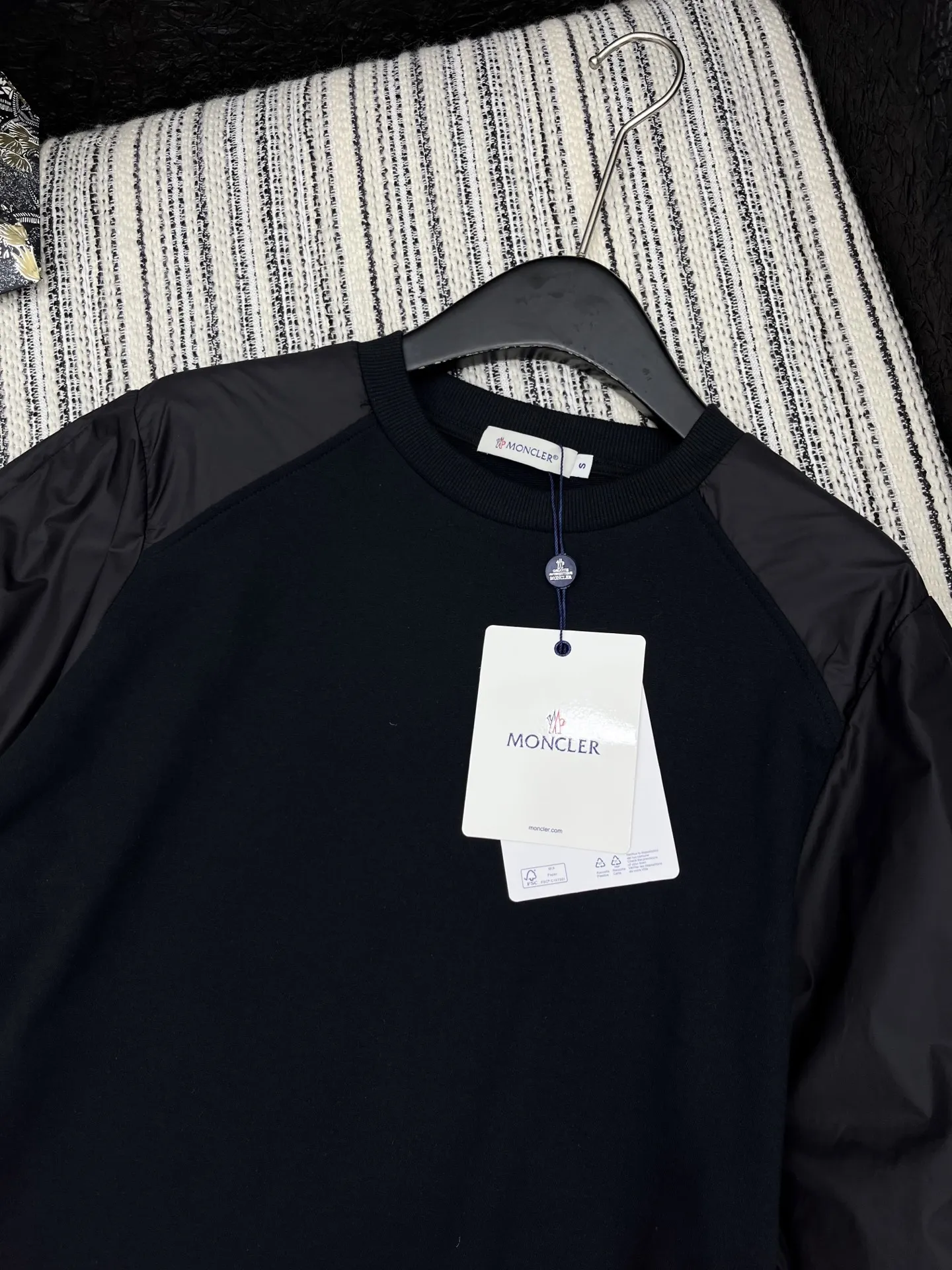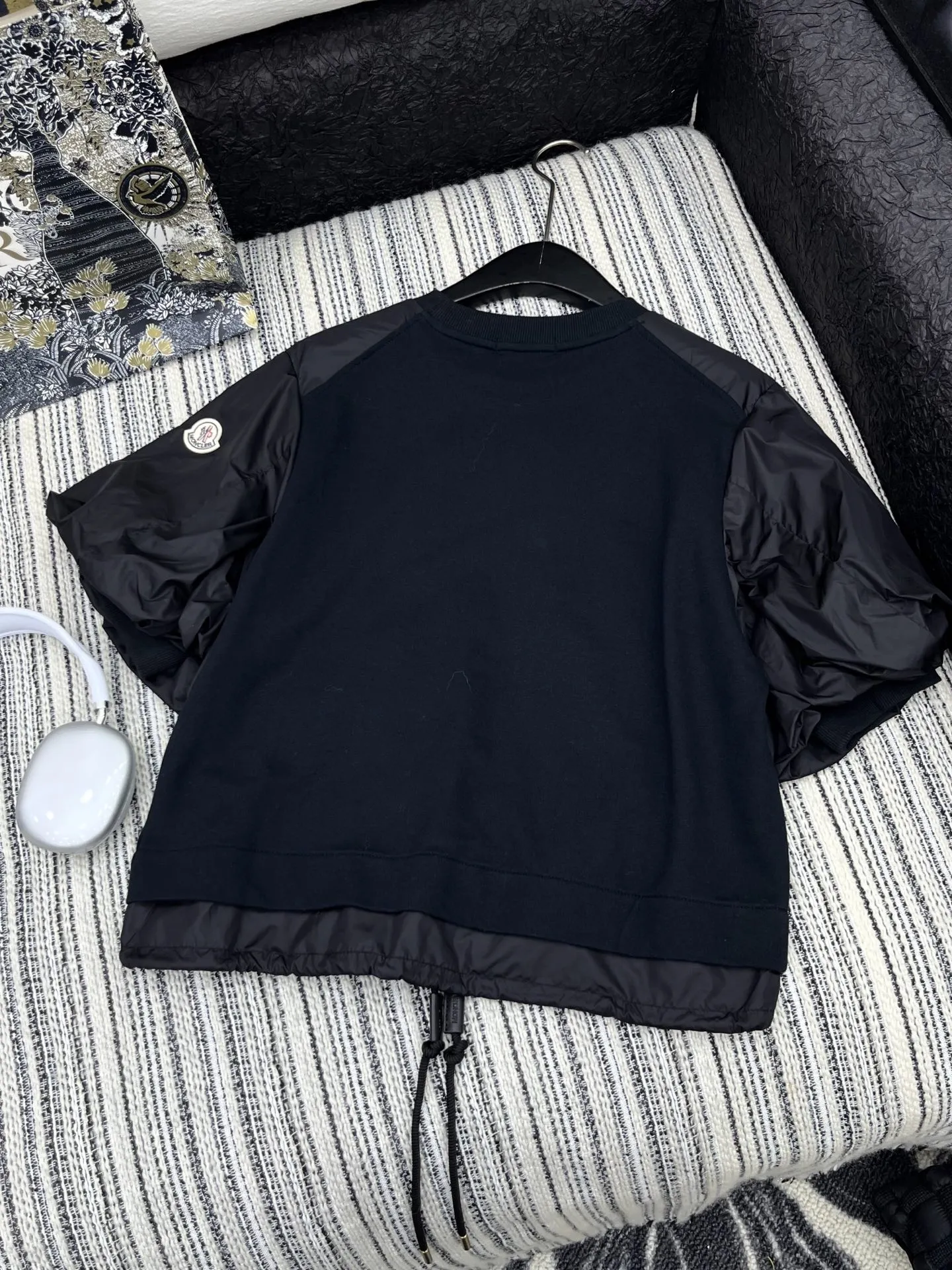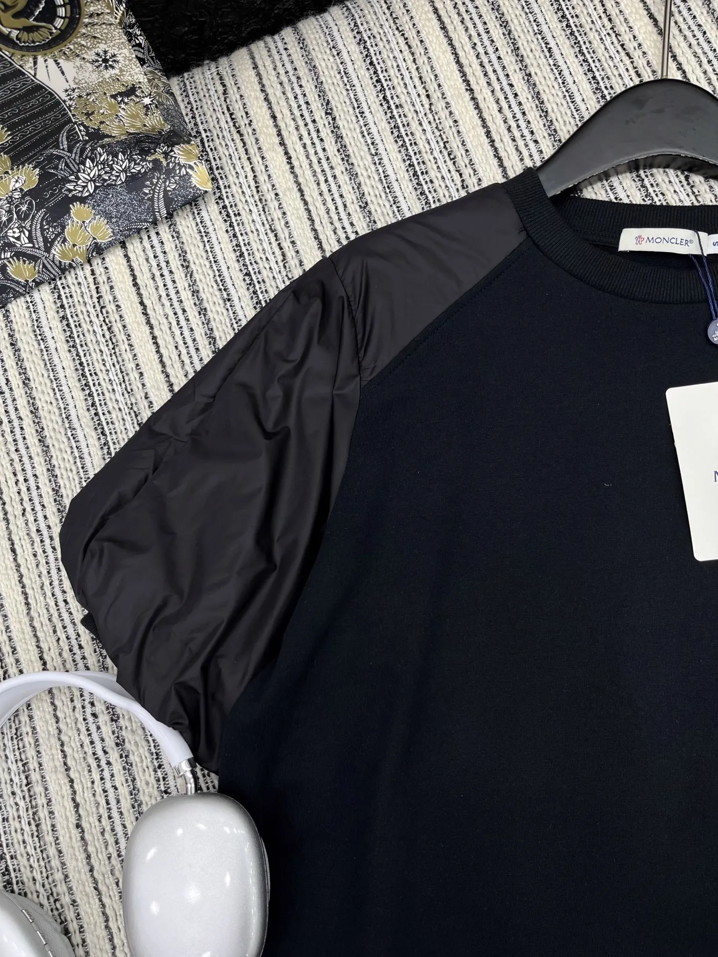 Monclerの2025年新作、黒色の抽縄付き短袖Tシャツです。精巧な色違いパッチワークと宮廷風のレトロな袖デザインが特徴で、上品な高級感を演出します。最新の刺繍ラベルが施され、1:1のカスタムメイドで仕上げられています。ファッショニスタ必須のアイテムで、クラシックなシルエットが誰でも簡単に着こなせる一着です。おしゃれなデザインのTシャツ スーパーコピーをお探しの方にもおすすめです。