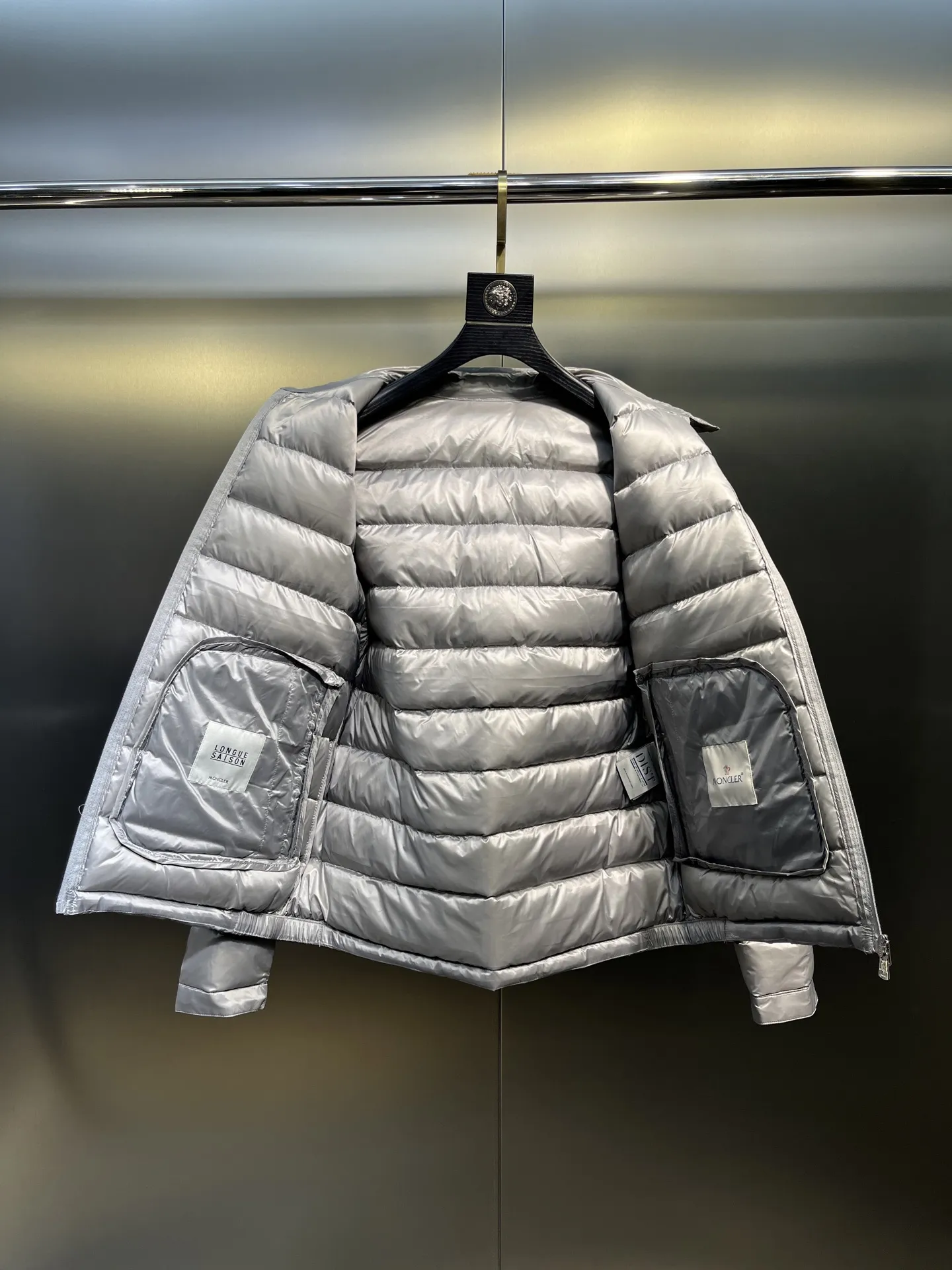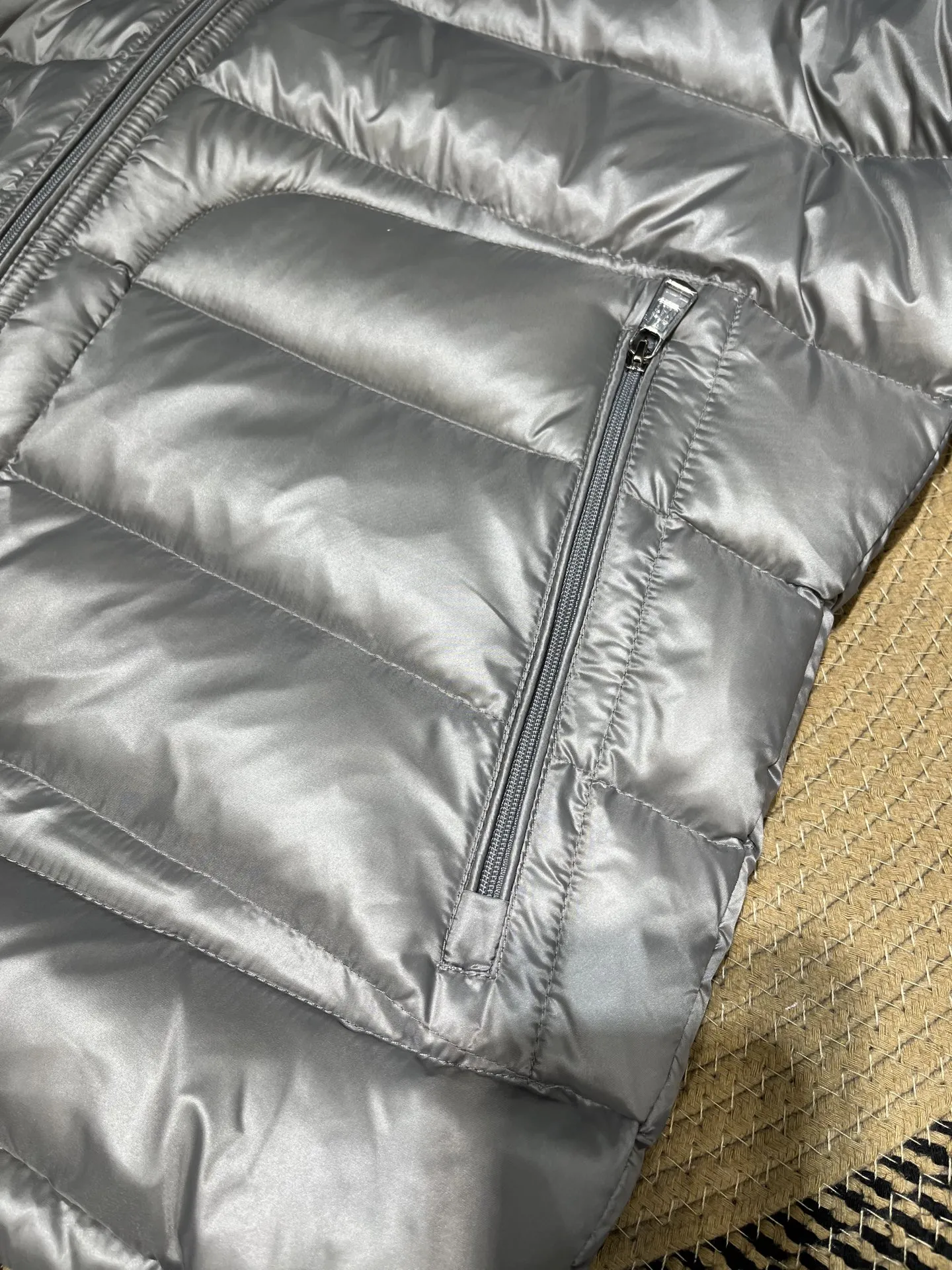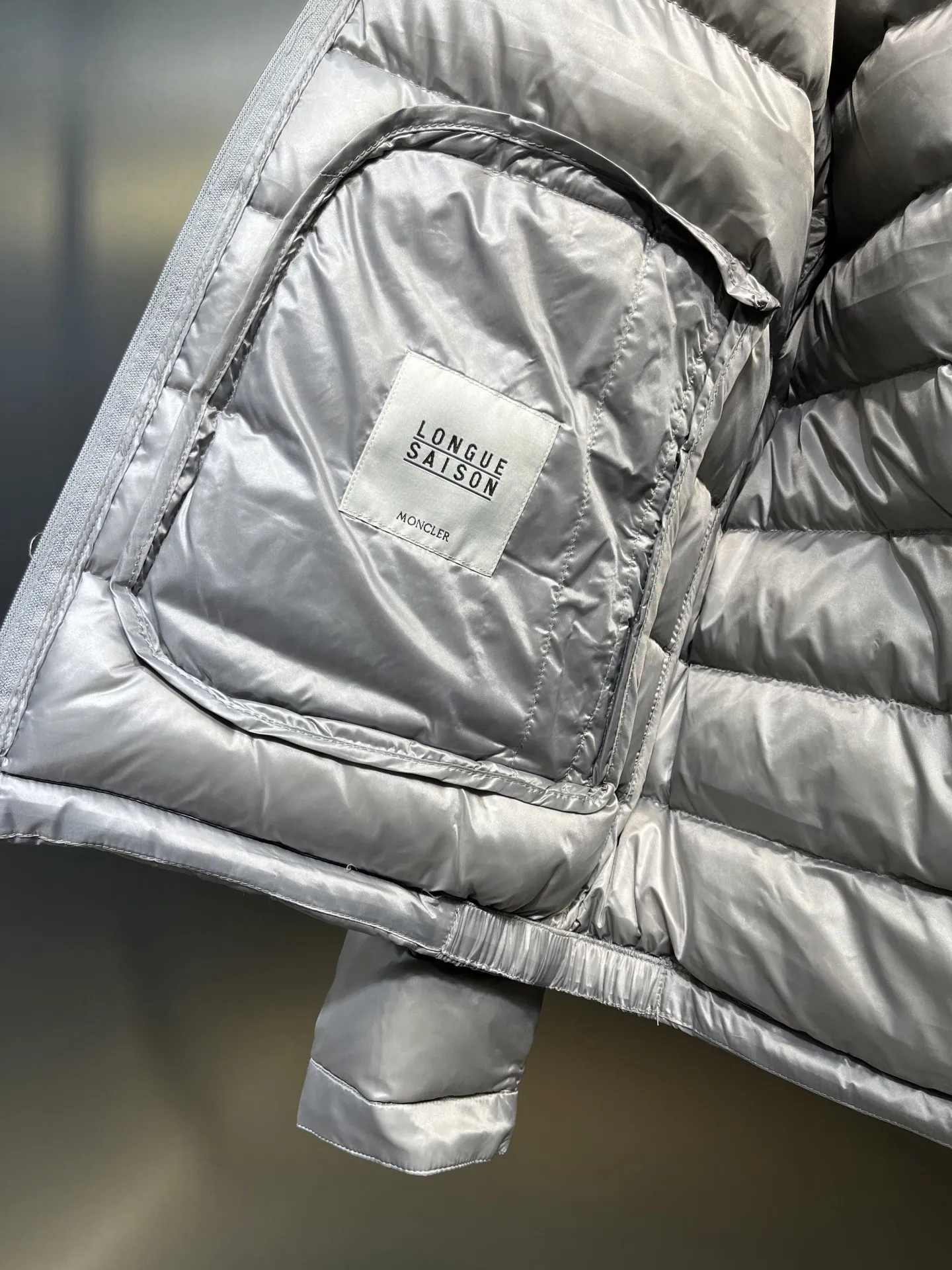 モンクレール ロングセゾン ダウンジャケット シルバー スタンドカラー