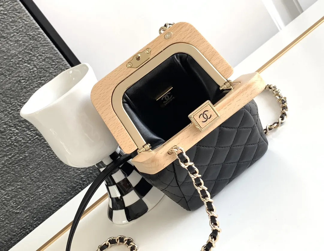 OHANELのブラックチェーンバッグは、四季を通じて使える可愛らしいデザインです。サイズは13cmで、コイン程度の小さな容量ですが、美しさとエレガンスを詰め込んでいます。高級感のあるレザーとウッドの組み合わせが特徴で、ゴールドとブラックのチェーンストラップがアクセントになっています。シンプルでありながらも、ソフトで魅力的なデザインが魅力です。このような上質なアイテムをお探しの方には、N級品のバッグもおすすめです。