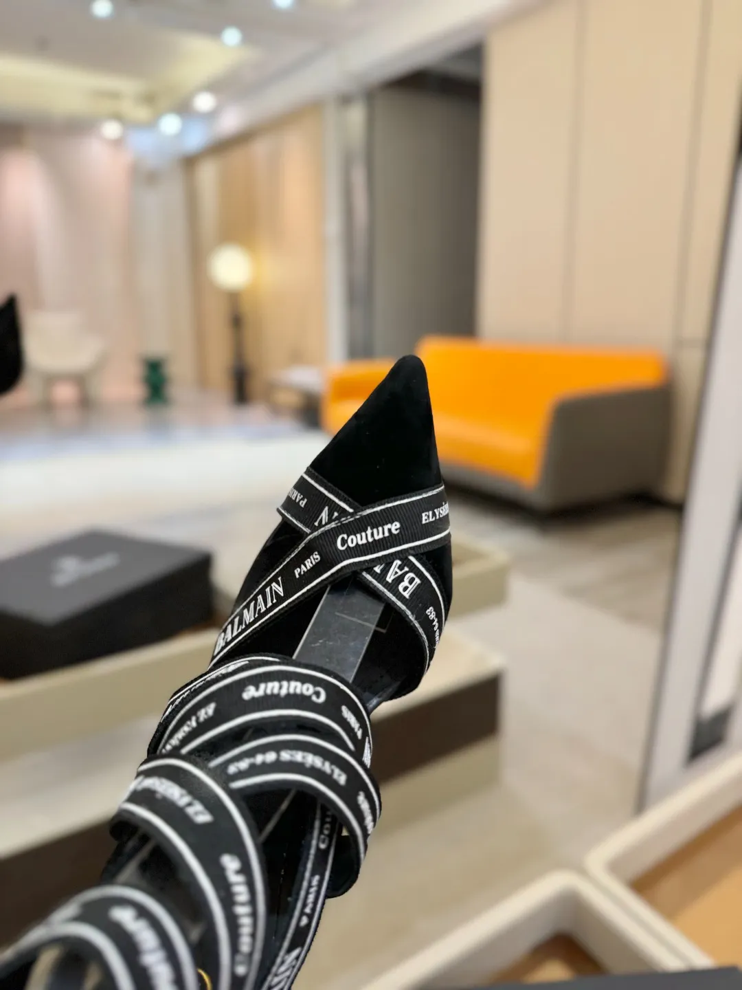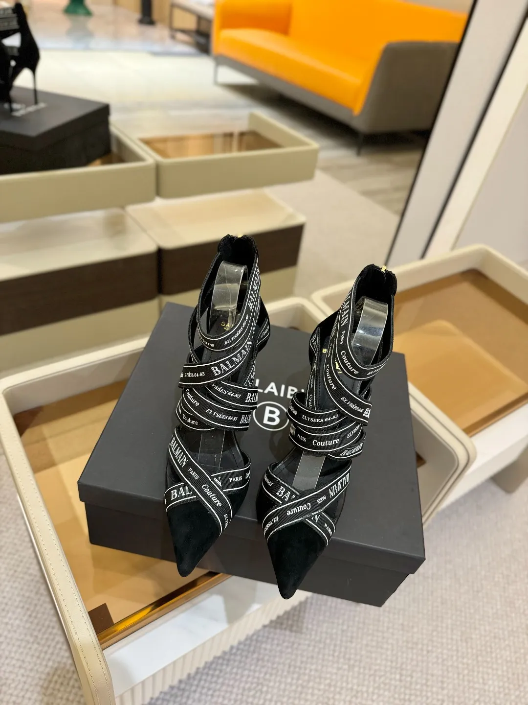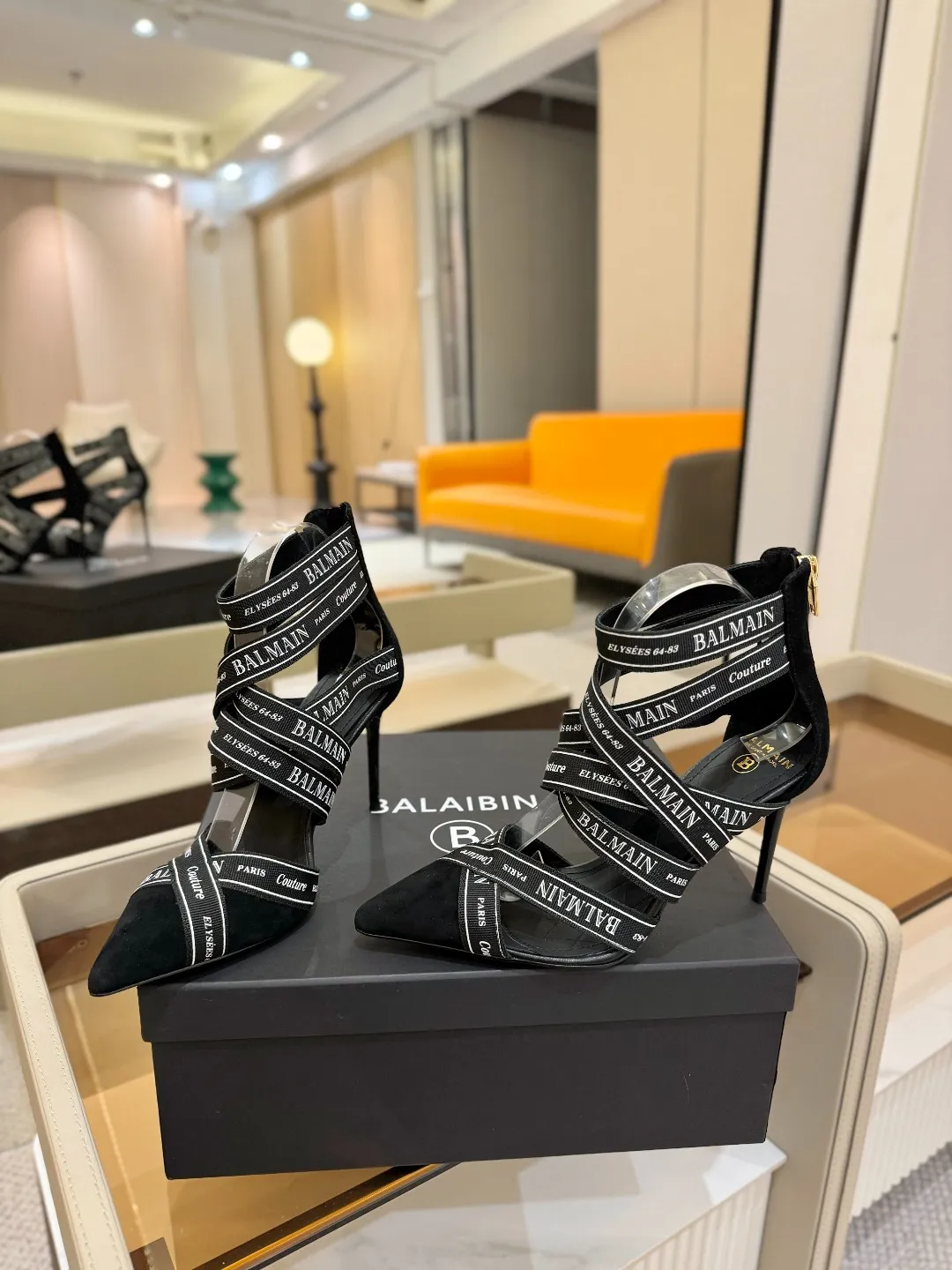 Balmainバレマン2025春夏ニューアイテム高品質なモデル四角い頭ハイヒールサンダル