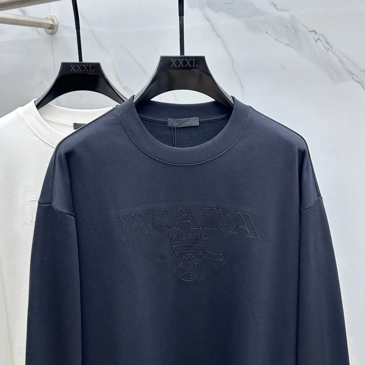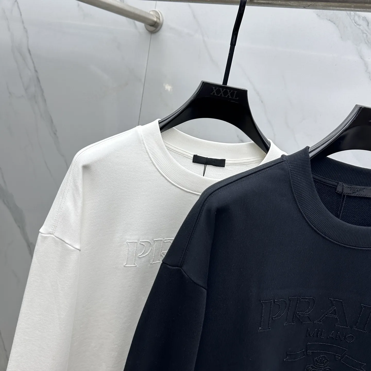 Prada 2025秋冬の新商品白ロゴ刺繍スウェット