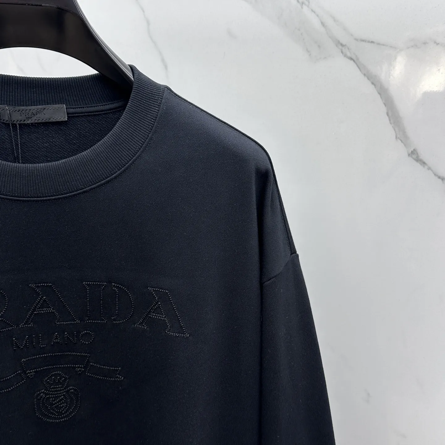 Prada 2025秋冬新品黒ロゴ クルーネックスウェットシャツ