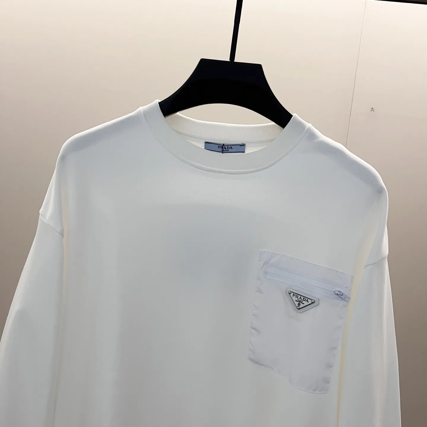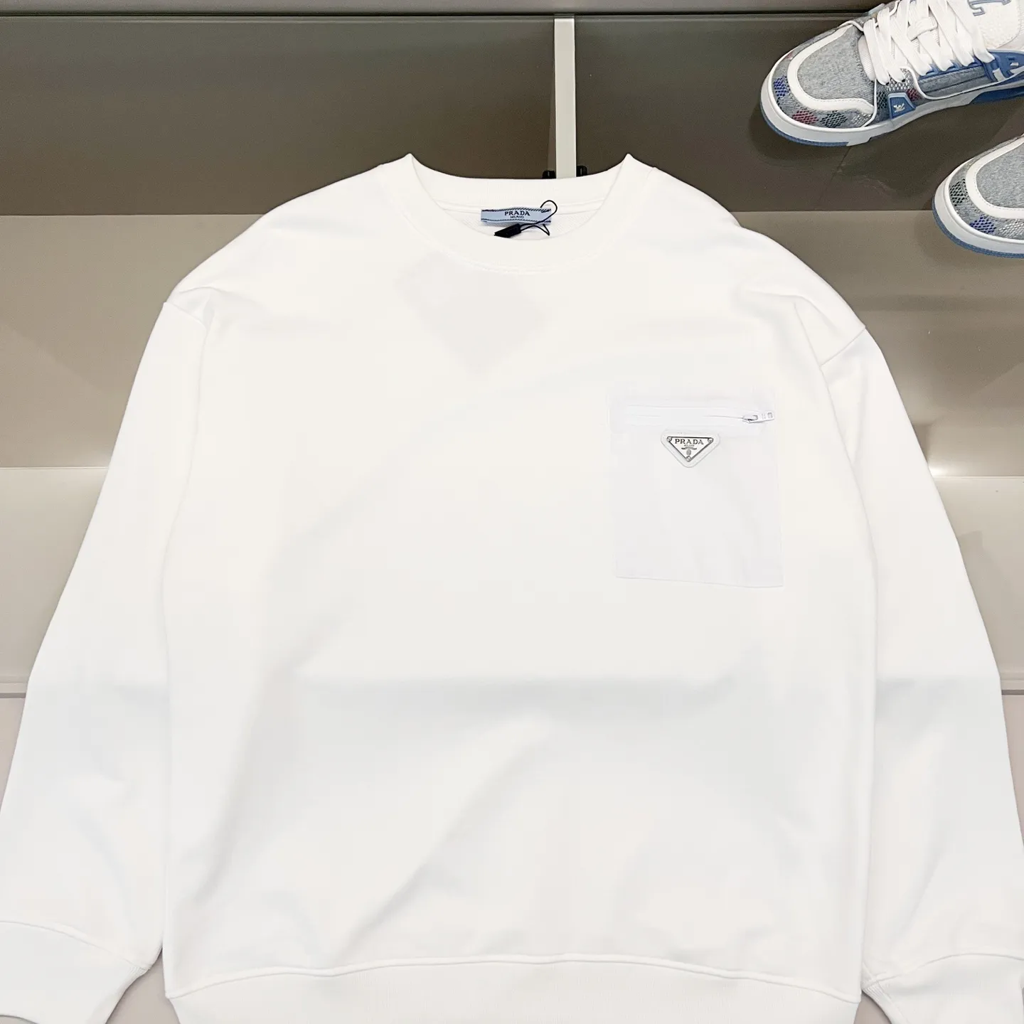 プラダ 新作丸首スウェット 白 ロゴ入り