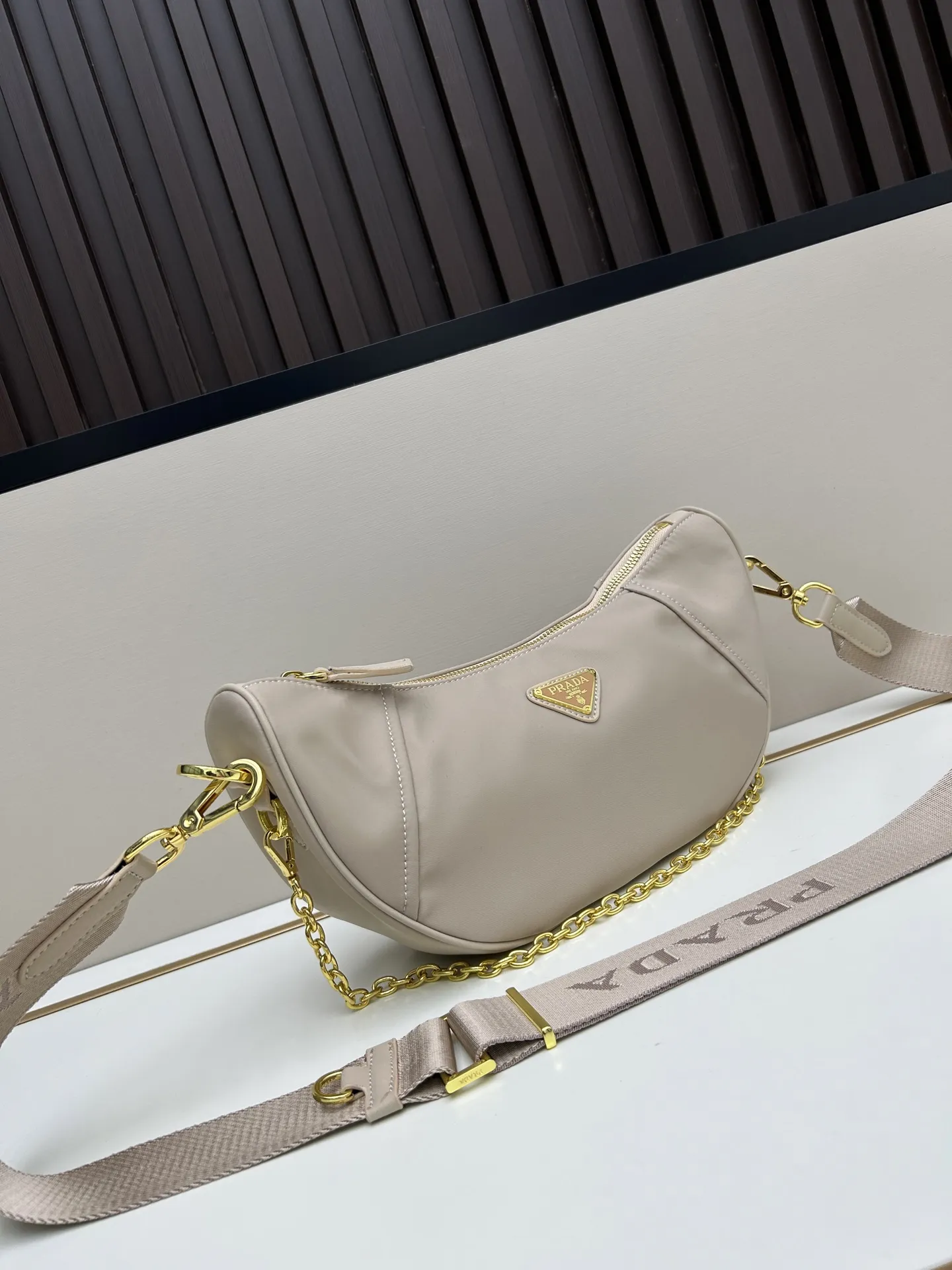 PRADA Re-Nylon月牙包ベージュ2526モデル